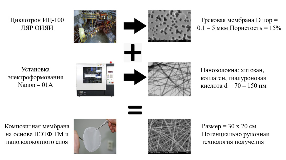 Производство материалов выполнялось на базе Центра прикладной физики ЛЯР ОИЯИ, а медико-биологические исследования осуществлялись в Национальном медицинском исследовательском центре реабилитации и курортологии Минздрава России (ФГБУ «НМИЦ РК» Минздрава России). В результате проведенных исследований удалось получить новый пористый композитный материал, который уменьшает время регенерации кожных покровов, исключает инфицирование раны и ингибирует иммуновоспалительные клеточные реакции.