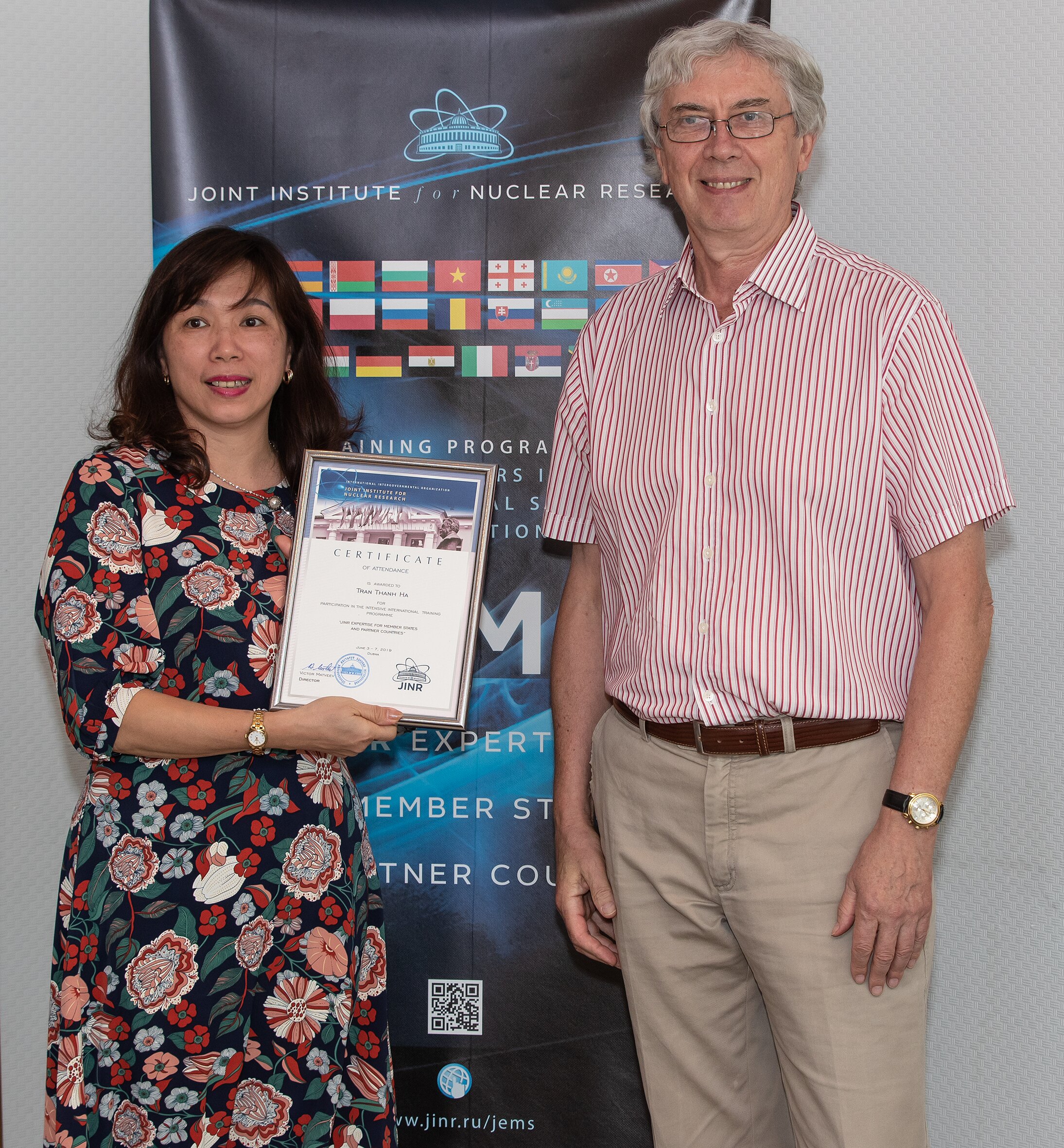 Впервые на программе JEMS был представлен Казахстан, хотя сама участница профессор Бекзат Прмантаева, начальник Отдела организации учебного процесса и мониторинга, Евразийский университет имени Л. Н. Гумилева, хорошо знакома с ОИЯИ и в свое время проходила преддипломную практику в ЛЯП: «Благодаря ОИЯИ, начиная с 2009 года мы в Евразийском университете успешно реализуем программу подготовки кадров в области ядерной физики. В рамках этой программы студенты нашего университета имеют возможность в дополнение к национальному диплому получить диплом университета «Дубна». За время участия в JEMS я успела пообщаться с молодыми казахскими учеными и студентами. Я увидела, насколько они довольны условиями работы и жизни, созданными для них в Дубне, и буду рада проинформировать об этом руководство нашего университета. Благодаря этой стажировке я смогла лично ознакомиться с инфраструктурой ОИЯИ, на которой наши студенты получают свою научную подготовку».