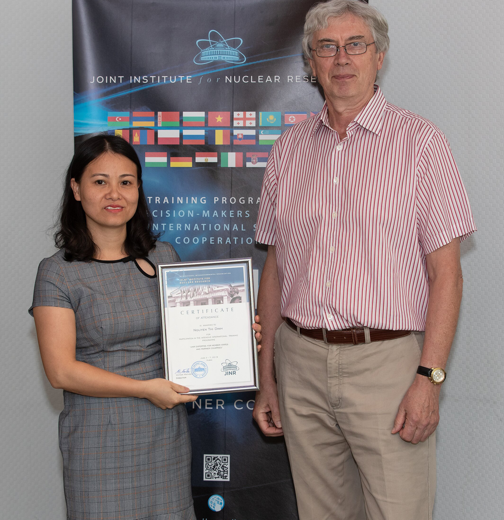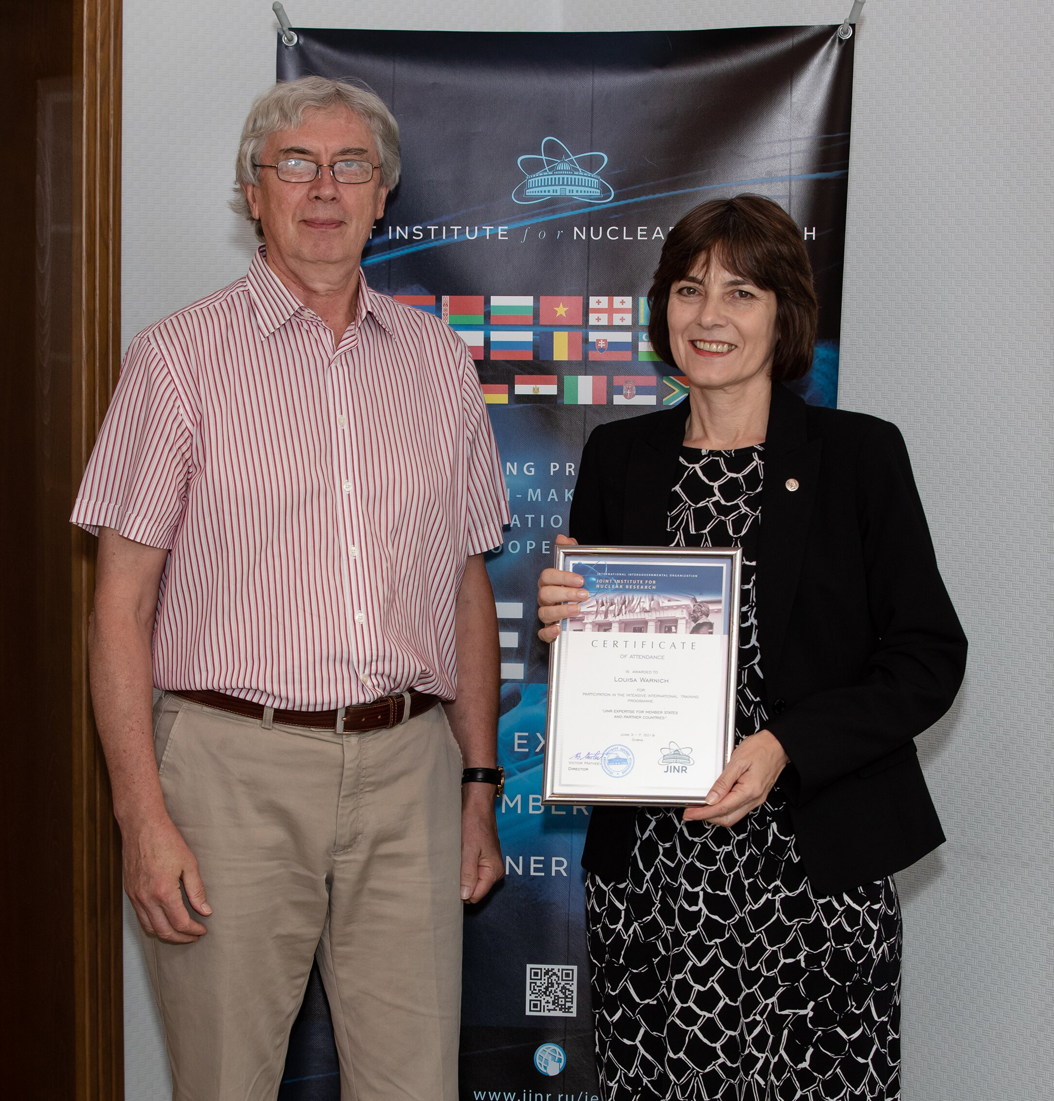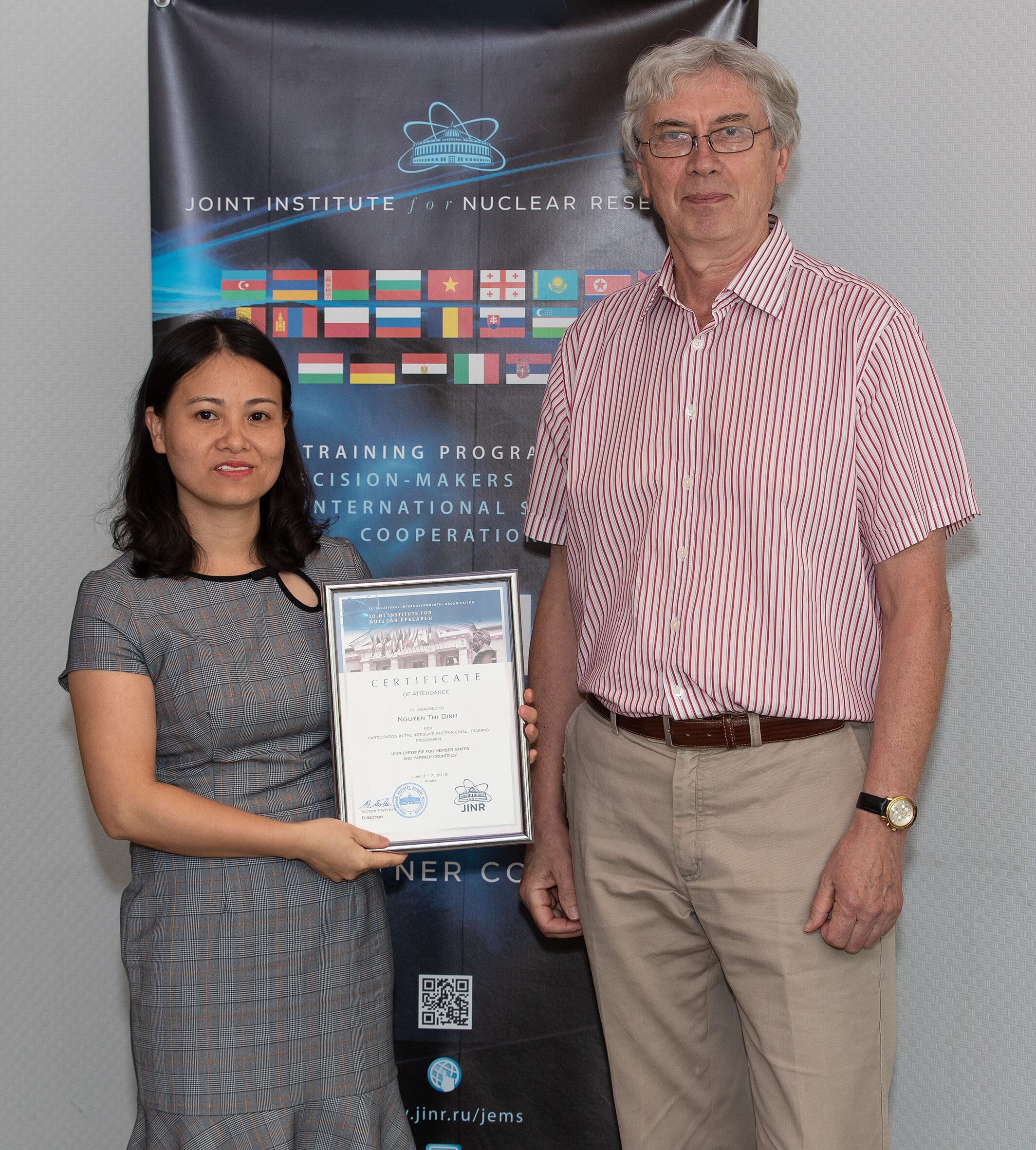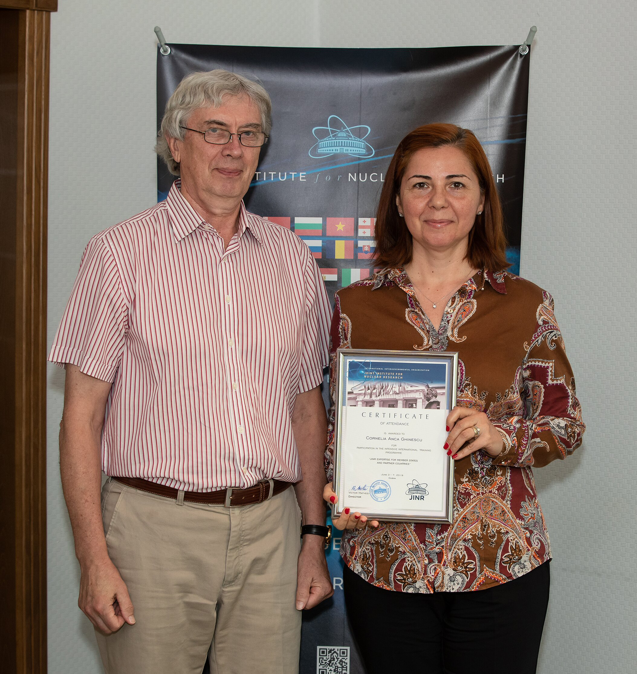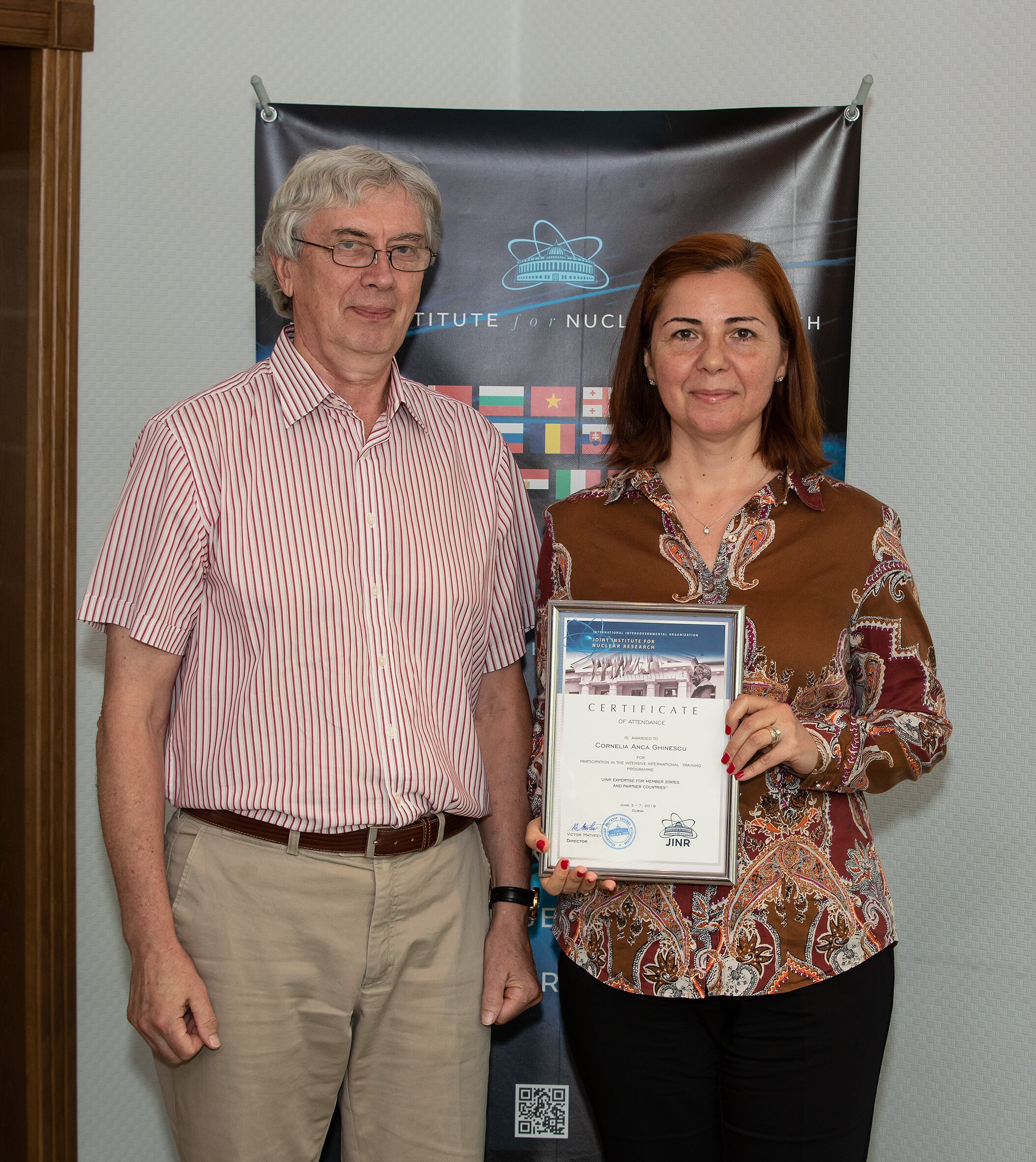 Уже во второй раз в стажировке JEMS принимали участие представители Румынии. Корнелиа Анка Гинеску, старший советник Министерства исследований и инноваций Румынии, член комитета по сотрудничеству Румыния-ОИЯИ: «Я очень рада возможности побывать в ОИЯИ, в одной из ведущих международных научных организаций. Я многое увидела и многое узнала, подача сложного материала была такова, что его можно было понять, даже не будучи физиком. Меня впечатлила широта научных исследований ОИЯИ, а также динамичность международного сотрудничества Института. Стажировка позволила познакомиться не только с блестящими учеными ОИЯИ, но также установить контакты с участниками стажировки из разных стран. Благодаря этому мы создали что-то вроде клуба послов в ОИЯИ».