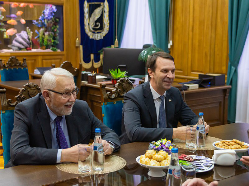 On 14 November, ahead of the session of the Committee of Plenipotentiaries, Director of the Joint Institute Grigory Trubnikov met with Rector of Belarusian State University (BSU) Andrei Karol at the BSU. The parties discussed the prospects of joint scientific projects and a double degree programme. In order to implement the prospects for further cooperation and specificy joint work plans, working meetings between JINR representatives and the deans of the BSU faculties are set to take place in the near future.