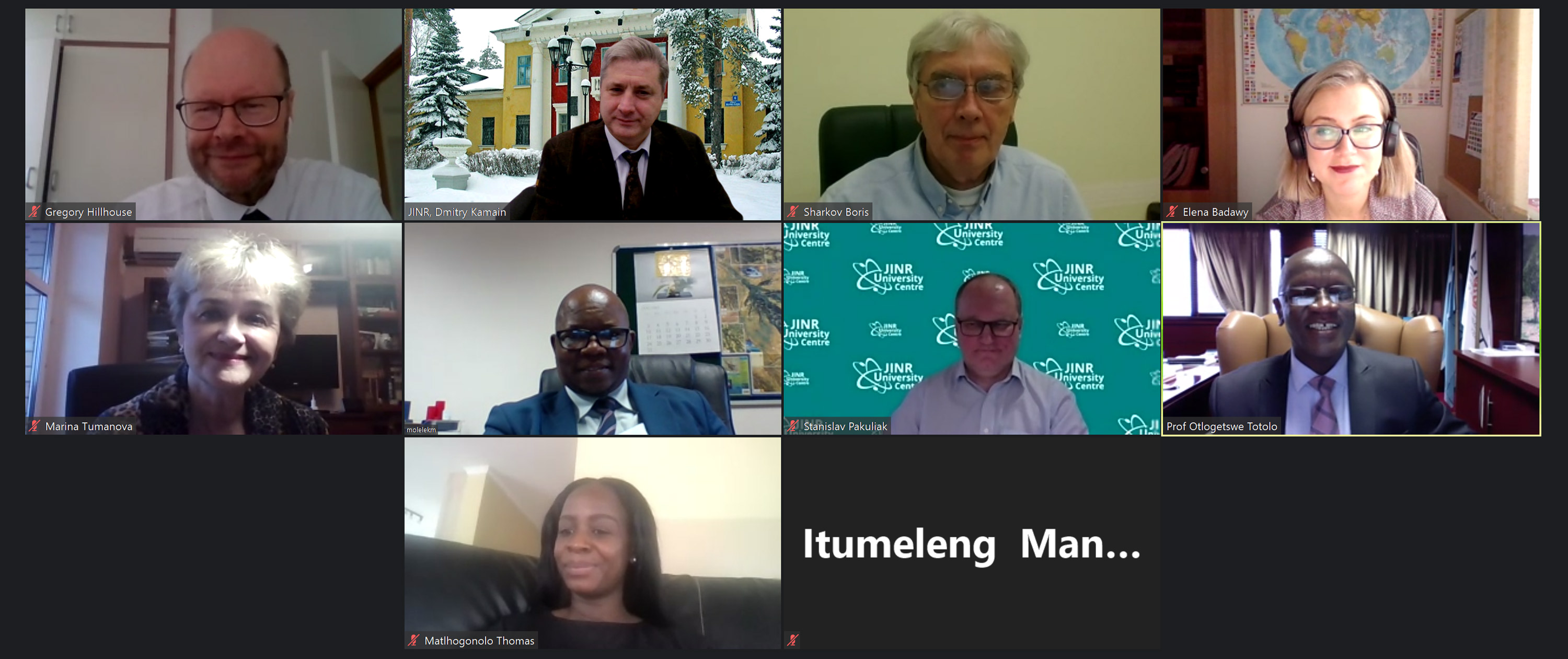 At the end of the meeting, the parties agreed on the participation of students of the Botswana International University of Science and Technology in the online project of the JINR University Centre INTEREST, as well as on the extension of thematic fields for selection of young Botswana students for participation in scientific work of research groups of the JINR Laboratories as soon as it becomes possible in terms of the epidemiological situation. The parties recognized the meeting as mutually useful and agreed on further cooperation enhancement.