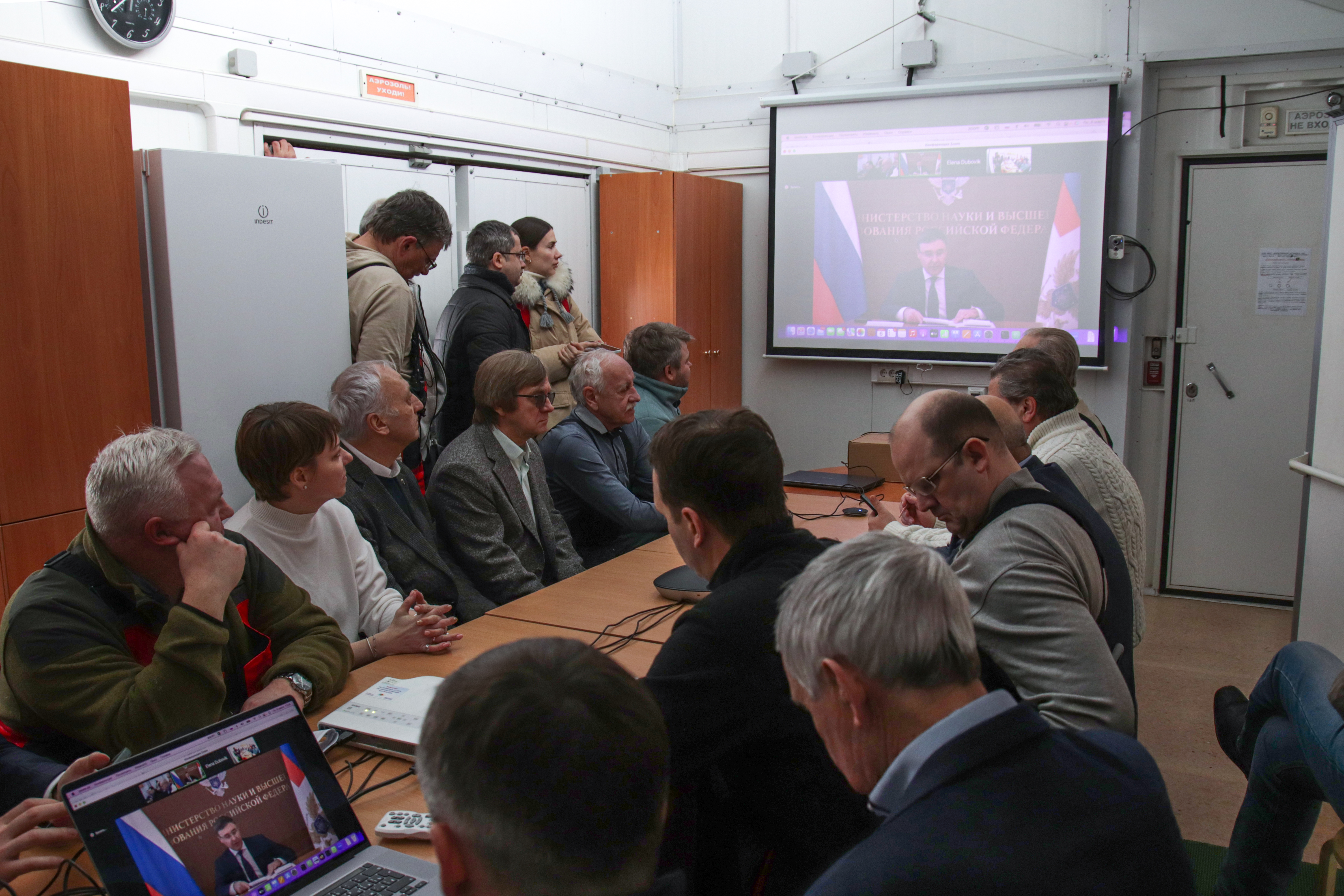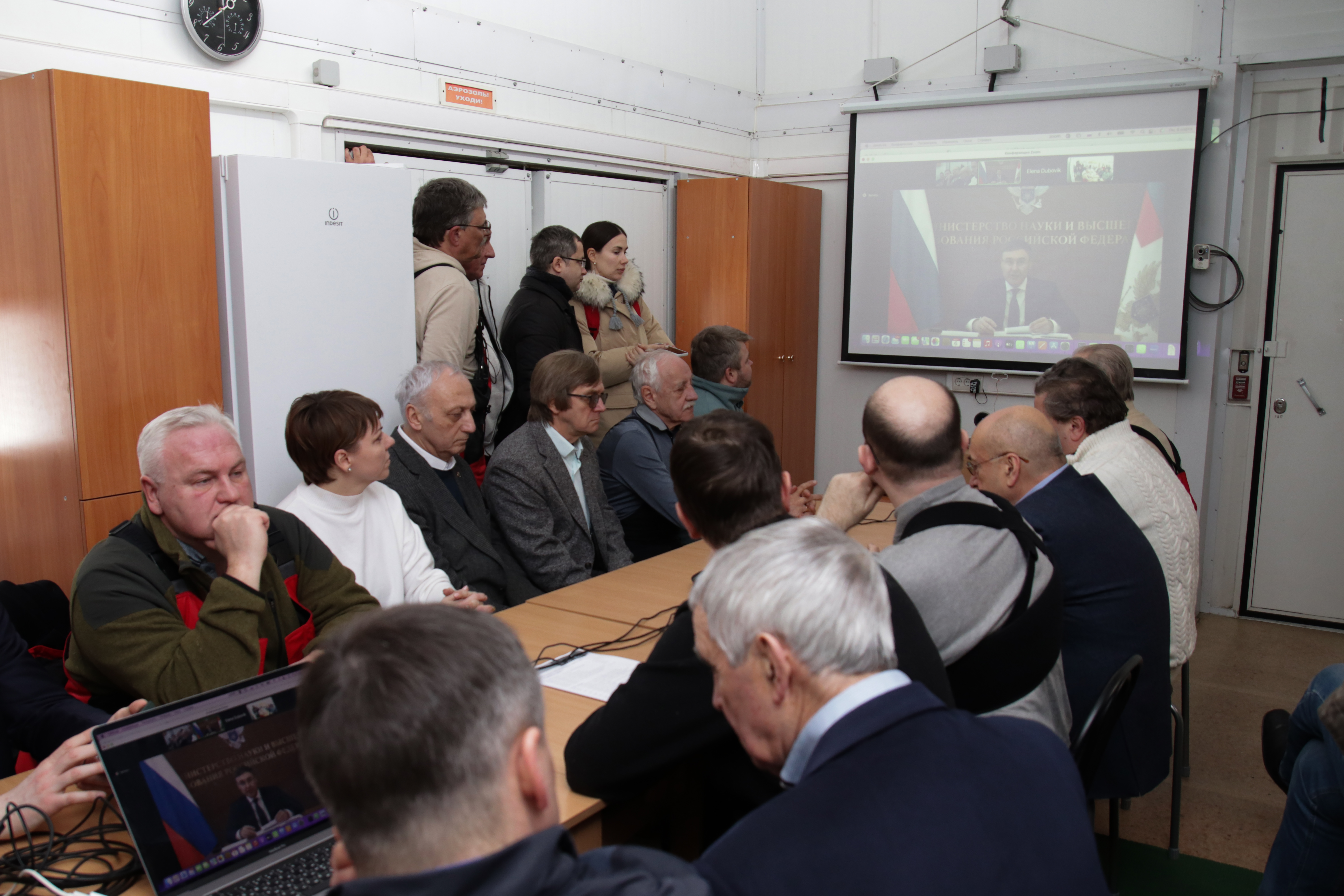 On 6 March, Minister of Science and Higher Education of Russia Valery Falkov met with representatives of eight leading scientific institutes and universities of Russia, as well as the Joint Institute for Nuclear Research. The meeting took place at the Shore Centre of the neutrino telescope on Lake Baikal. The participants discussed the establishment of a nationwide development programme in neutrino physics and astrophysics and the results and prospects for the development of the Baikal deep underwater neutrino telescope. In addition, they considered the intermediate results of the current expedition, during which the collaboration plans to install two new clusters of optical modules.