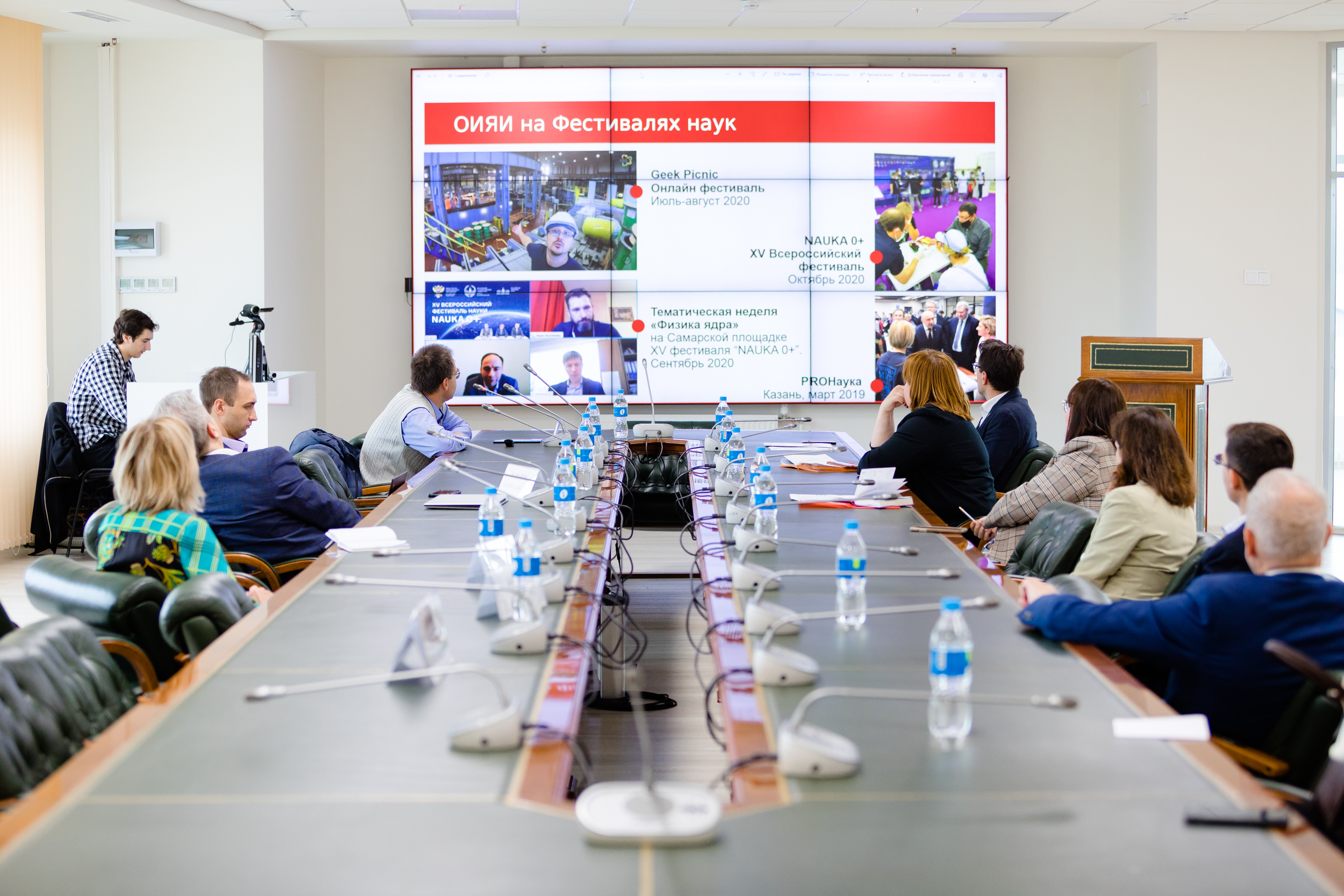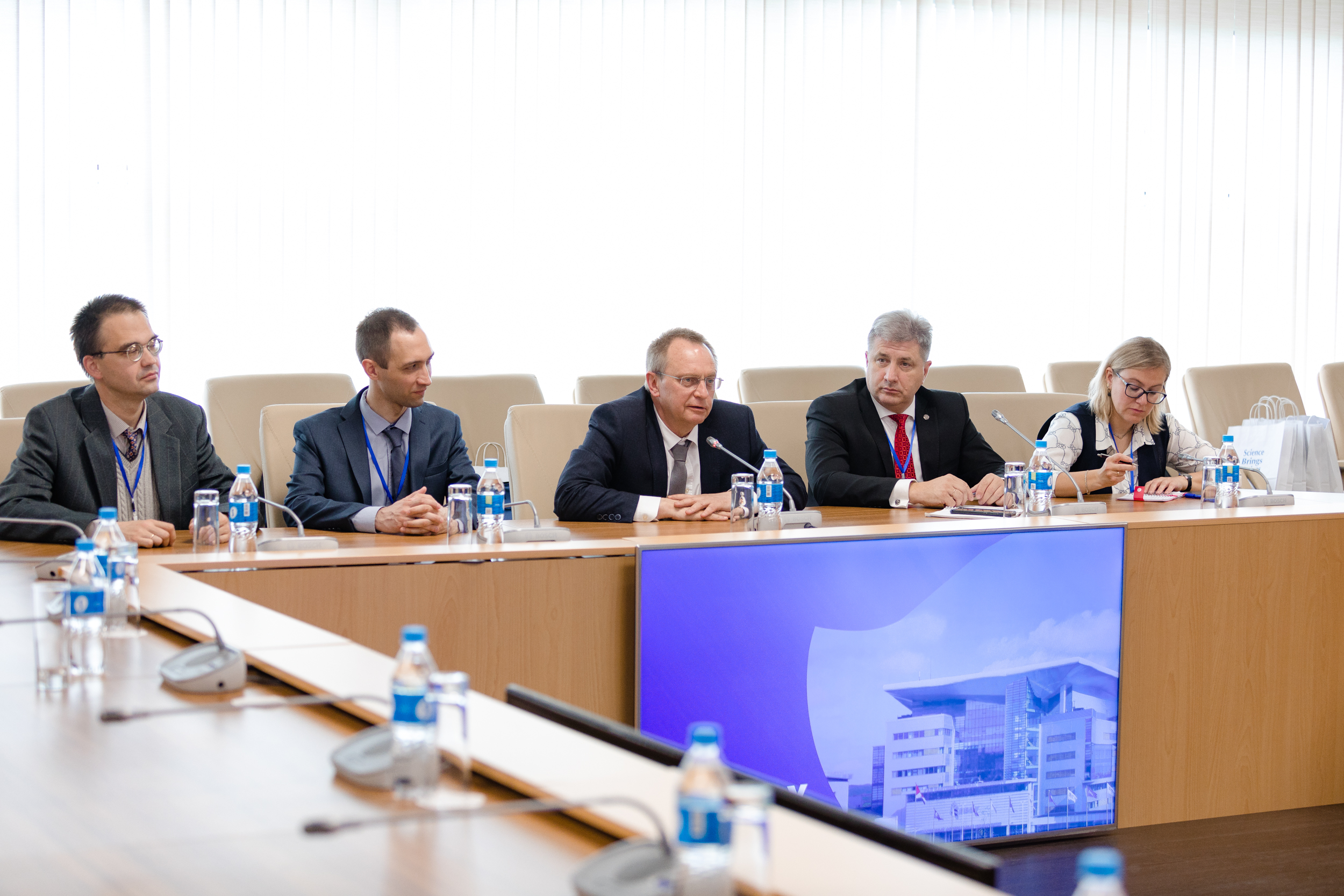Later that day, a round table was held at the Presidium of the Far Eastern Branch of RAS , where possibilities of bilateral cooperation with a focus on interdisciplinary areas and possibilities of the JINR Information Centre at FEFU were discussed. As a result of the round table, a number of meetings were held between representatives of the JINR delegation with colleagues from the Institute of History, Archaeology and Ethnology of the Peoples of the Far East FEB RAS, the Far East Geological Institute, the Institute of Applied Mathematics, and the Institute of Automation and Control Processes with Computation Center, representatives of the Council of Young Scientists of the FEB RAS, as well as the management of the University’s Education and Science museum.