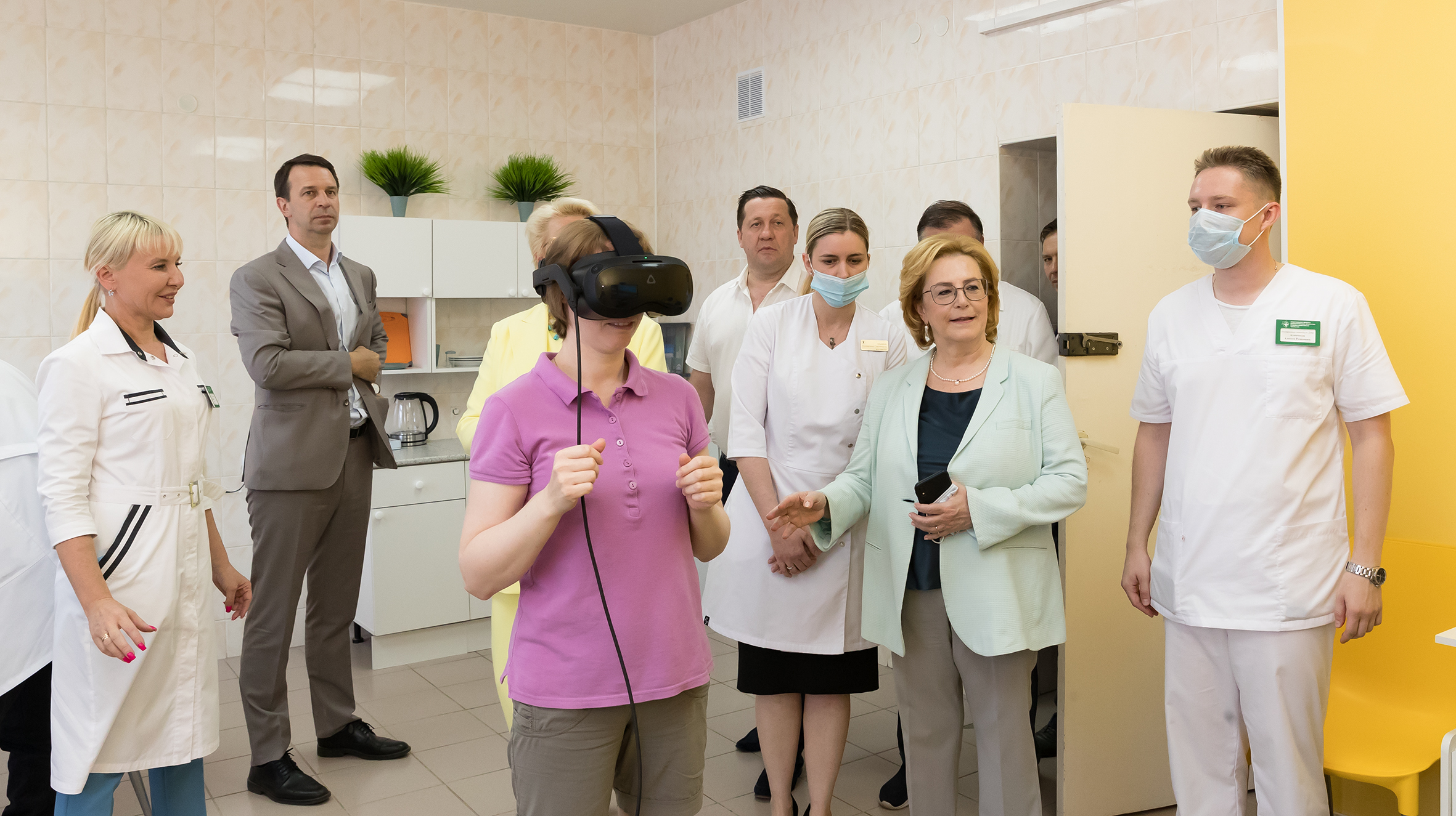 During the visit, an innovative occupational therapy room was opened in the Medical Unit. There patients will be able to undergo neuro- and post-COVID-19 rehabilitation using VR technology. The office is equipped with a hardware and software complex of medical devices developed by the Federal Scientific and Clinical Centre of Medical Rehabilitation and Balneology of FMBA of Russia.