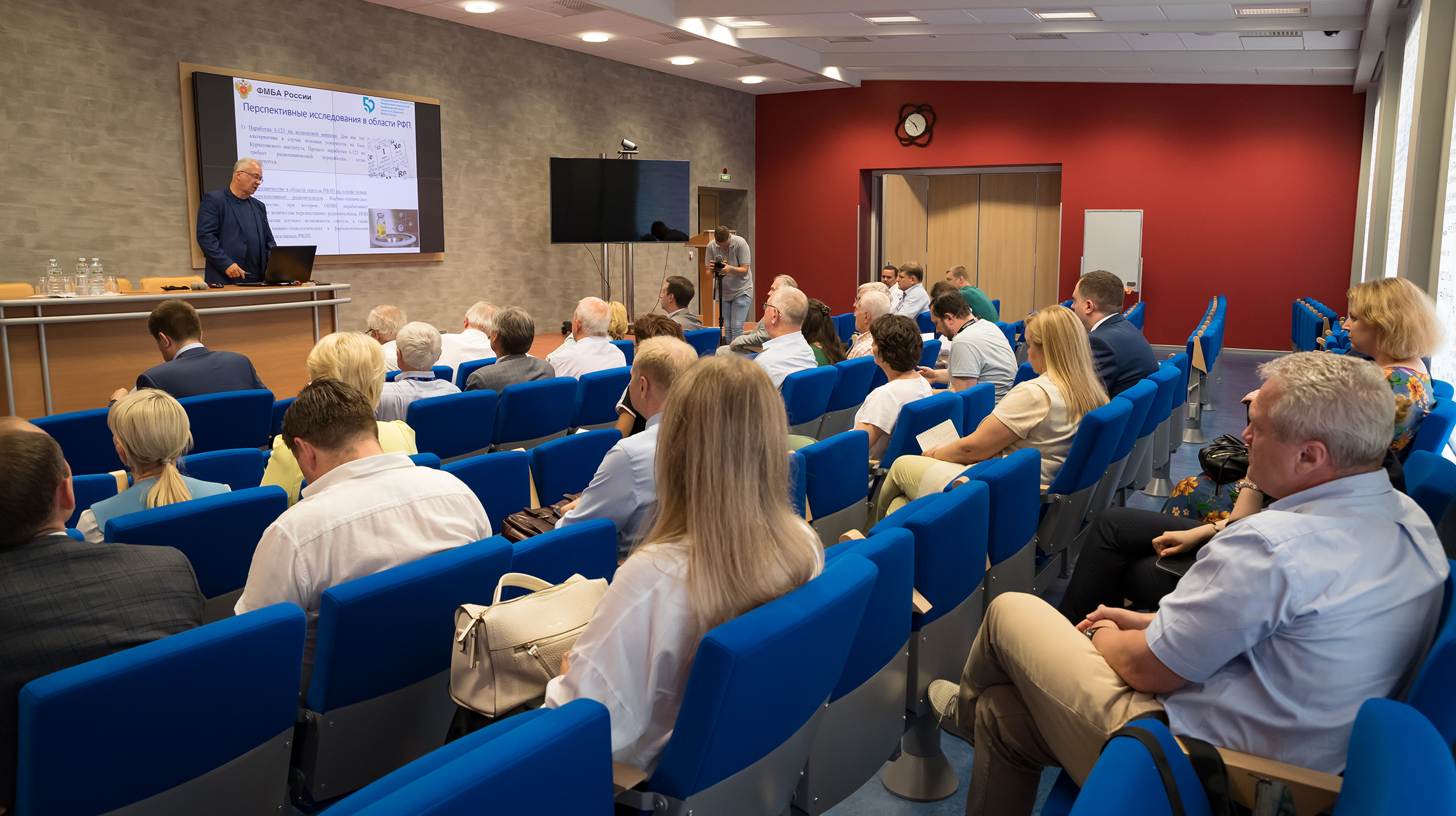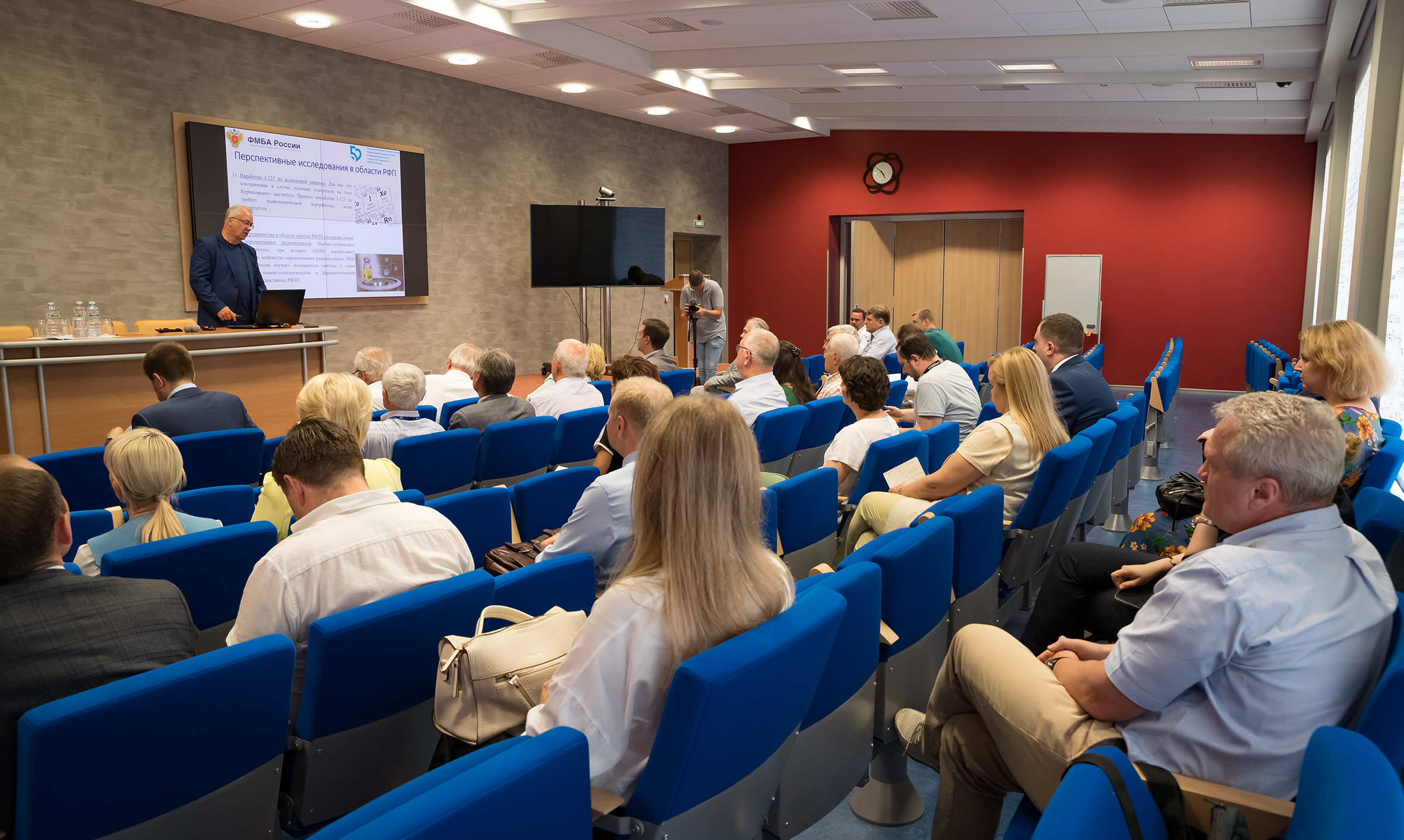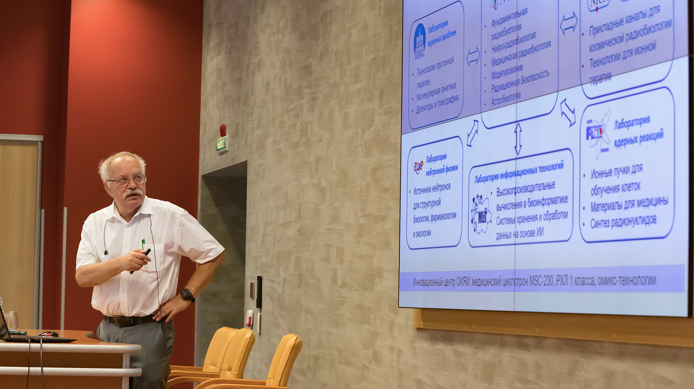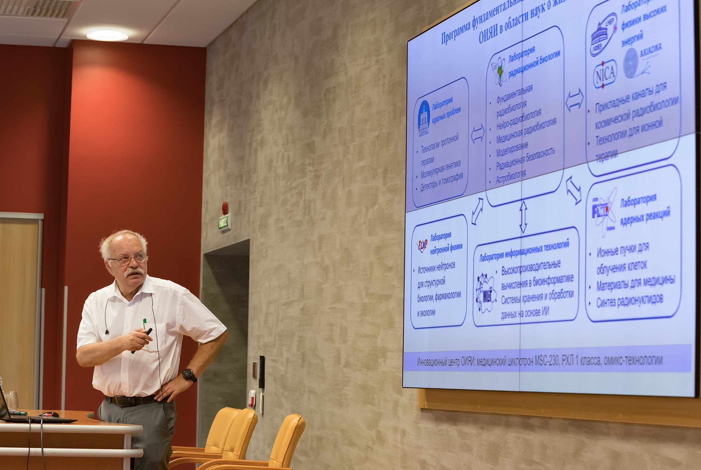 First Deputy General Director of Burnasyan Federal Medical Biophysical Centre of FMBA, Chief Freelance Specialist of FMBA of Russia in Occupational Pathology, Doctor of Medicine Andrey Bushmanov spoke about the long fruitful cooperation between FMBA and JINR. In particular, the speaker highlighted that JINR was a valuable partner for FMBA because it had the opportunity to irradiate cancer patients with protons, which was not available in many other scientific centres.