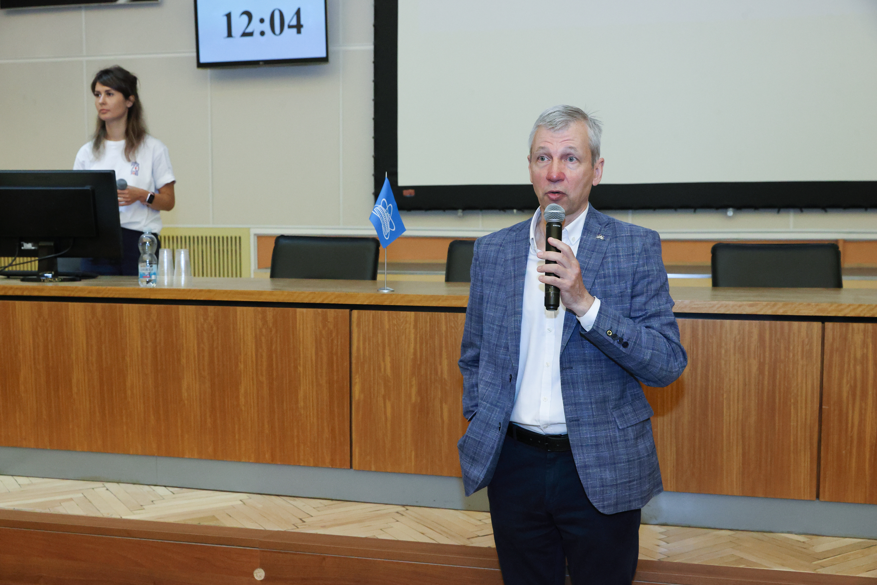 The meeting included sections on the listed topics; another section was devoted to the social and humanitarian aspects of scientific discource. Acting Director of the Laboratory of High Energy Physics at JINR Andrey Butenko opened the plenary meeting and commented on the status of the NICA Megascience Project. “We set the bar high, even higher than anyone before. We compete on equal terms with the leading centres of the world in our field. It is obligatory for us to work in the same direction attracting new researchers: mathematicians, physicists. We will strengthen ties with your institute. Now the collider is being built, in a year the first data will appear. After that, the project will gradually snowball, so your participation in the project is mutually beneficial,” Andrey Butenko underlined.