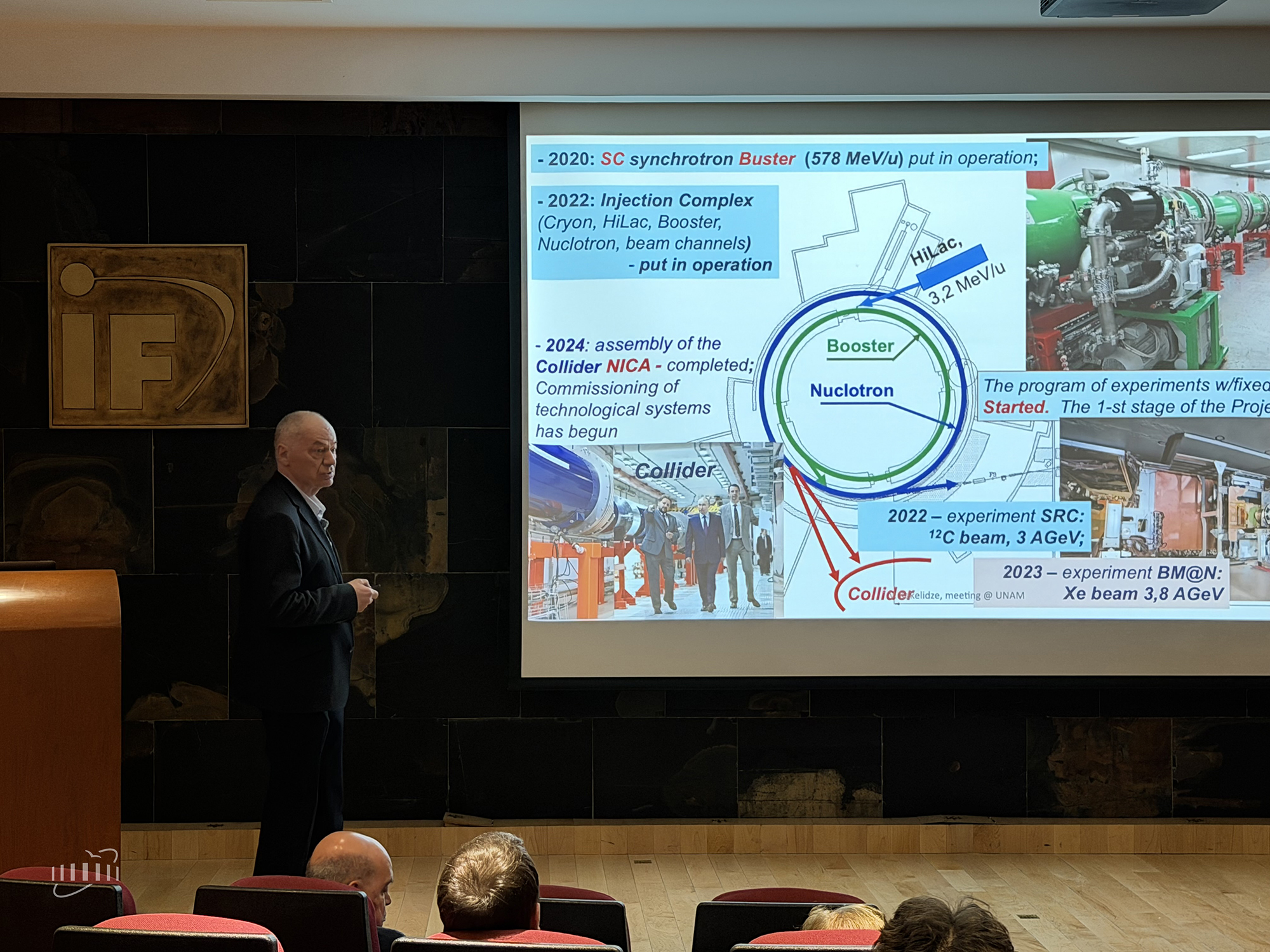 Director Grigory Trubnikov presented an overview of the Joint Institute’s key studies. NICA Project Leader, JINR Vice-Director Vladimir Kekelidze told the audience about the main objectives of the project, explained the current stage of its implementation, and gave a general description of the planned experiments. He highlighted the participation of Mexican researchers in the collaborations at NICA.