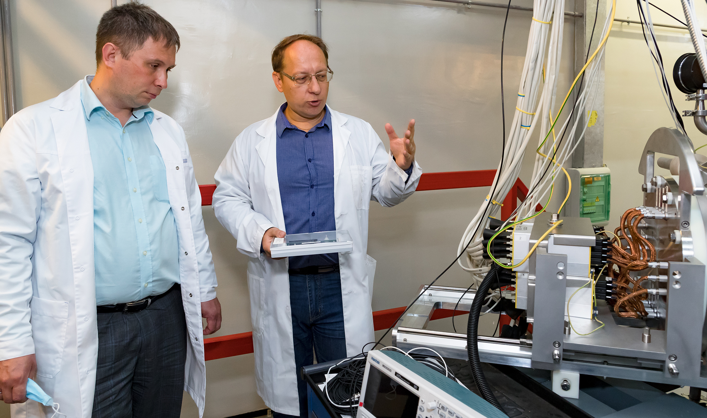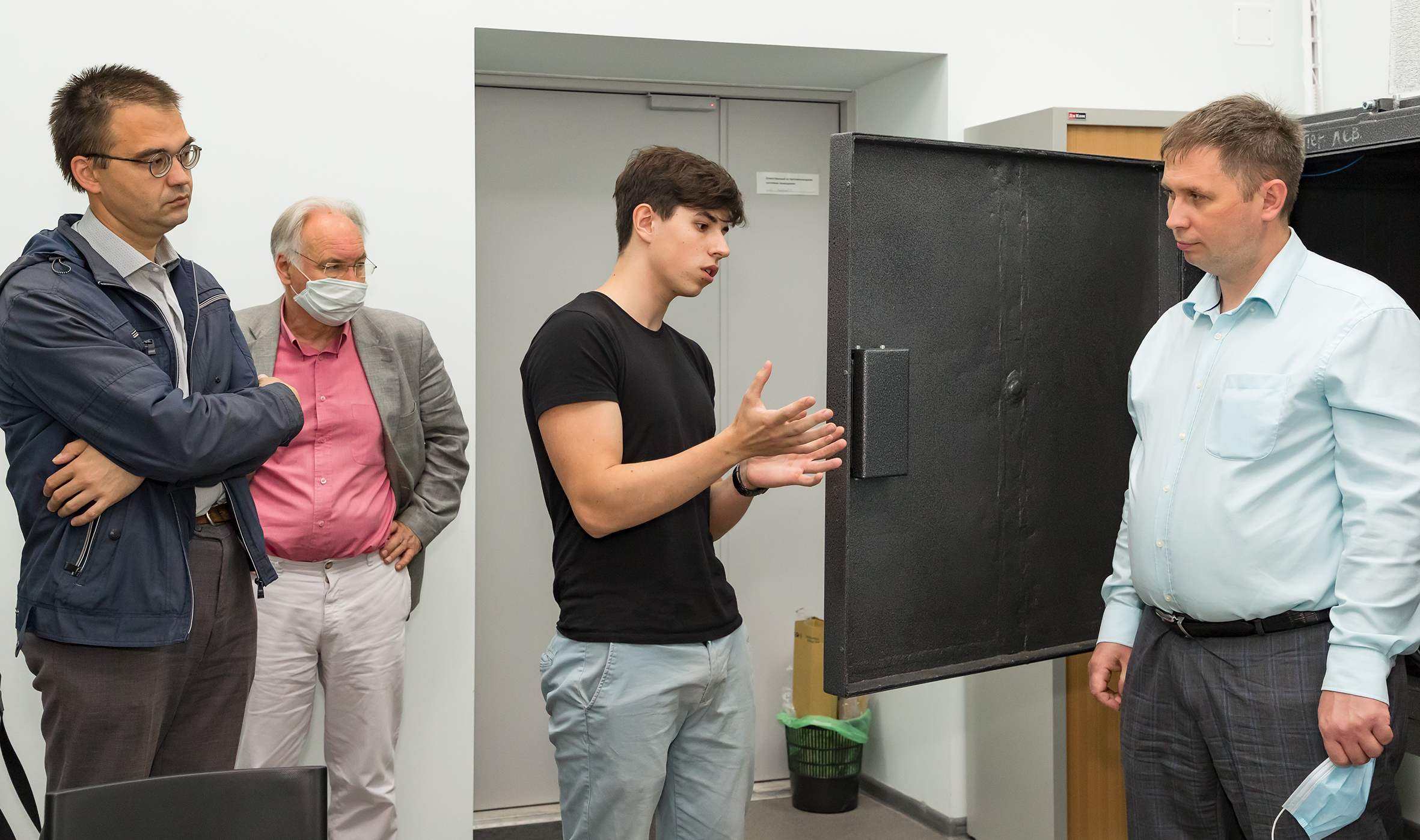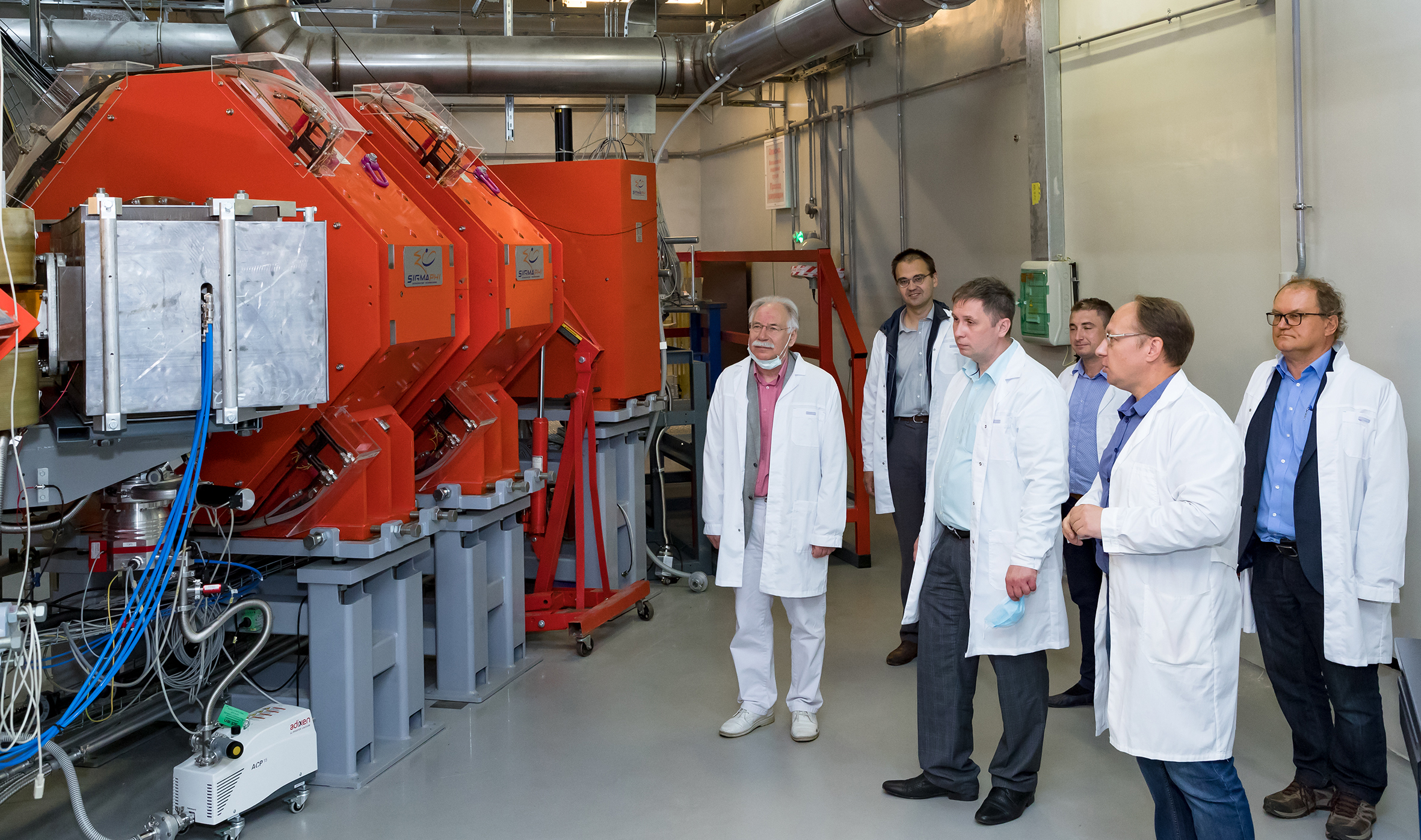 During the visit, accompanied by Head of the MIPT Department of Fundamental and Applied Problems of Microworld, RAS Corresponding Member D. I. Kazakov, Deputy Heads of the Department S. Z. Pakuliak and G. A. Shelkov, the guest was acquainted with the objects of the JINR scientific infrastructure, including the NICA accelerator complex under construction and the site for the production of superconducting magnets in VBLHEP, the Superheavy Element Factory and the FLNR basic facility, namely the DC-280 cyclotron, as well as the site for assembling detectors of the deep underwater neutrino telescope Baikal-GVD and the laboratory of X-ray microtomography in DLNP.