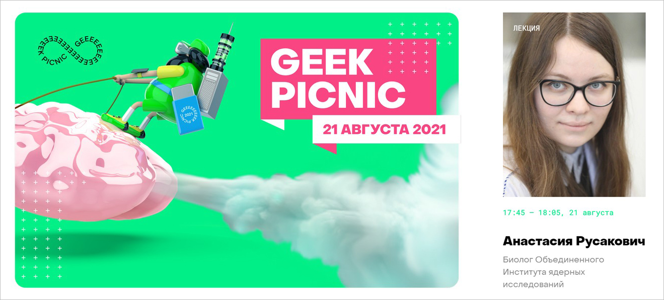 The lecture “About allergy, longevity and SNP” will be given by Anastasia Rusakovich (DLNP Sector of Molecular Genetics of the Cell) at GEEK PICNIC 2021, an international festival of science and technology. Anastasia will speak about two systems elaborated by JINR geneticists for determining predisposition to allergic diseases and human longevity.