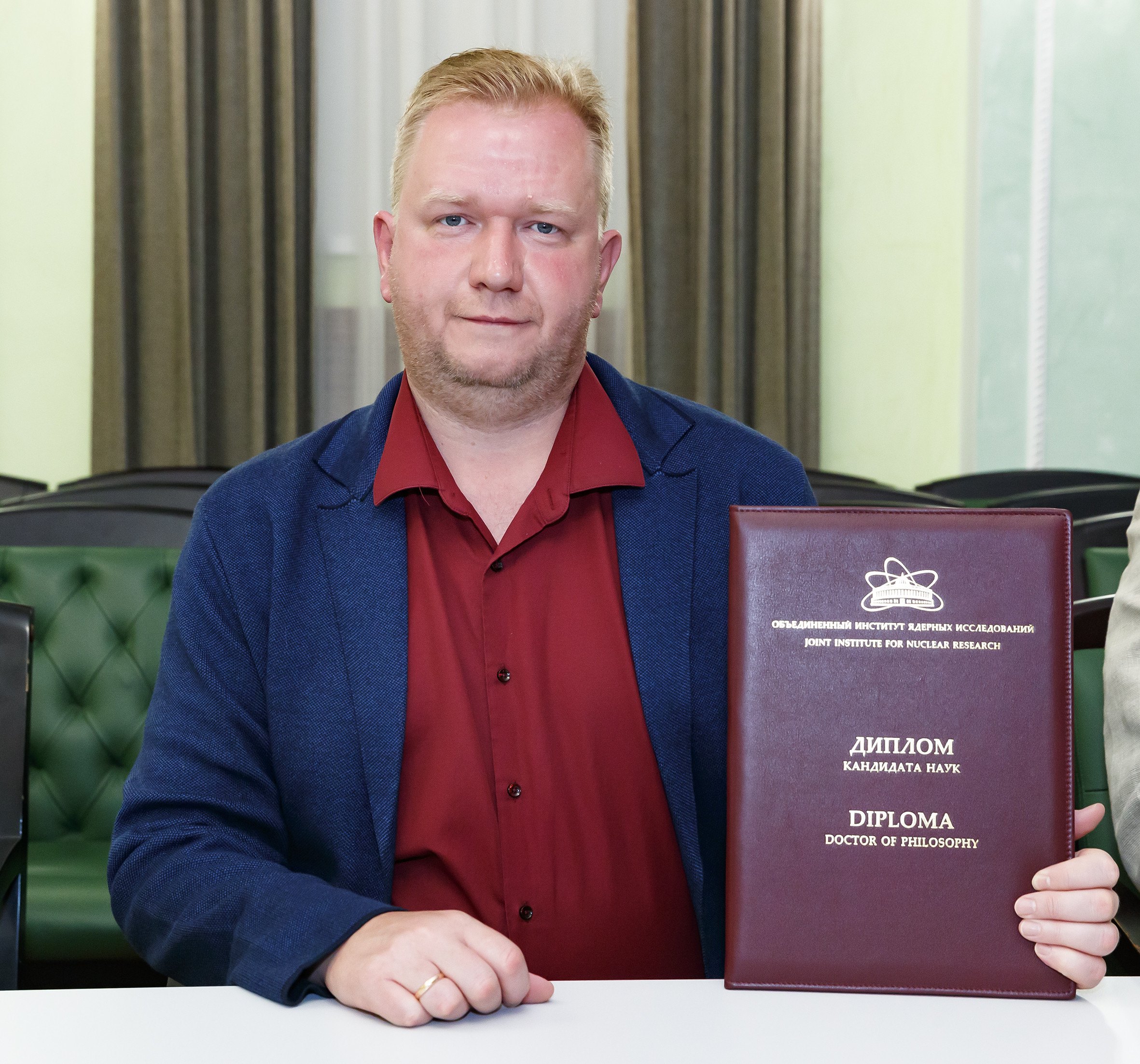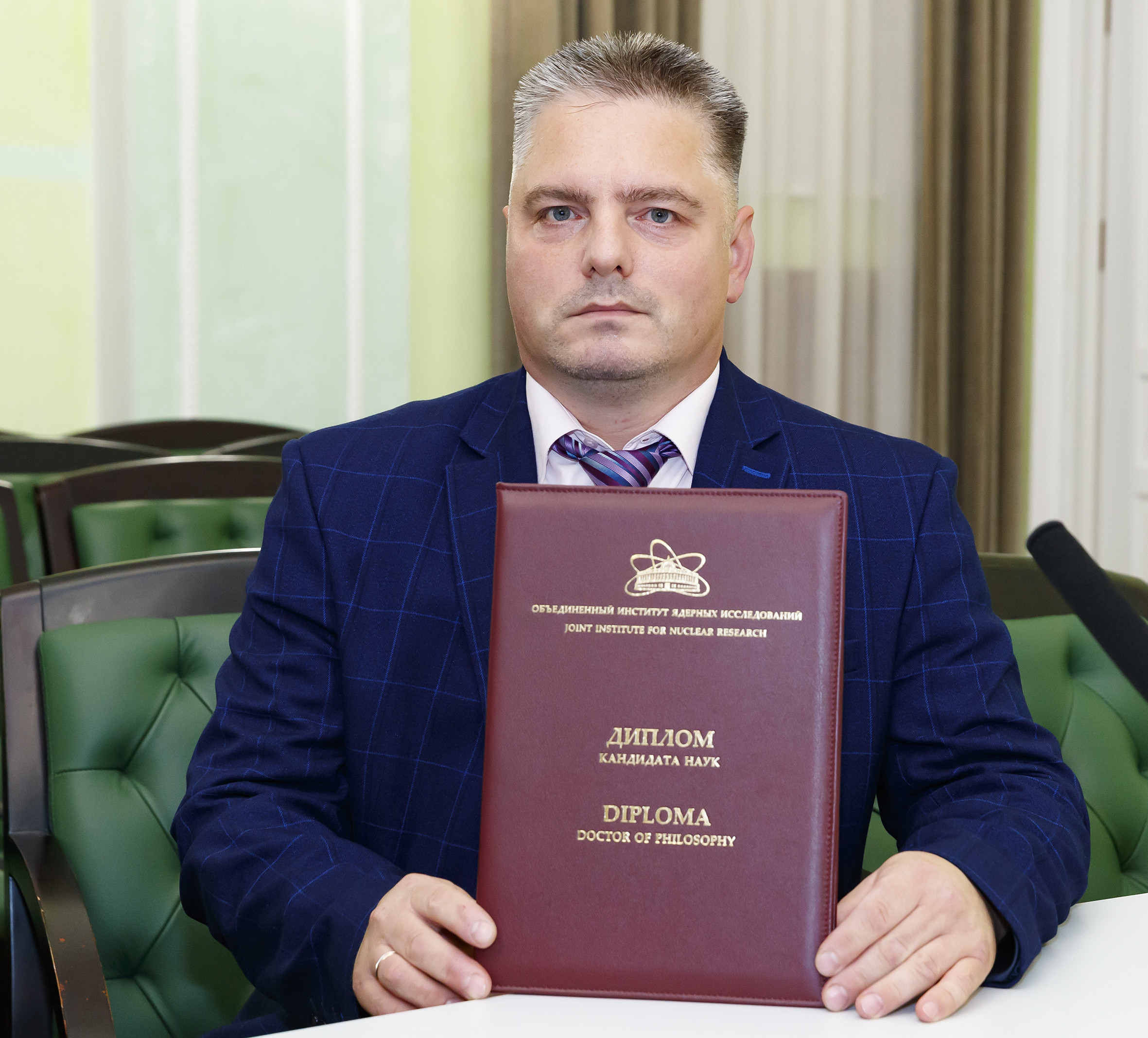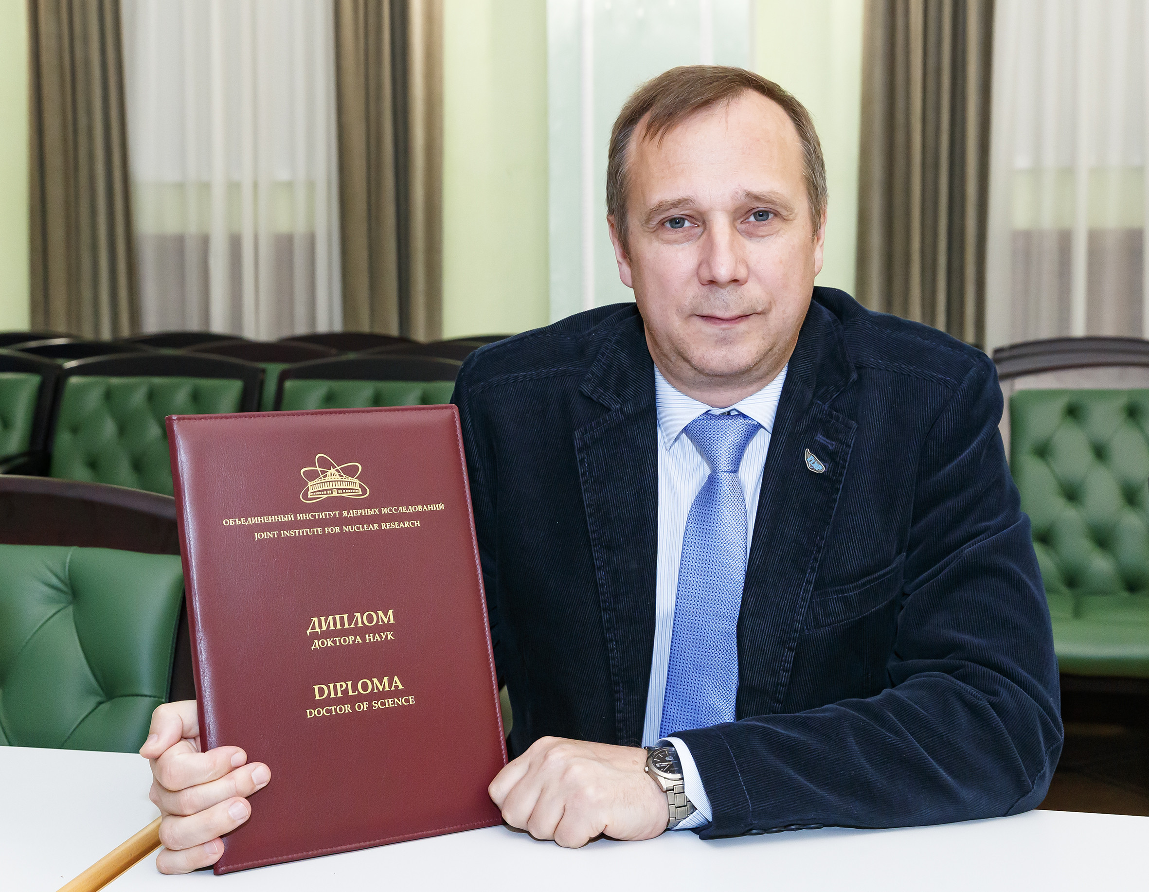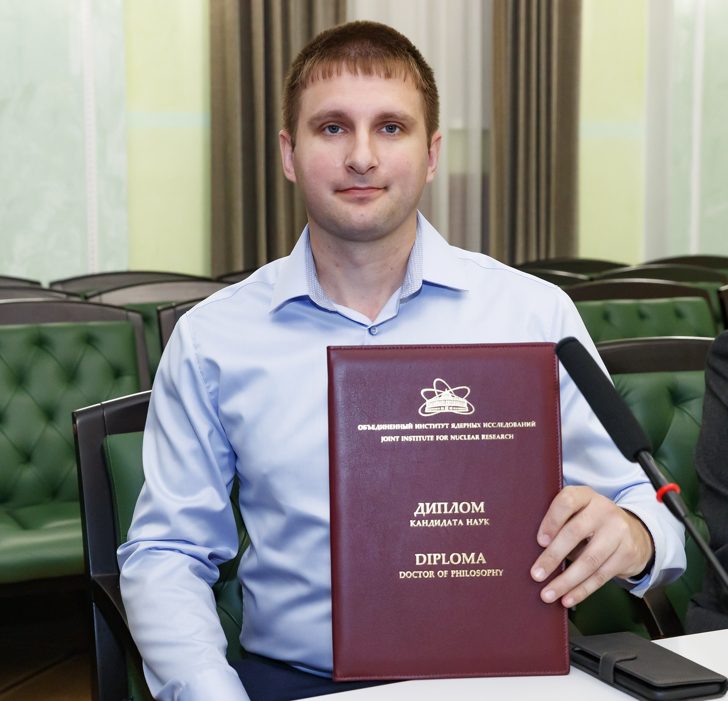 On 26 July, an awarding ceremony of diplomas on conferring academic degrees took place in the Big Hall of the JINR Scientists’ Club. Two Doctors of Sciences and five Candidates of Sciences received their diplomas. By tradition, the event was held in a festive atmosphere with the participation of representatives of the JINR Qualification Committee, guests, and scientific secretaries of Dissertation Councils, at meetings of which the defences took place.
