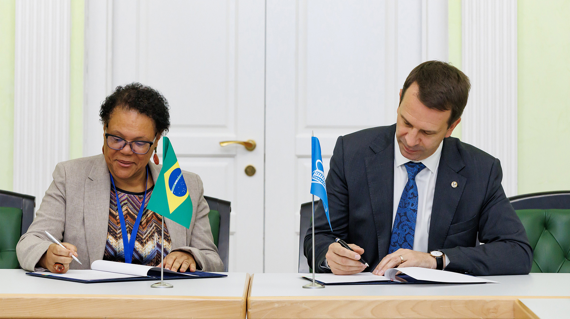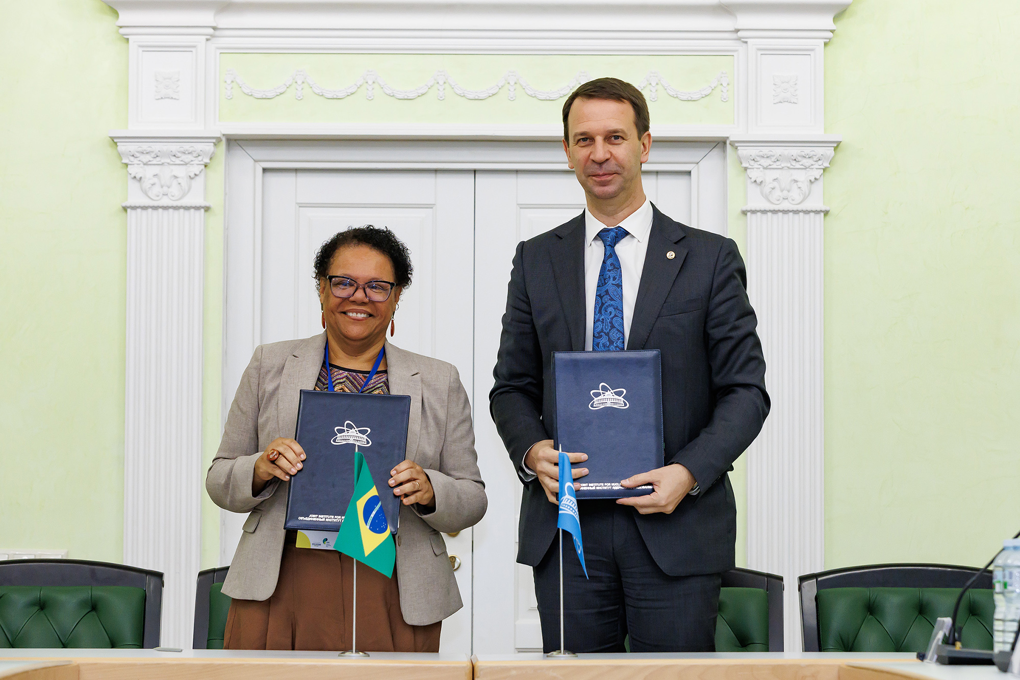 On 15 October, two new cooperation agreements were signed at the Joint Institute for Nuclear Research with the National Nuclear Energy Commission of Brazil (CNEN) and the Federal University of Southern Bahia (UFSB). During their visit to JINR, representatives of the higher educational institutions of the Federative Republic of Brazil got acquainted with the scientific infrastructure of the Institute and discussed cooperation prospects, including joint research and experience exchange.
