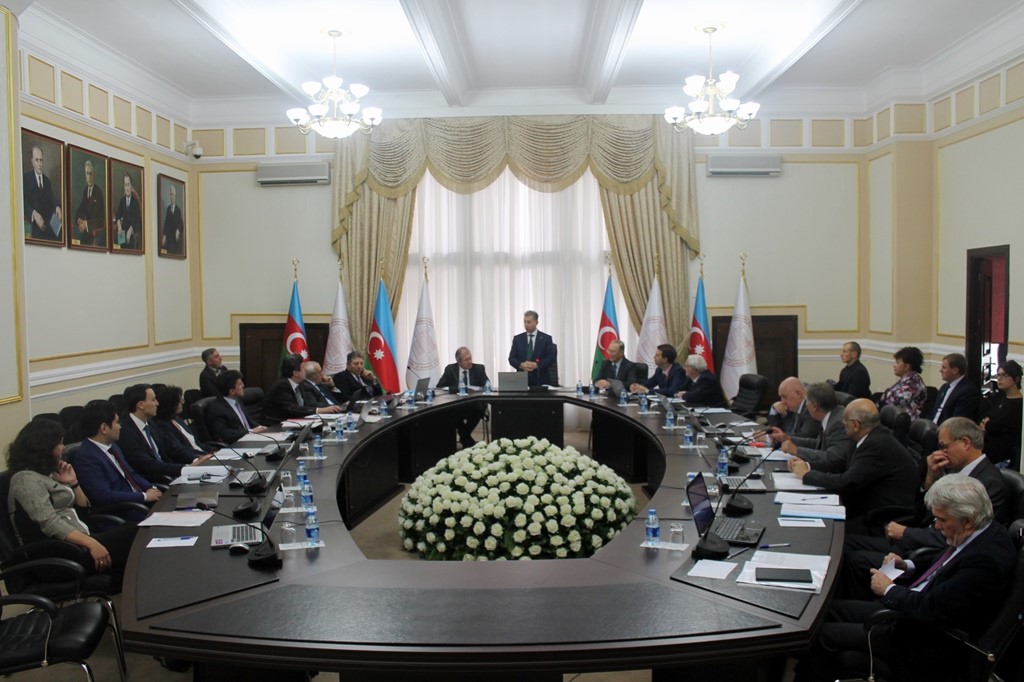 During the session, apart from the welcome speeches by guests of the event, reports by JINR Director V. Matveev and Director of the Veksler and Baldin Laboratory of High Energy Physics V. Kekelidze were heard. The final stage of the official part was visiting the institutes of the Azerbaijan Academy of Sciences, the National Centre for Nuclear Research and the Baku State University.