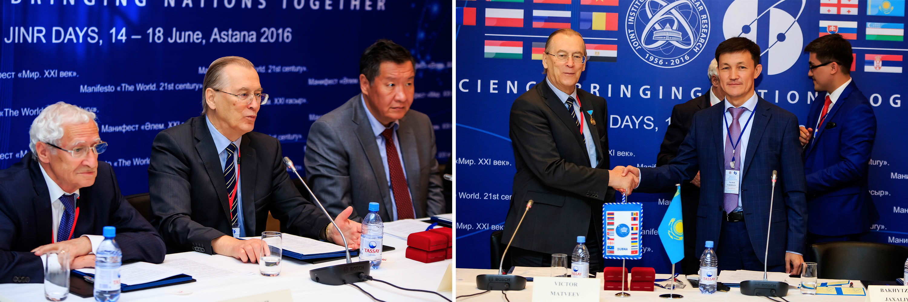 From 14 to 18 June 2016, festive events dedicated to the 60th anniversary of JINR and the 10th anniversary of the launching the DC-60 heavy-ion accelerator created with the participation of employees of the Flerov Laboratory of Nuclear Reactions, JINR were held in Astana, the capital of the JINR Member State, the Republic of Kazakhstan.