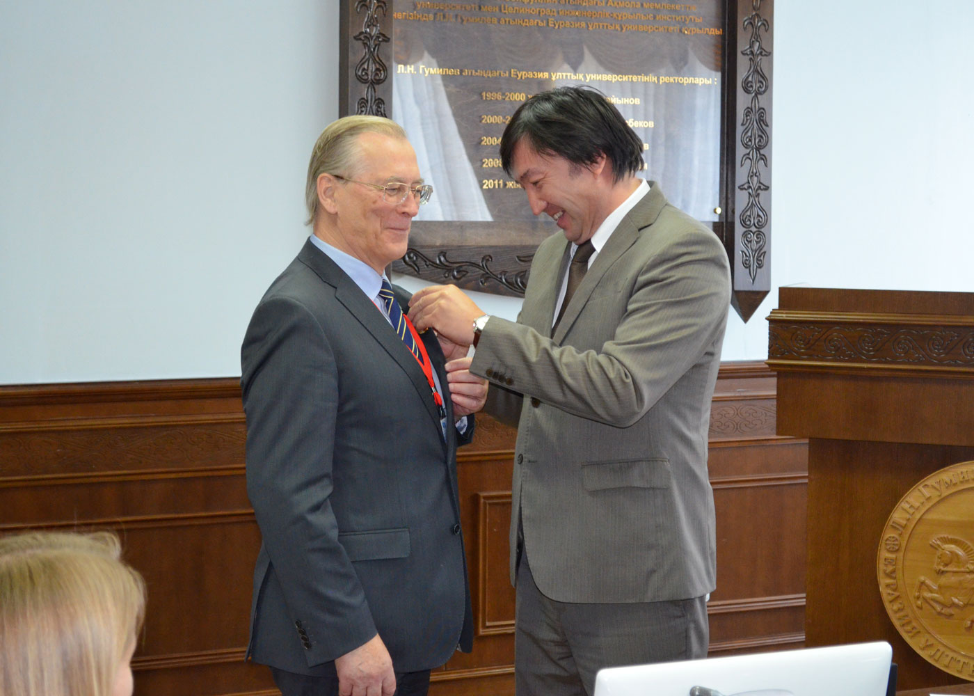 On the first day of the meeting, the JINR delegation had an opportunity to meet with the Directorate of the JINR’s important Kazakhstan partner — the L.N. Gumilyov Eurasian National University, where several participants were awarded with the commemorative medals “20 years of the L.N. Gumilyov ENU”, and visit the Astana branch of the Institute of Nuclear Physics of the Interdisciplinary Scientific and Research Complex and to estimate the success rate of the jointly implemented project of the heavy ion accelerator DC-60.