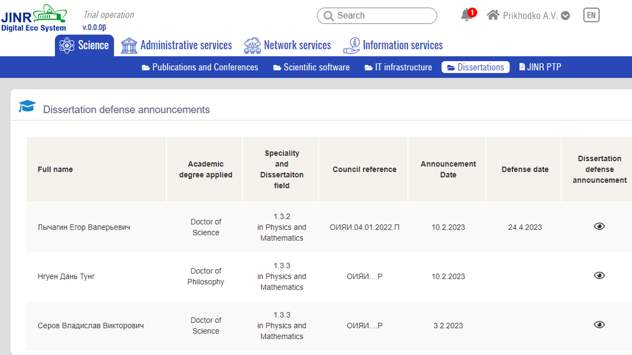 – Yes, it does. It has already been implemented and is actively used. Feedback is especially important to us. By September, it is planned to accumulate user reviews in order to prioritise the implementation and development of services. The results of the trial operation will be presented at the next meeting of the JINR Scientific Council.