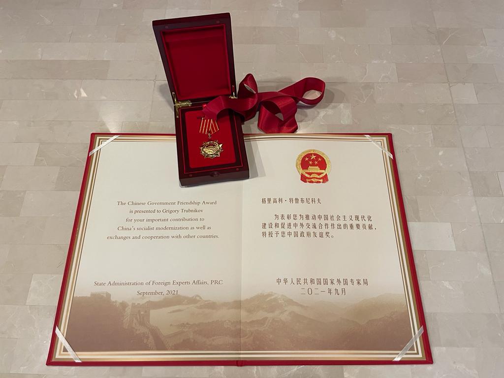 JINR Director Grigory Trubnikov honoured with Friendship Award of China