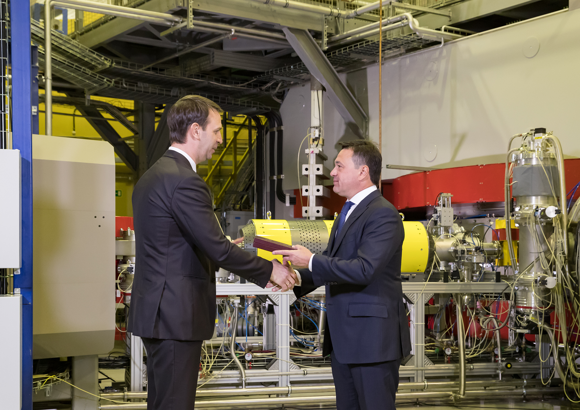 Academician Oganessian expressed gratitude and noted that during the visit to JINR of Governor Andrey Vorobyev after taking office, the DC-280 accelerator was just being constructed. “Now, it surpasses all its world-rivals combined by several times. It has no analogues,” Yuri Tsolakovich highlighted. “So, we do not lag behind you. I wish you every success. We witness it daily in the region. Many thanks!”