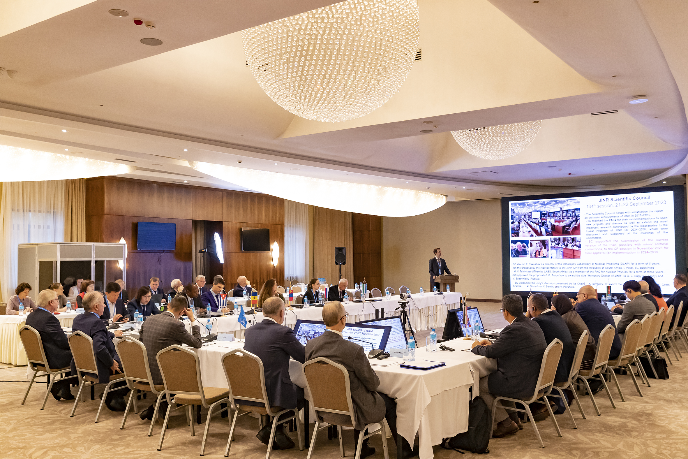 Head of the Budget and Economic Policy Department Nikolay Kalinin presented the preliminary financial results of the implementation of the Seven-Year Plan for the Development of JINR 2017-2023. He reported on the JINR draft budget 2024 and approximate contributions by the JINR Member States for 2025-2027. Based on the results of the JINR FC meeting, the Institute’s budget was approved in accordance with the new expenditure structure. In addition, the budget plan for the development of JINR for 2024-2030 was also approved, including the development of the JINR scientific and experimental base, engineering and social infrastructure, as well as providing a competitive level of staff wages.