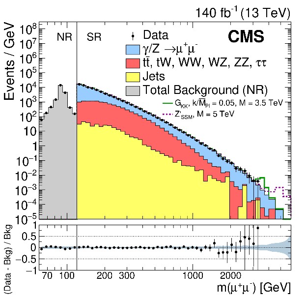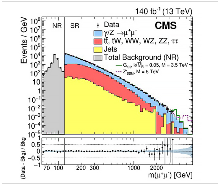 Systematic studies of high-energy muon pairs in the CMS experiment were initiated by JINR physicists in 2002. The proposed approach for studying physics processes with muons of large transverse momenta pT in the final state covers the entire spectrum of possible problems arising in solving such tasks, from theoretical calculations to complex analysis of experimental data. More narrowly, this problem was formulated as a study of the production of pairs of opposite-signed muons with large invariant masses (heavy dimuons) to test the SM predictions in a new energy range and searches for signals from new physics based on possible deviations from its predictions (Fig. 1). This direction of the CMS physics programme has become one of the priorities for scientists of RDMS (the collaboration of the institutes of Russia and JINR in CMS, Russia and Dubna Member States) from JINR.
