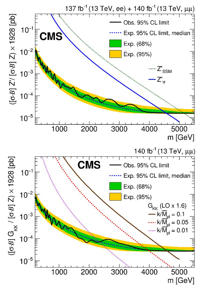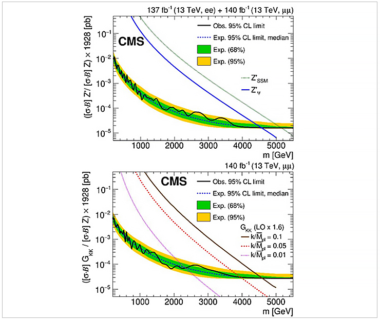 In 2010 – 2021, a series of experiments was performed with the LHC RUN1 and LHC RUN2 data at √s = 7, 8, and 13 TeV to search for new physics predicted by theories with an extended gauge sector, multidimensional gravity models, scenarios with candidates for dark matter particles. In addition, specialists tested the lepton flavour universality and carried out a number of other studies. So far, scientists have not observed any significant signs of new phenomena at high dilepton masses. The absence of a signal nevertheless tells researchers a lot about potential physics beyond the Standard Model. With data obtained at the CMS facility, scientists have set the strongest constraints to date on the masses of possible new particles that could decay into two leptons from a variety of models (Fig. 4). Stringent constraints have been also set on the parameters of models that predict non-resonant excesses at high mass, such as specific models with extra dimensions or models with a new contact interaction between particles.