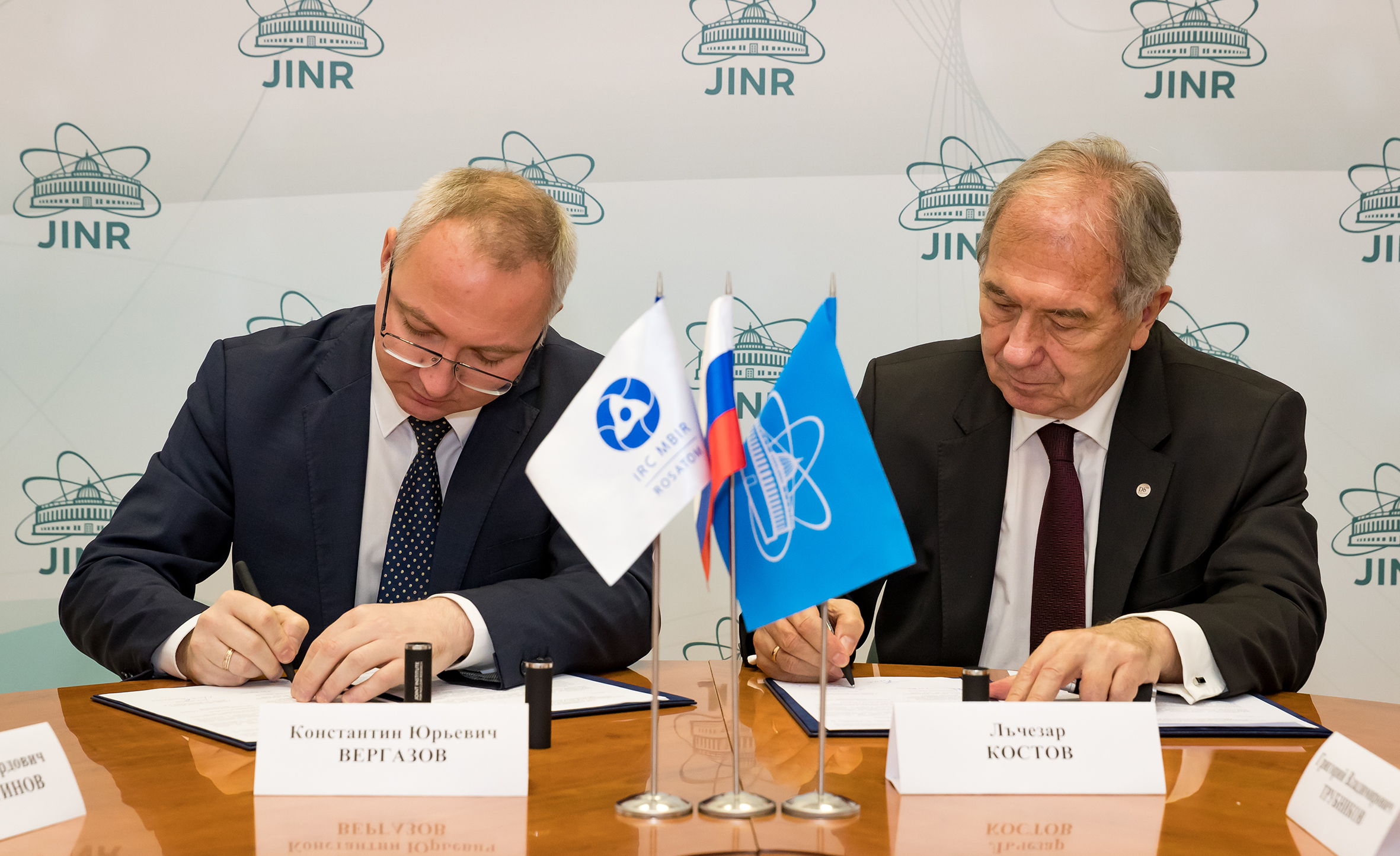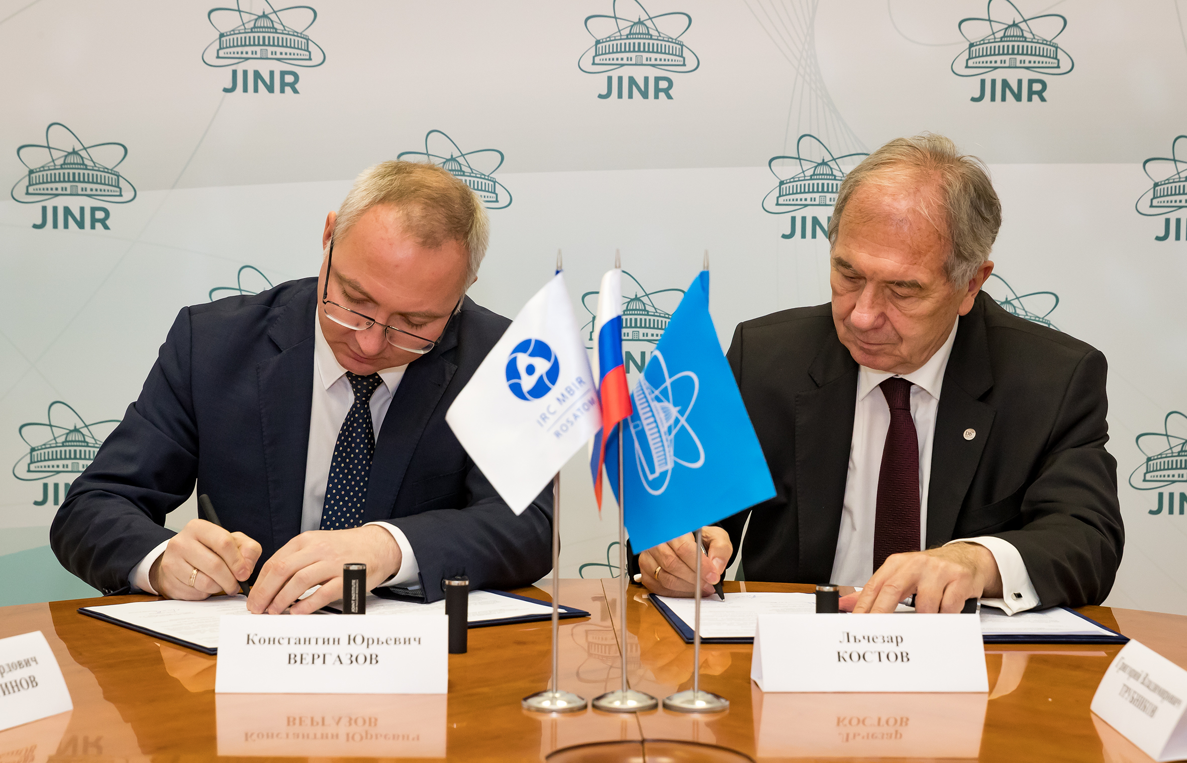 On 27 October, the Leader of the Consortium International Research Centre MBIR JSC and the Joint Institute for Nuclear Research signed an agreement on cooperation in the fields of basic scientific and applied research at the multi-purpose research reactor on fast neutrons (MBIR). JINR Vice-Director Latchesar Kostov and Director-General of the Consortium IRC MBIR Konstantin Vergazov signed the document.