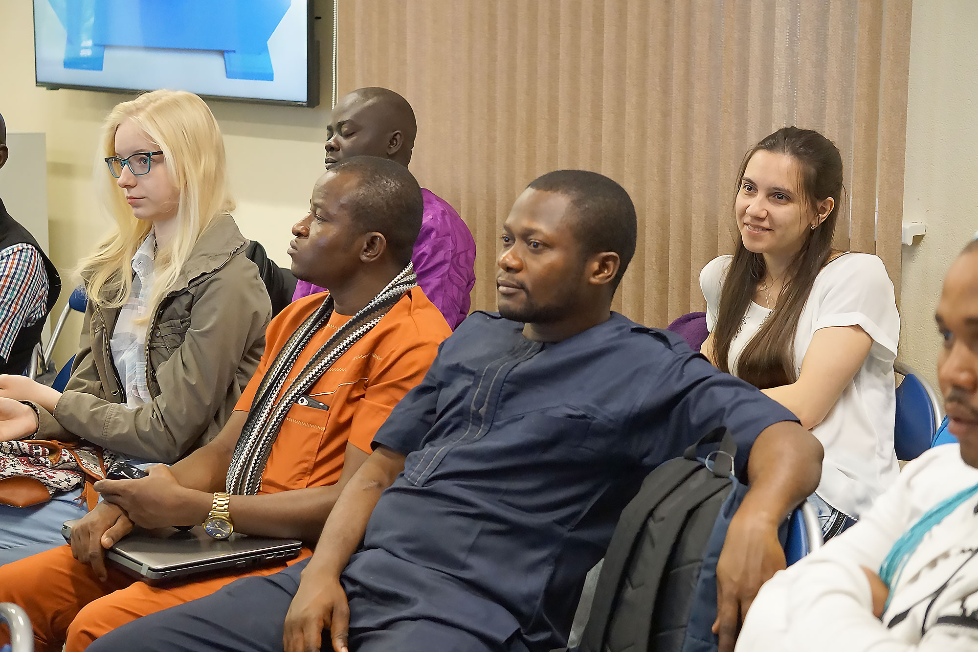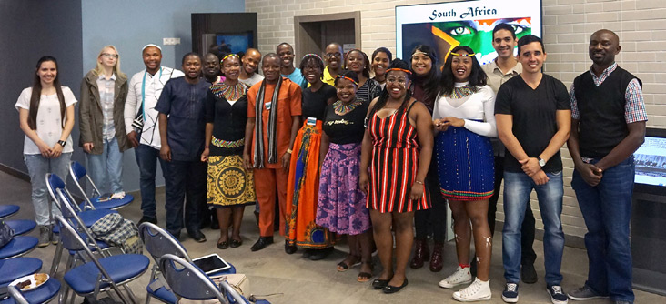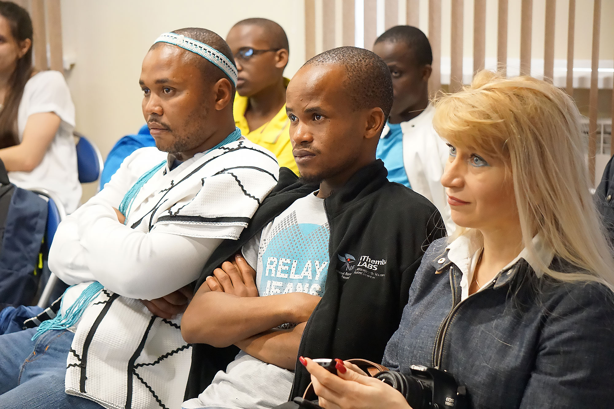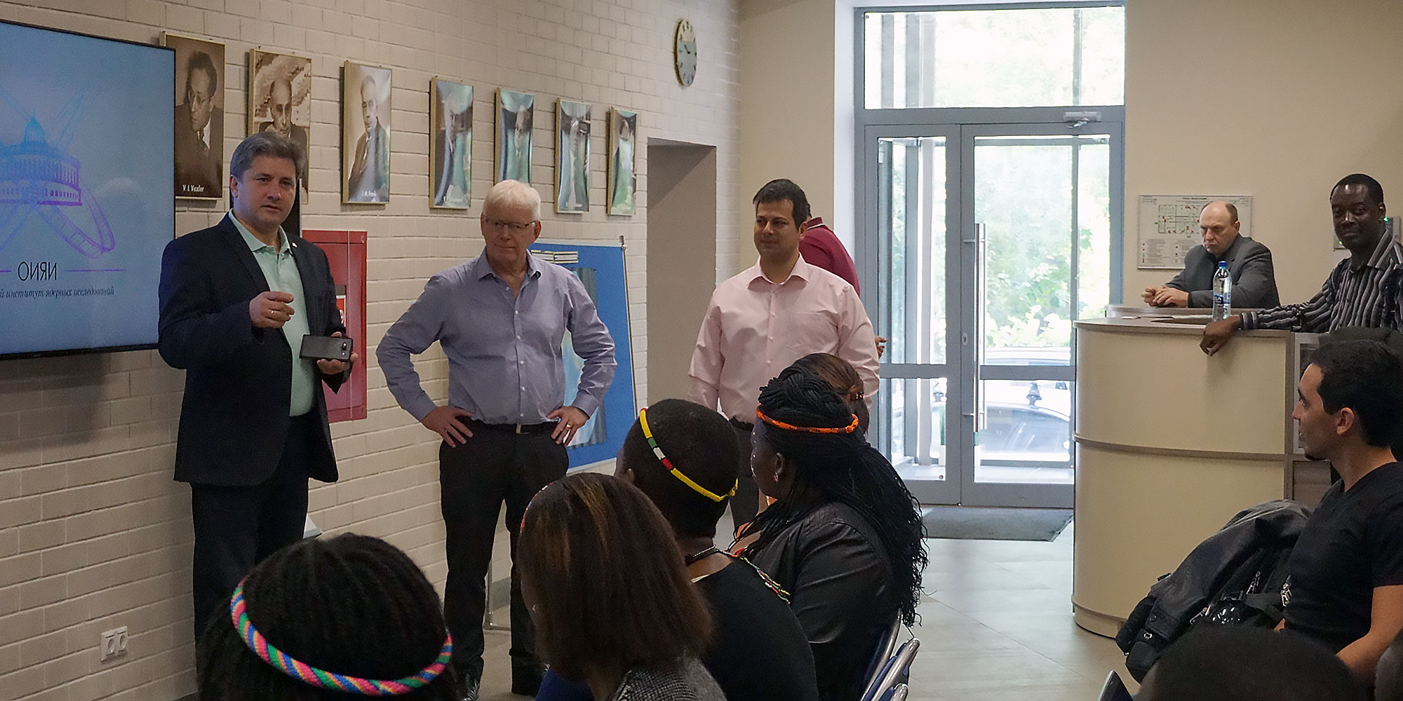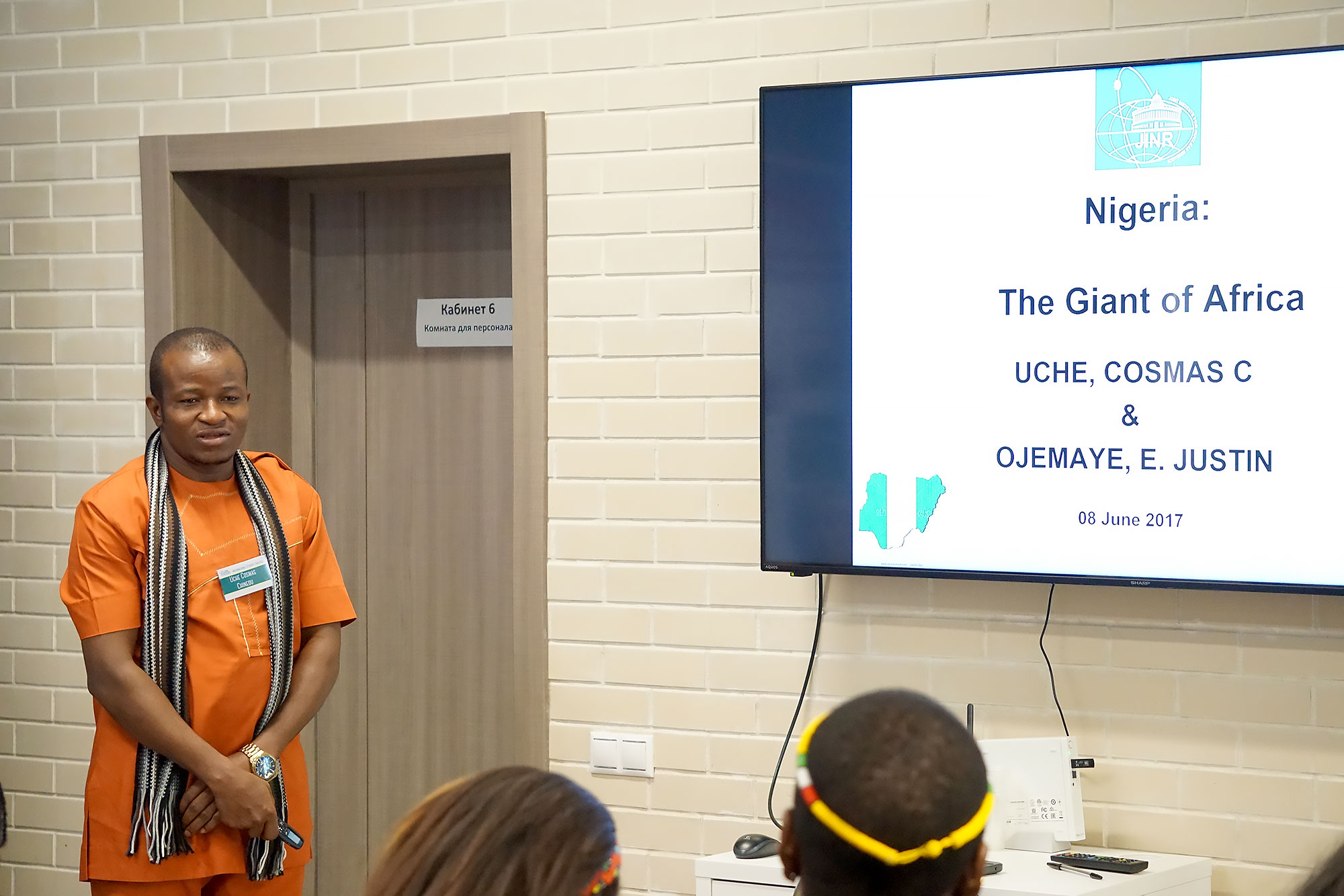 On 9 June 2017, the day started with “International Morning” at the JINR Visit Centre. The event has already become a good tradition during UC Student Practices at JINR. This time, participants of the First Stage of the International Student Practice have come from universities of the Republic of South Africa, including students from Nigeria, Congo and Cameroon who are studying in the RSA. Participants of the UC JINR Summer Student Programme from Cuba and Bulgaria also took part in the event.