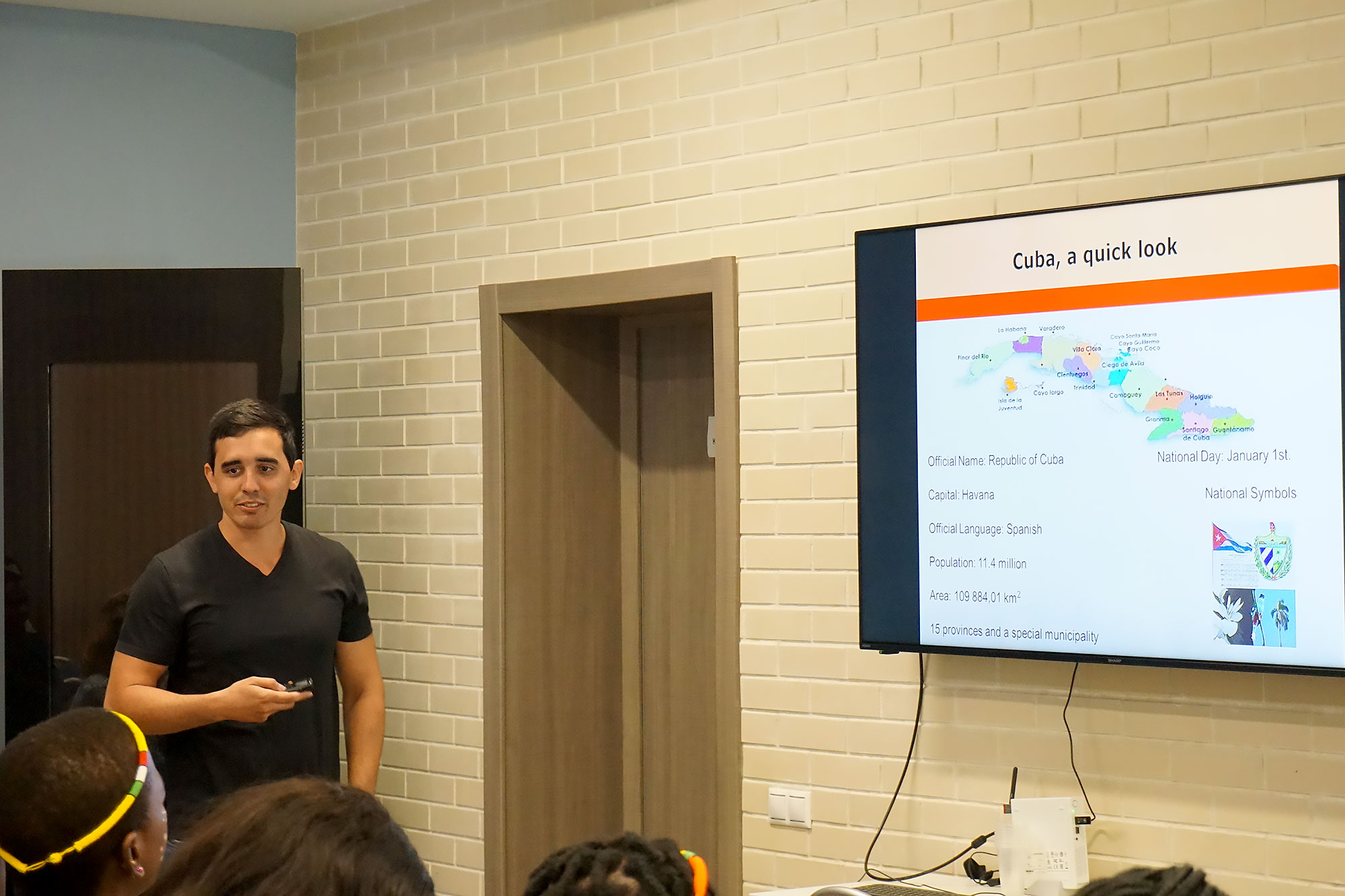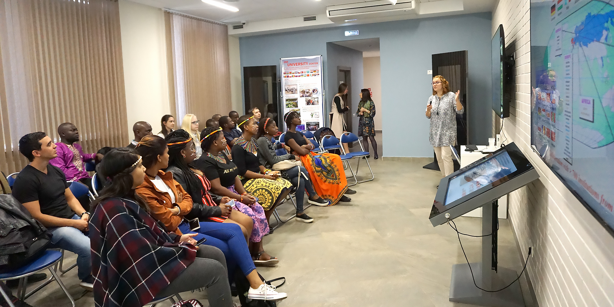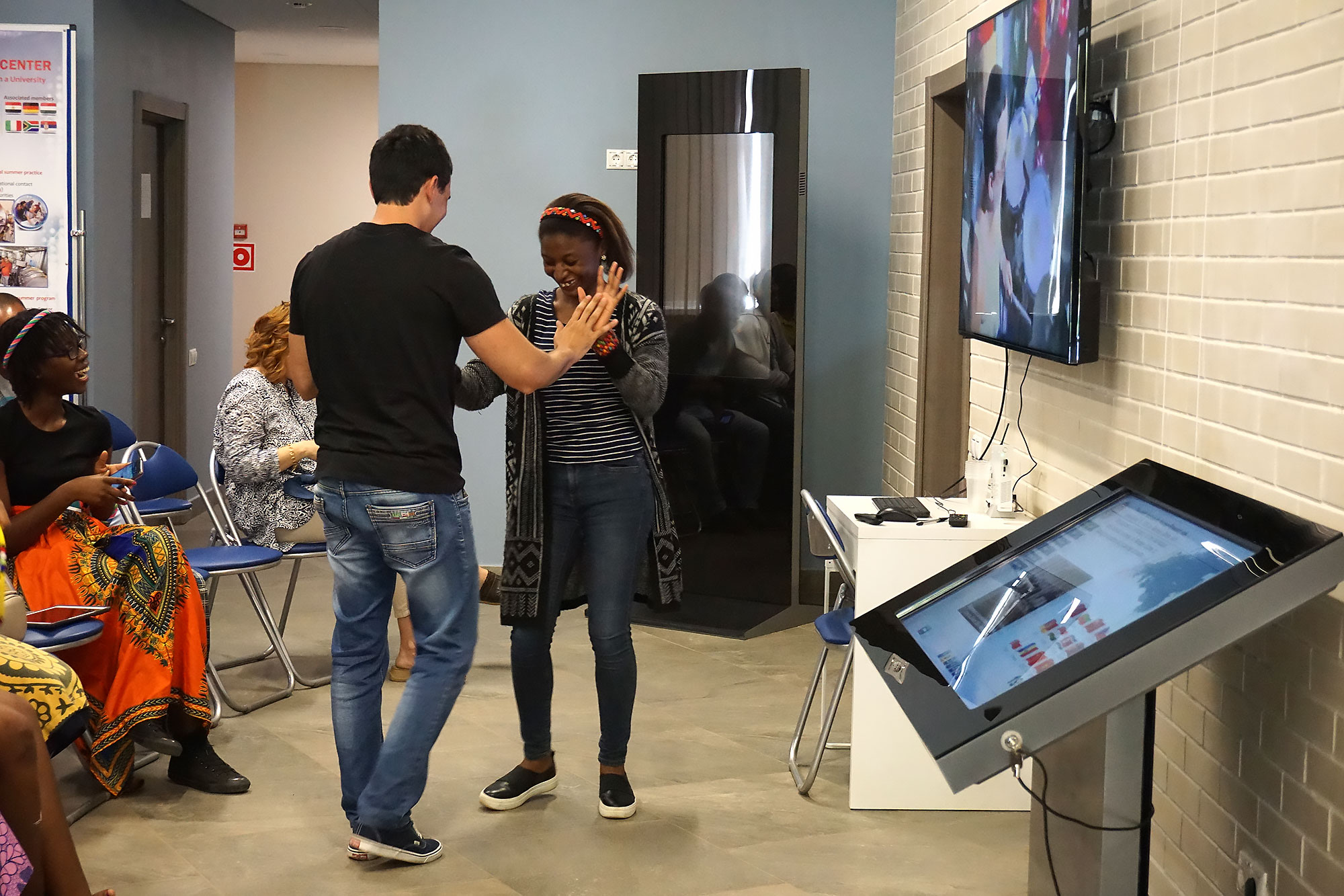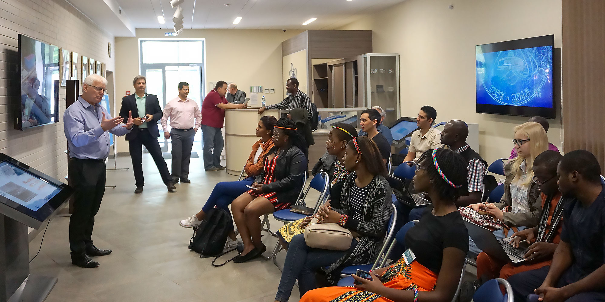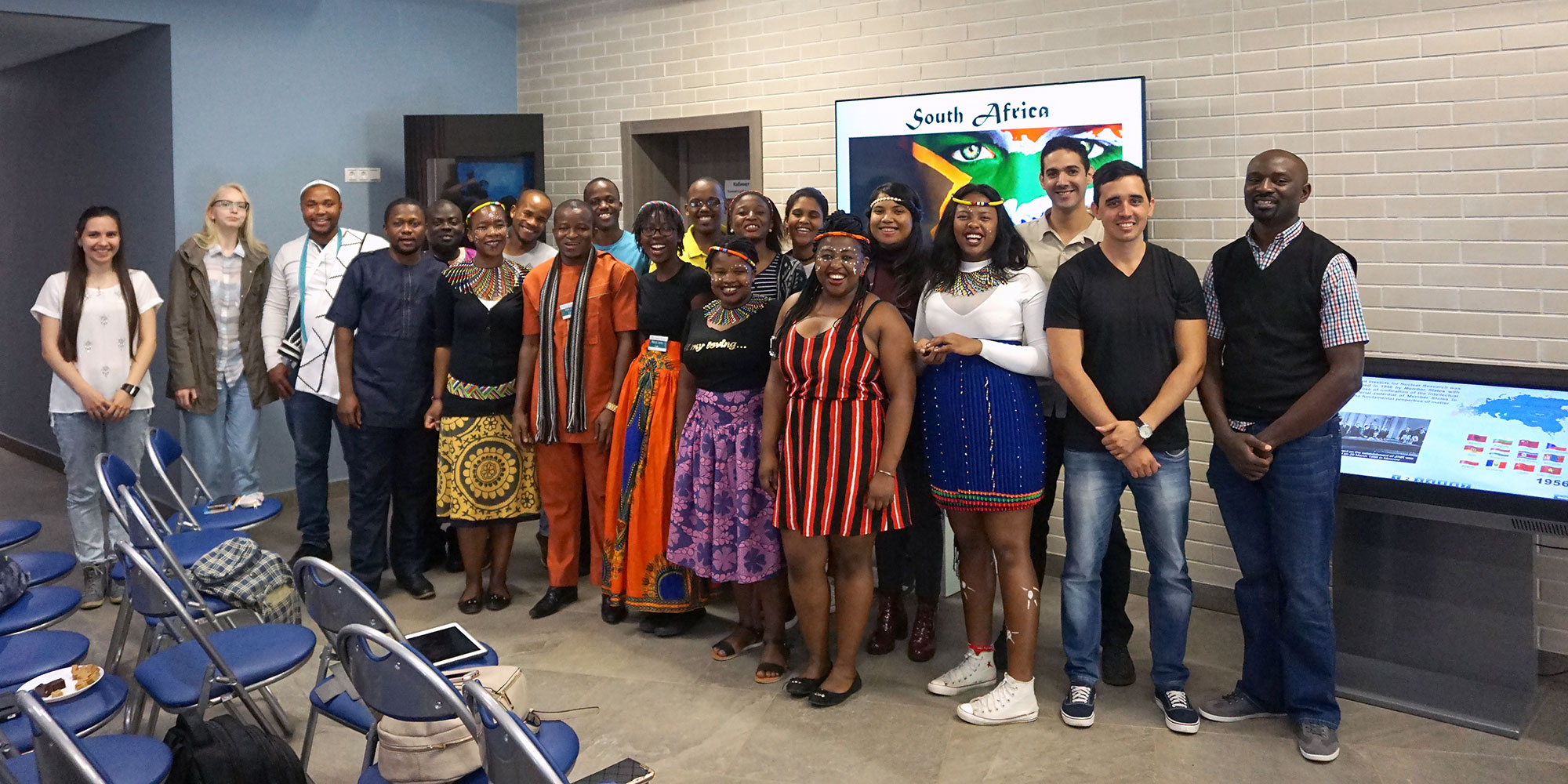 On 9 June 2017, the day started with “International Morning” at the JINR Visit Centre. The event has already become a good tradition during UC Student Practices at JINR. This time, participants of the First Stage of the International Student Practice have come from universities of the Republic of South Africa, including students from Nigeria, Congo and Cameroon who are studying in the RSA. Participants of the UC JINR Summer Student Programme from Cuba and Bulgaria also took part in the event.