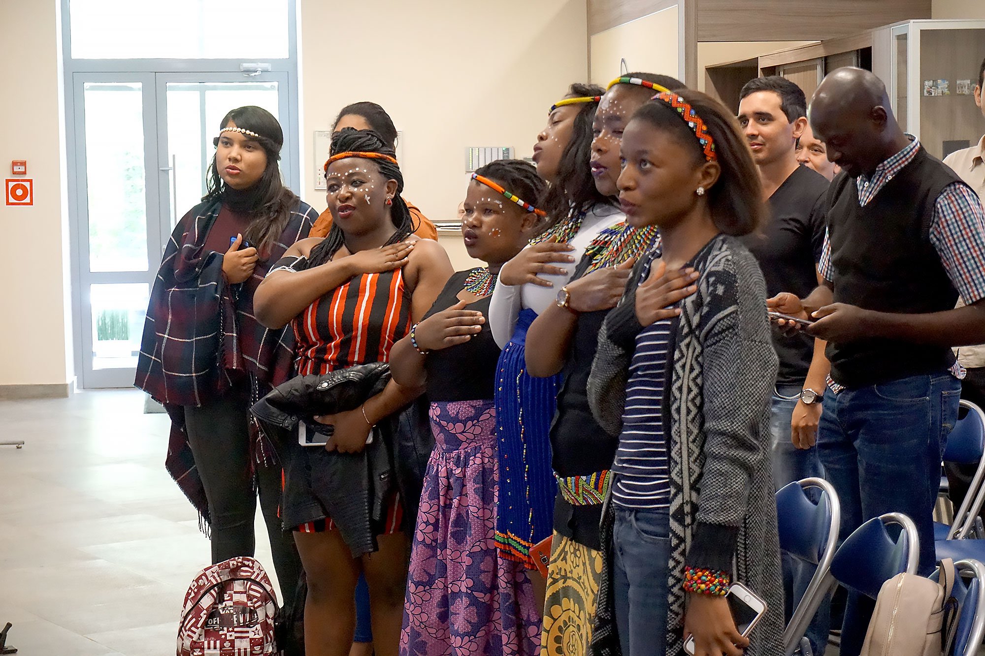 The meeting continued with students’ performances in an informal and friendly atmosphere. The students made colourful presentations on the history, culture and people of their native countries. There were dances, demonstrations of folk costumes, songs and national treats.