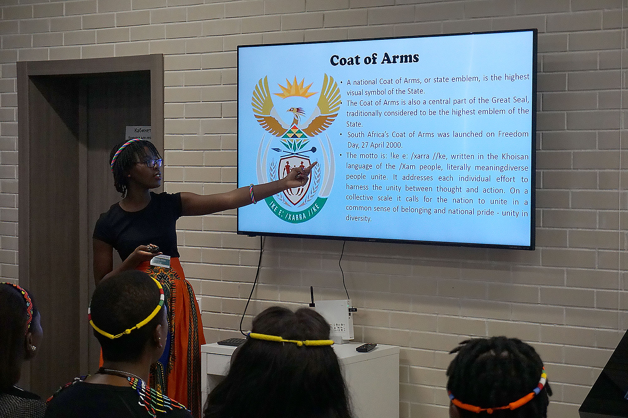 The meeting started with welcoming presentations by Dr. Dmitry Kamanin, Head of the International Cooperation Department (JINR), and Jacobus Lodewikus Conradie, Head of the Accelerator and Engineering Department at the iThemba LABS (RSA). Following that, Elena Bazanova gave a lecture on the history of Russia.