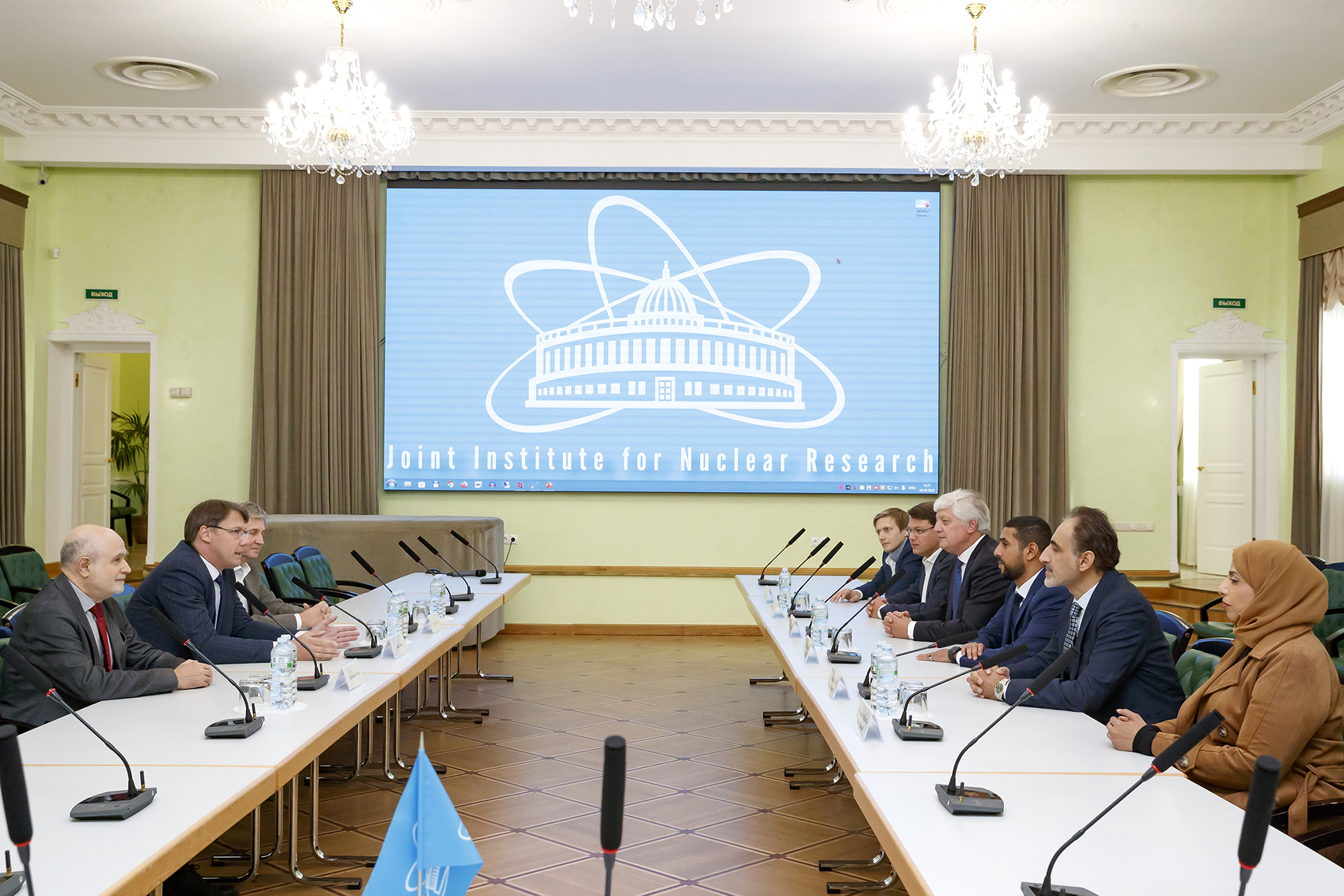 On 28 September, the Joint Institute for Nuclear Research was visited by a delegation from the Sultanate of Oman headed by Khalid Al-Shuaibi, President of the National Investment and Export Development Programme and Coordinator of the Oman Vision 2040 Programme, who was on a work visit to Russia. Head of the Investment Department of the Ministry of Commerce, Industry and Investment Promotion of the Sultanate of Oman, Khadija Al-Saqtari, and Head of the Business Partnership Development Department, Jassim Al-Alalwi, also arrived at JINR. The delegation visited the NICA Complex scientific infrastructure facilities and studied the opportunities of work in radiation materials science and biomedical research. Potential areas of cooperation were discussed at the meeting with JINR representatives.