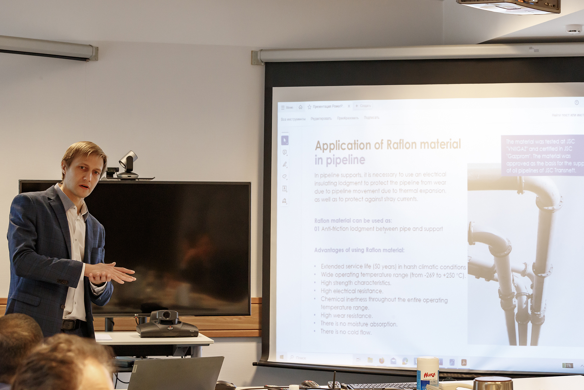 “We are very impressed by today’s tour and meetings, they allowed us to get a better understanding of the technologies used at JINR and identify many potential areas of cooperation. Any collaboration has to start somewhere, and we decided to start by studying the samples of the Raflon material presented,” President of the National Investment and Export Development Programme of the Sultanate of Oman, Khalid Al-Shuaibi, stressed. He also noted that student exchange programmes and personnel training are among the most important issues in the discussion of possible areas of cooperation. Mikhail Arzhakov, Chairman of the Quantum R LLC Board, expressed his hope for new scientific and technological results in radiation materials science using ion beams of the NICA Complex.