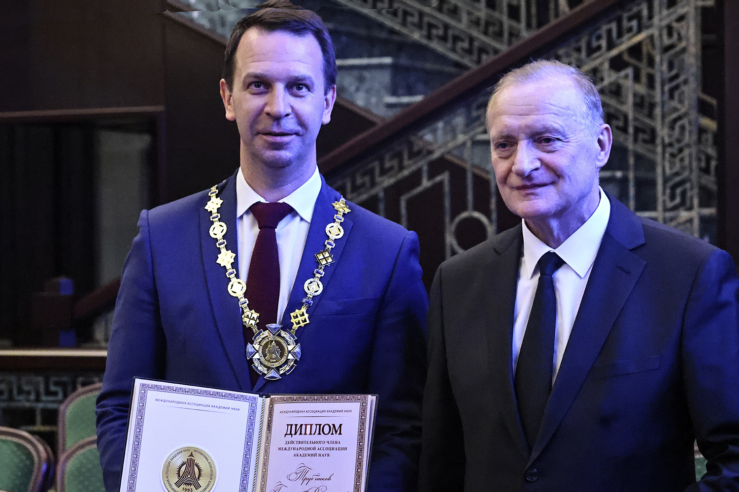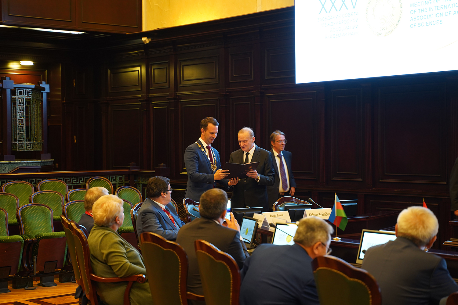 At the Academy Council meeting, Grigory Trubnikov, a full member of IAAS, was awarded a badge and a diploma as an IAAS Academician.