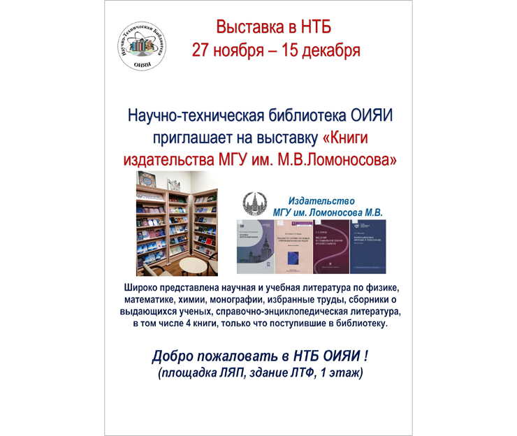 On 27 November – 15 December 2023, the JINR Science and Technology Library (S&T Library) invites visitors to the Books of Moscow University Press exhibition. Readers are offered more than 90 books published in the 21st century.