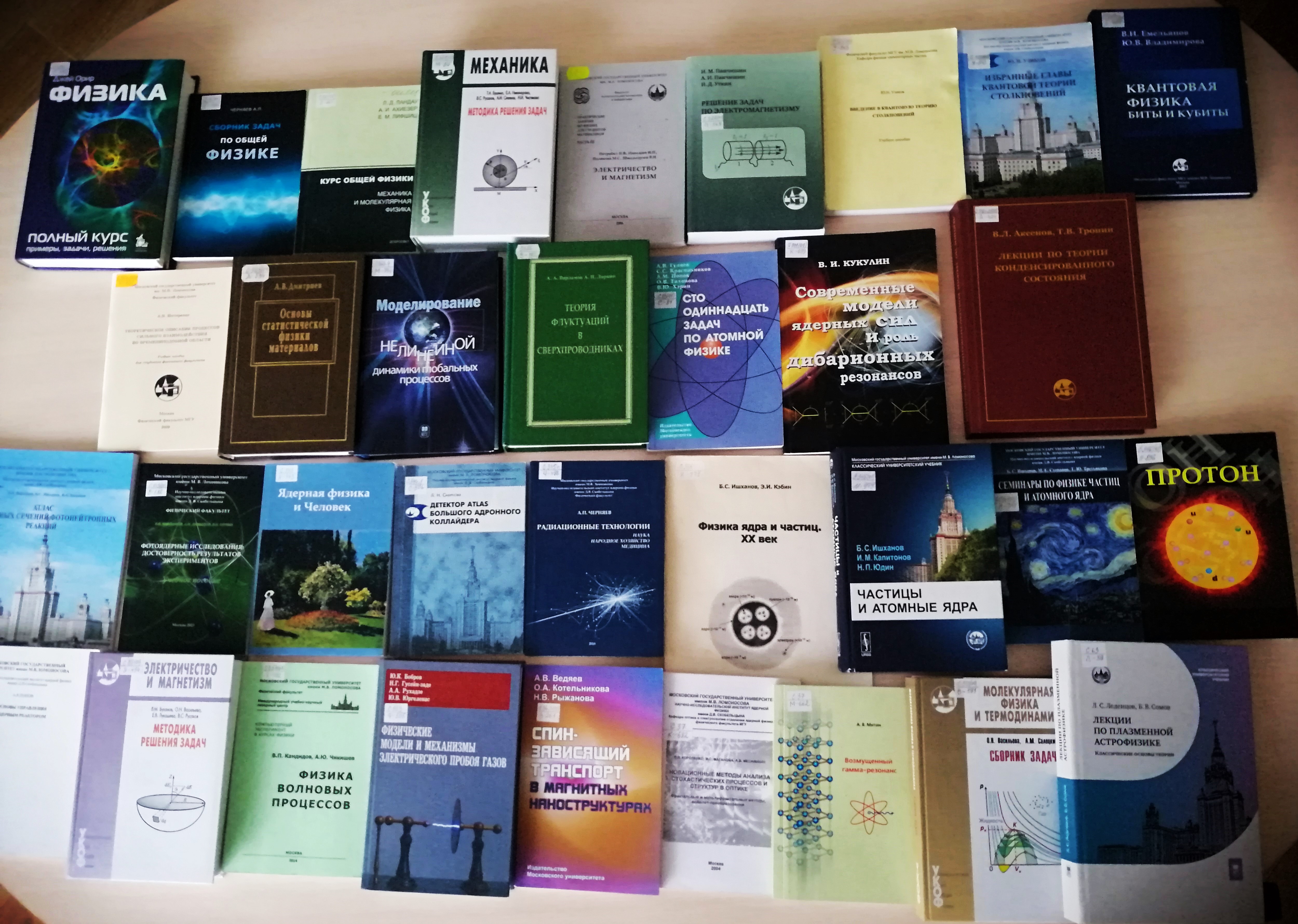 Topics of presented books are various and include educational, scientific books on physics, mathematics, chemistry; monographs, selected works, lectures, including those written by JINR employees (Nikolay Bogolyubov, Viktor Aksenov, Yuri Uzikov, Alexander Nesterenko, Viktor Zlokazov, etc.), collections about outstanding scientists, reference and encyclopedic literature.