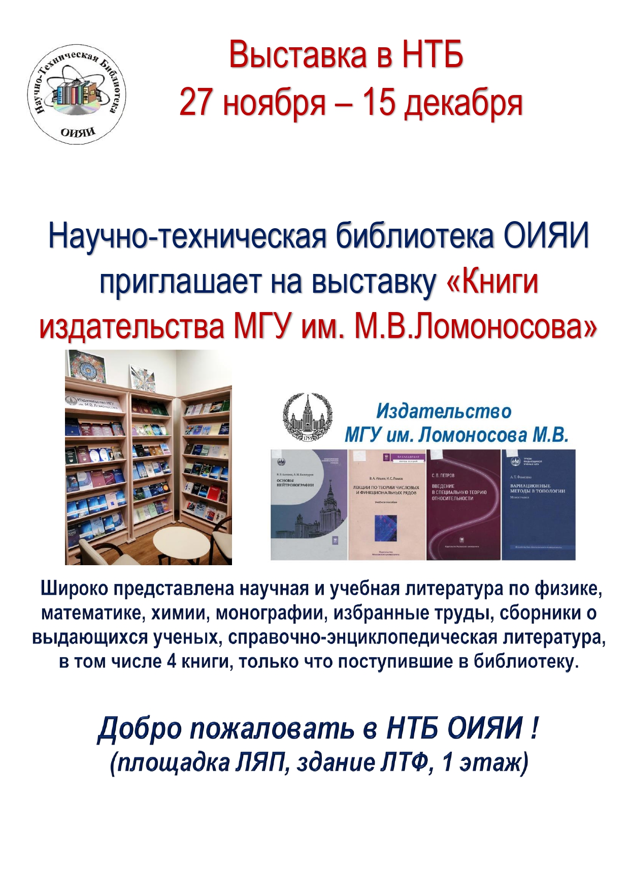 On 27 November – 15 December 2023, the JINR Science and Technology Library (S&T Library) invites visitors to the Books of Moscow University Press exhibition. Readers are offered more than 90 books published in the 21st century.