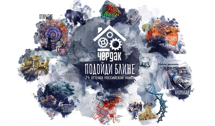 Graphic illustration, performed by Aisha Gi, a young designer from Kazan, is used as a means of telling about the achievements of Russian researchers.