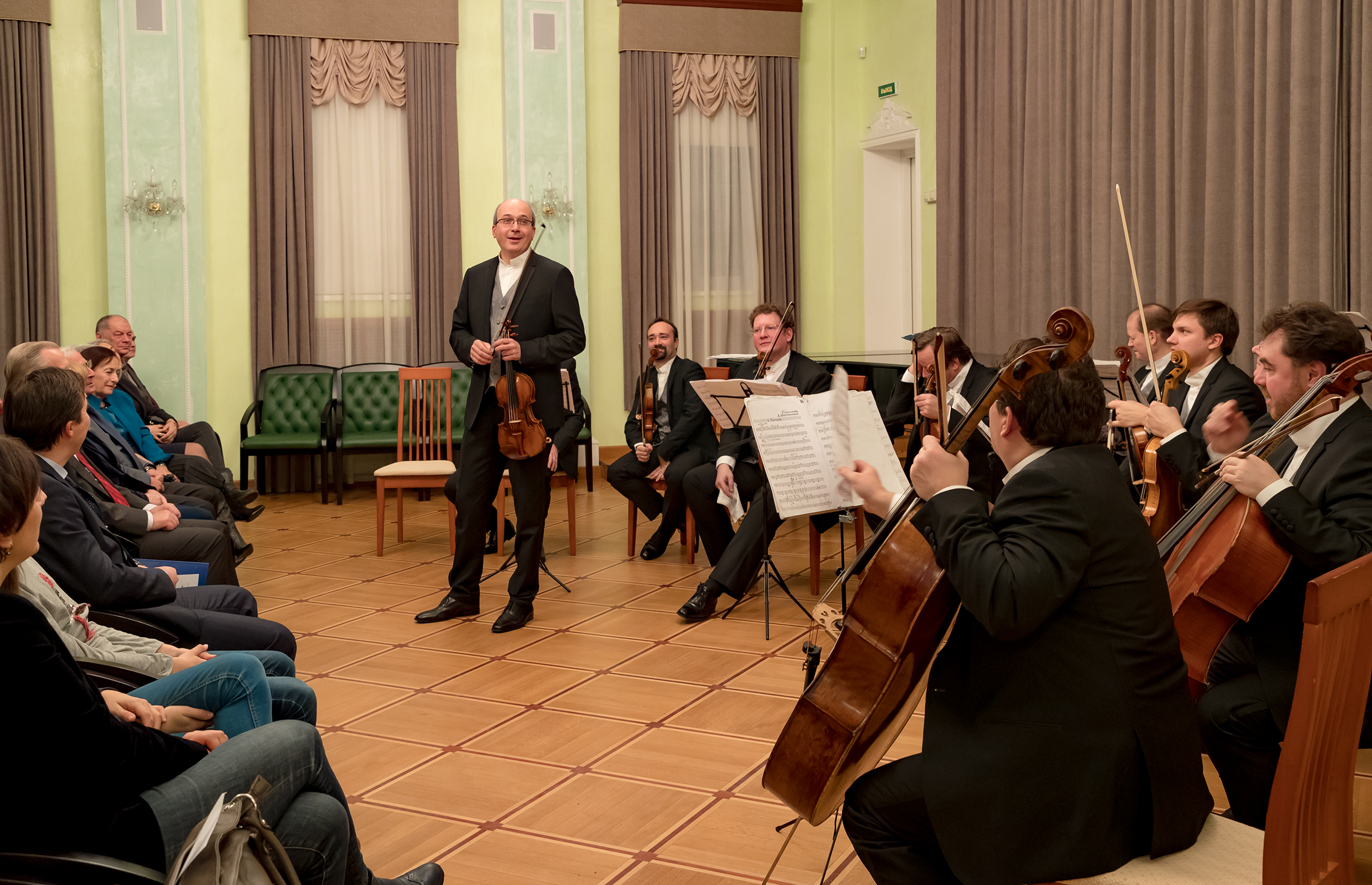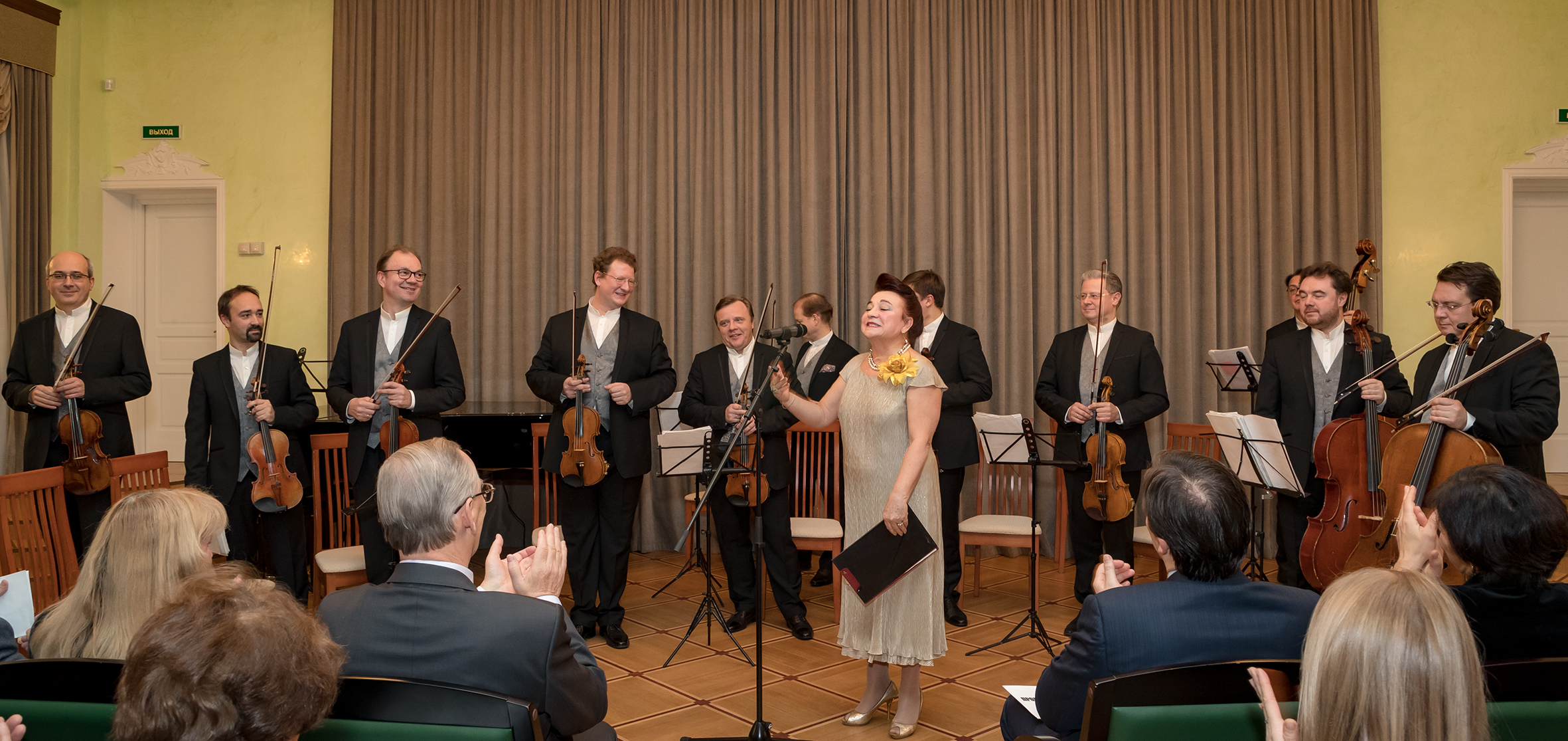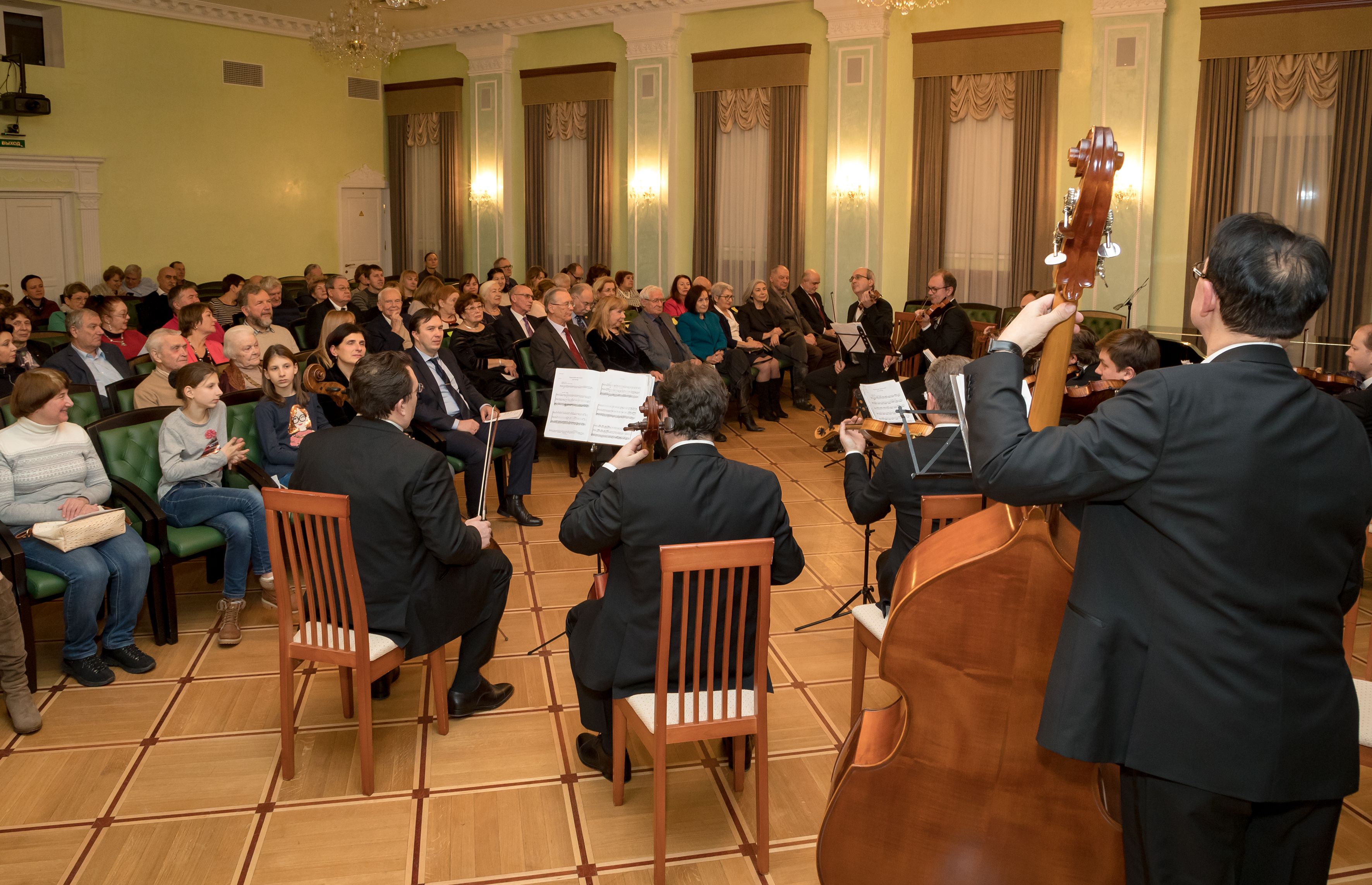 Anniversary celebrants made a gift to themselves and their guests who gathered on that evening in the hospitable Club: a concert of soloists of the State Chamber Orchestra “Moscow virtuoso players” the programme of which included masterpieces of chamber music. Works by Bach, Mozart and Tchaikovsky were performed in the first part of the concert; the second part was devoted to melodies by Piazzolla.