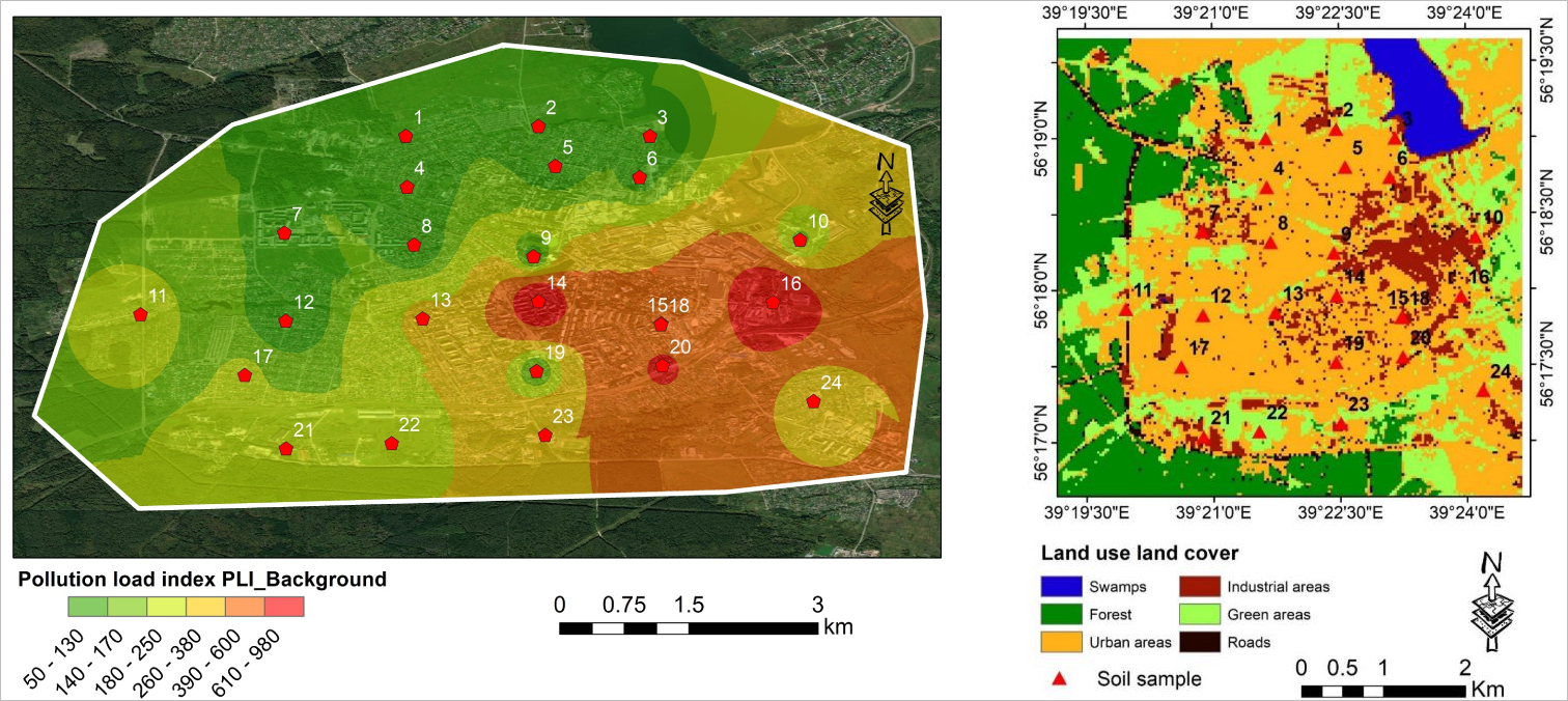 Researchers determined the mass fractions of four heavy metals and mapped them. They calculated pollution levels and created topological maps of soil contamination areas using a set of ArcGIS geographic information software products. It made it possible to identify areas of serious pollution with heavy metals.