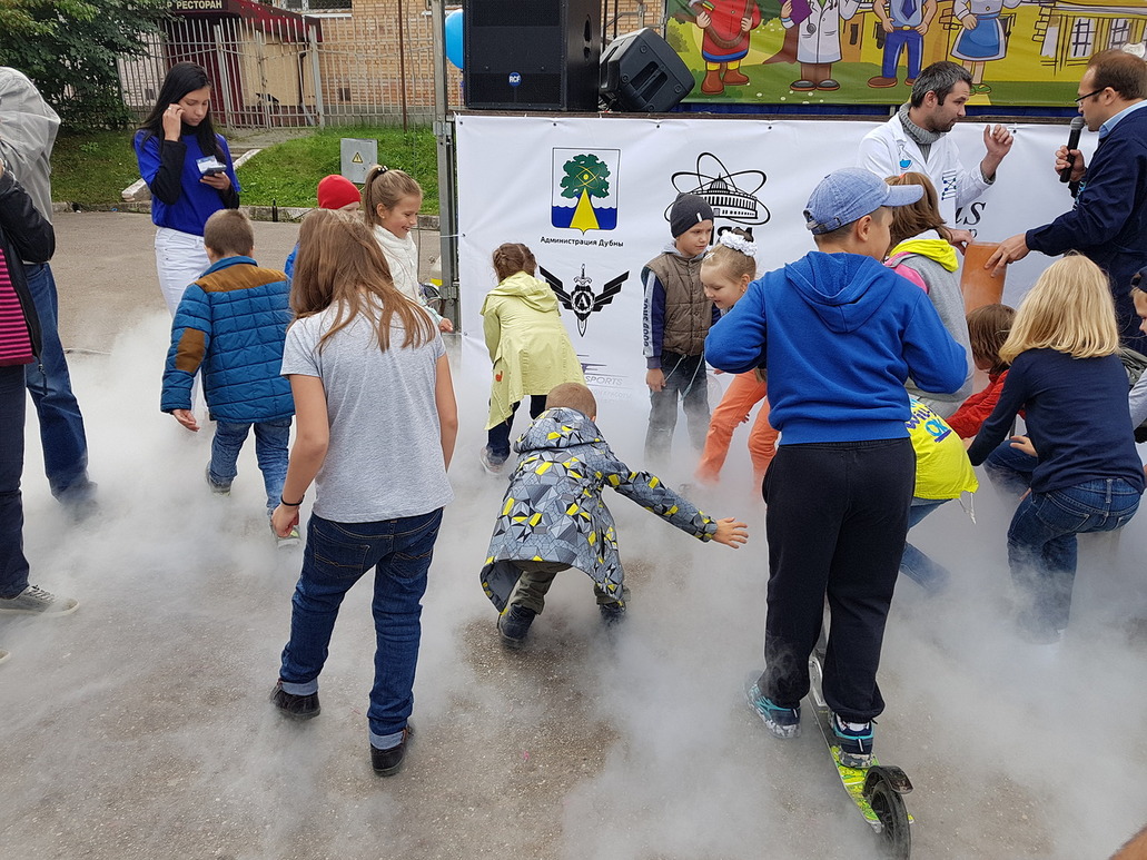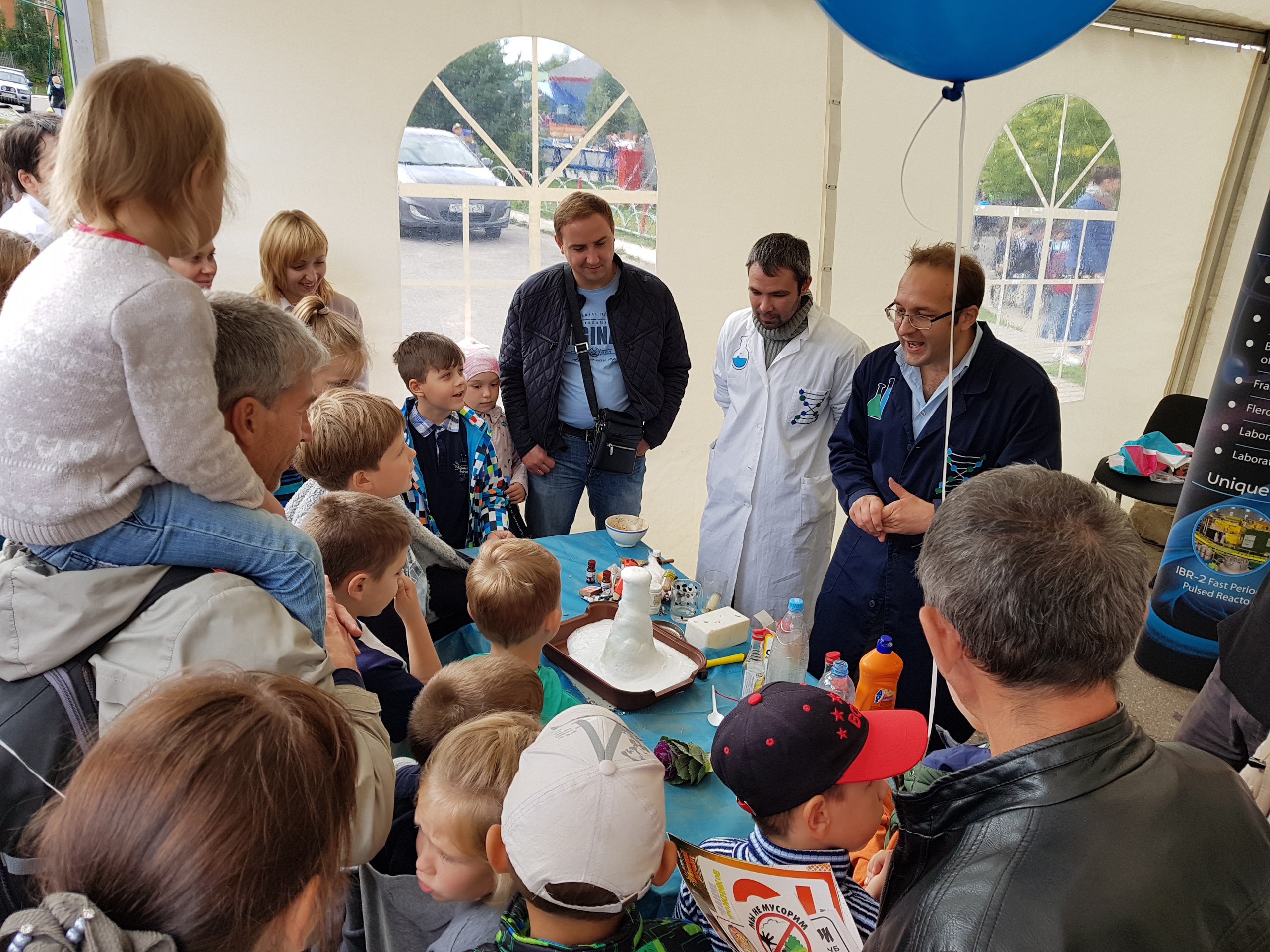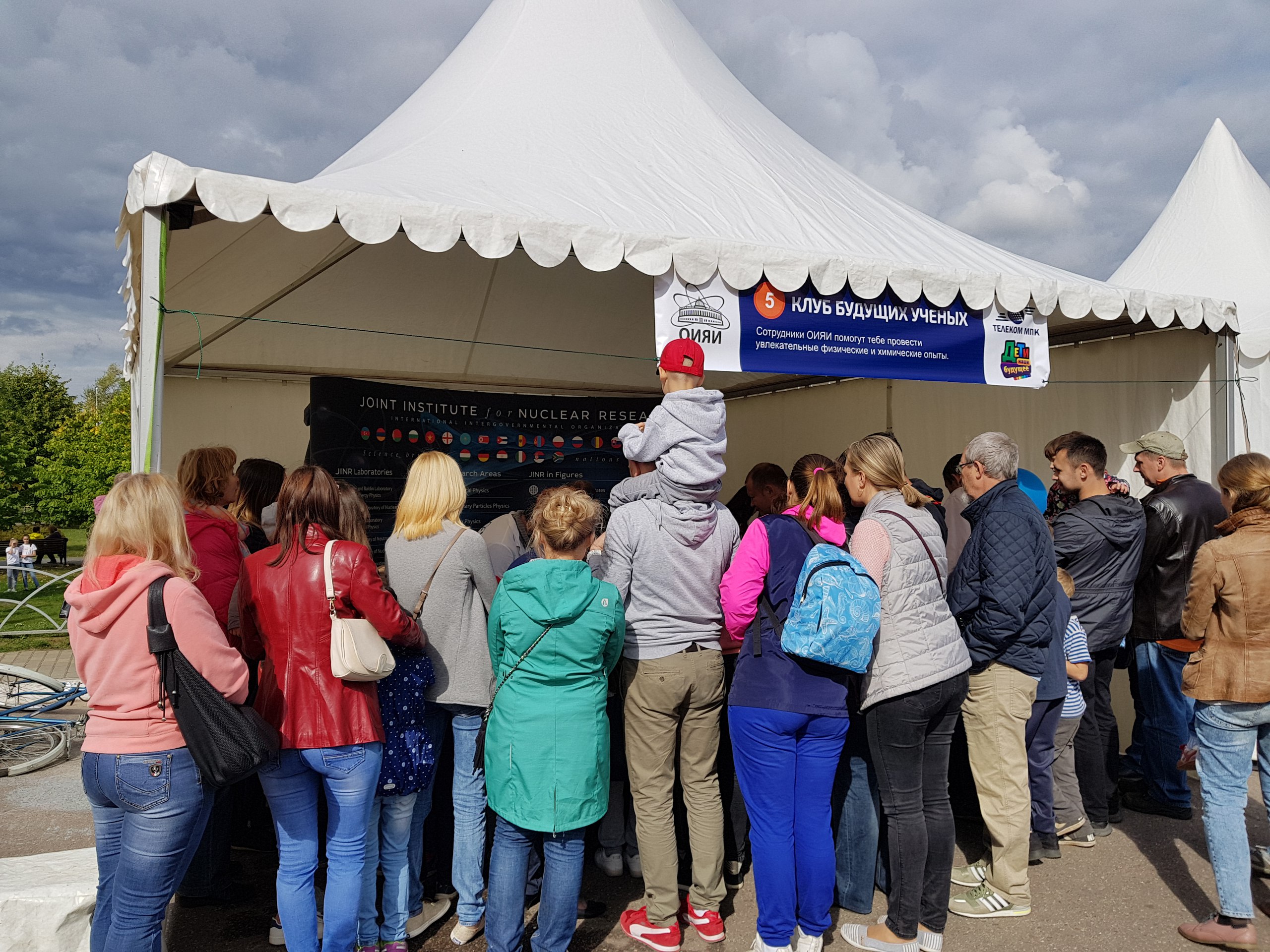 On 9 September the Russian national event «Children Are Our Future», which is run in more than 20 Russian cities, was held in Dubna for the first time. The Joint Institute for Nuclear Research presented its interactive pavilion, “Club of future scientists”, and also appeared on stage with physics and chemistry experiments and a lecture. The festival was organized by the Telecom MPK company in association with the town Administration. The primary objective of these festivities was to popularise education, to introduce first-year students to potential careers and to increase the level of interest to new technologies.