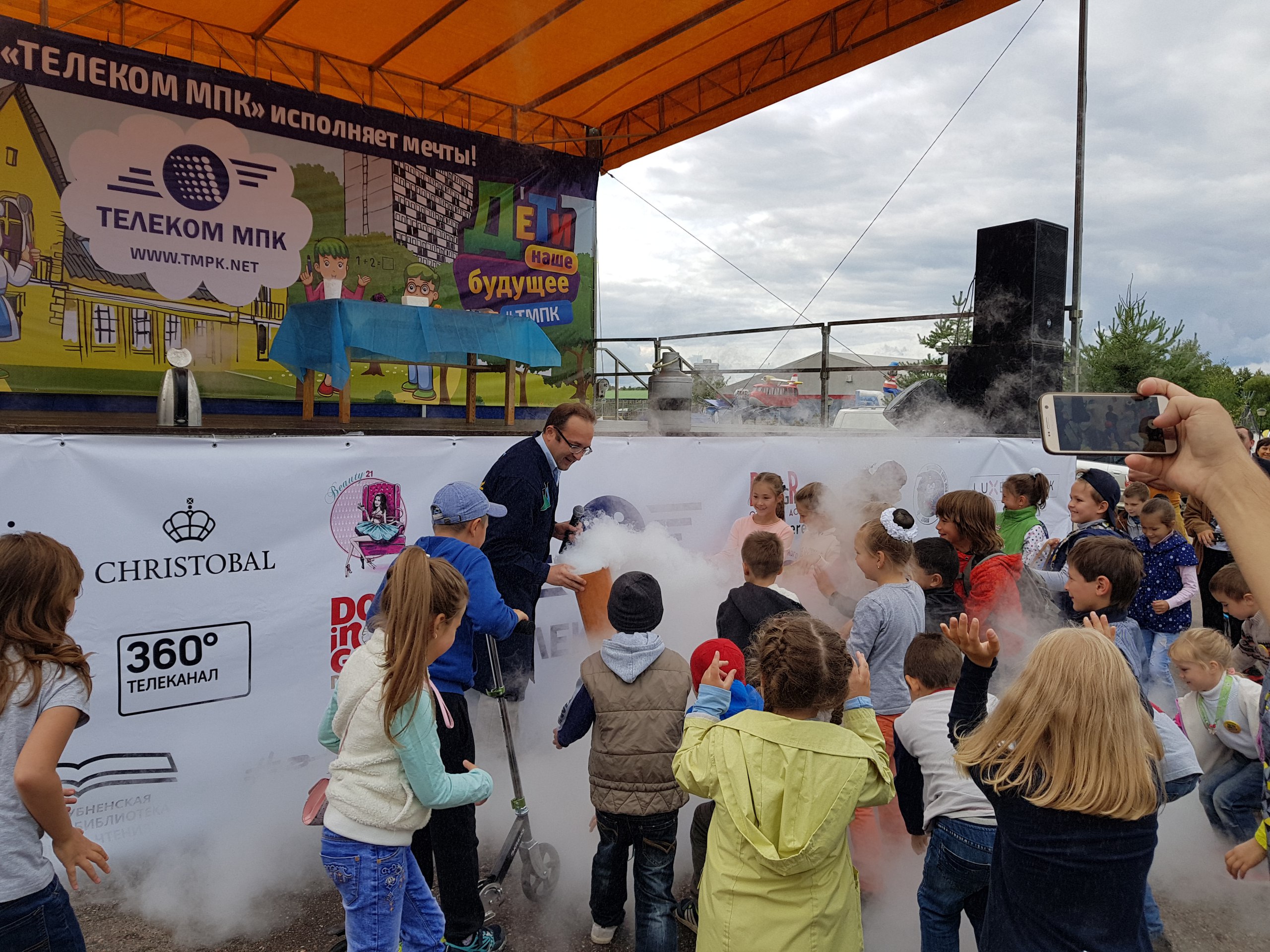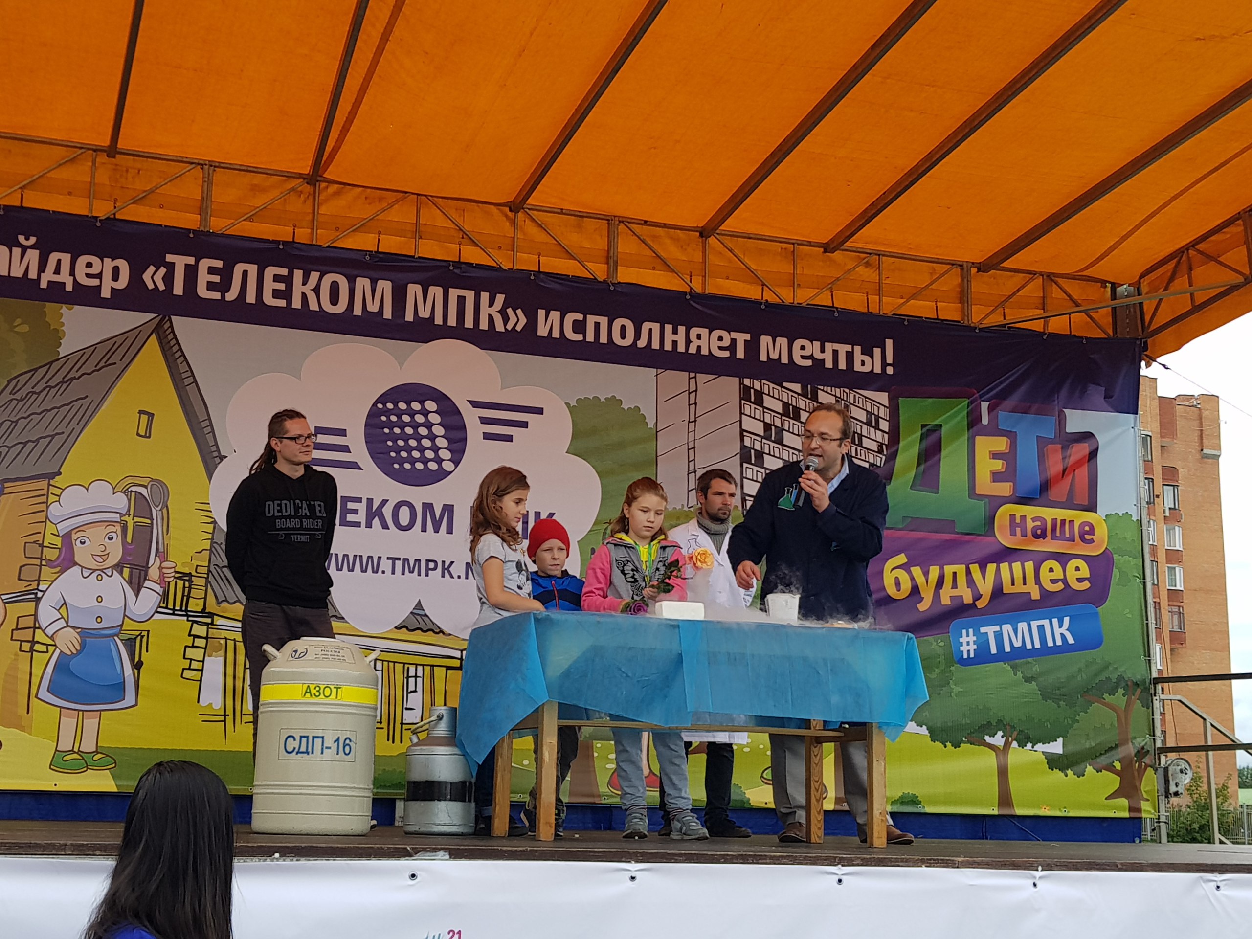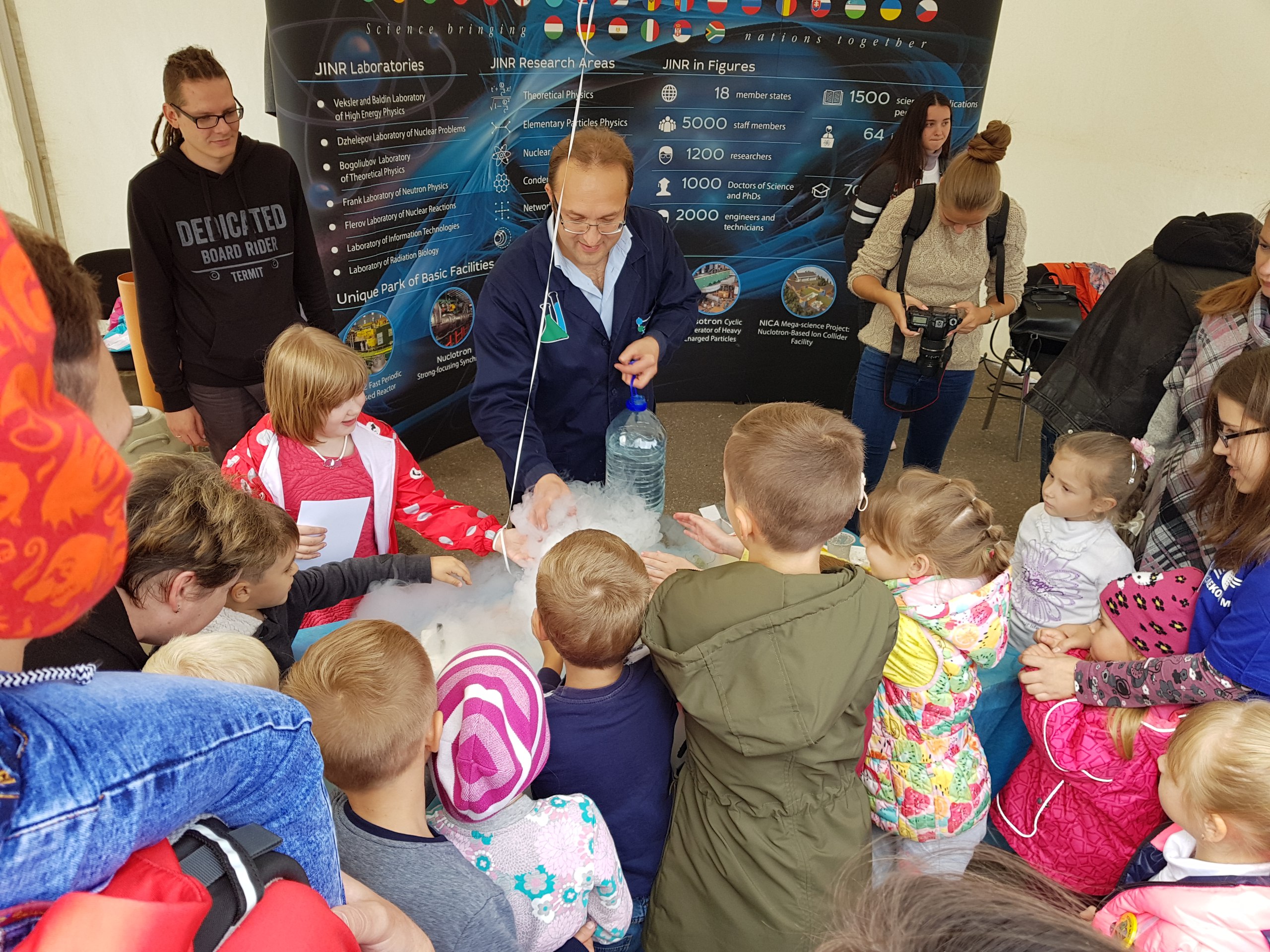 On 9 September the Russian national event «Children Are Our Future», which is run in more than 20 Russian cities, was held in Dubna for the first time. The Joint Institute for Nuclear Research presented its interactive pavilion, “Club of future scientists”, and also appeared on stage with physics and chemistry experiments and a lecture. The festival was organized by the Telecom MPK company in association with the town Administration. The primary objective of these festivities was to popularise education, to introduce first-year students to potential careers and to increase the level of interest to new technologies.