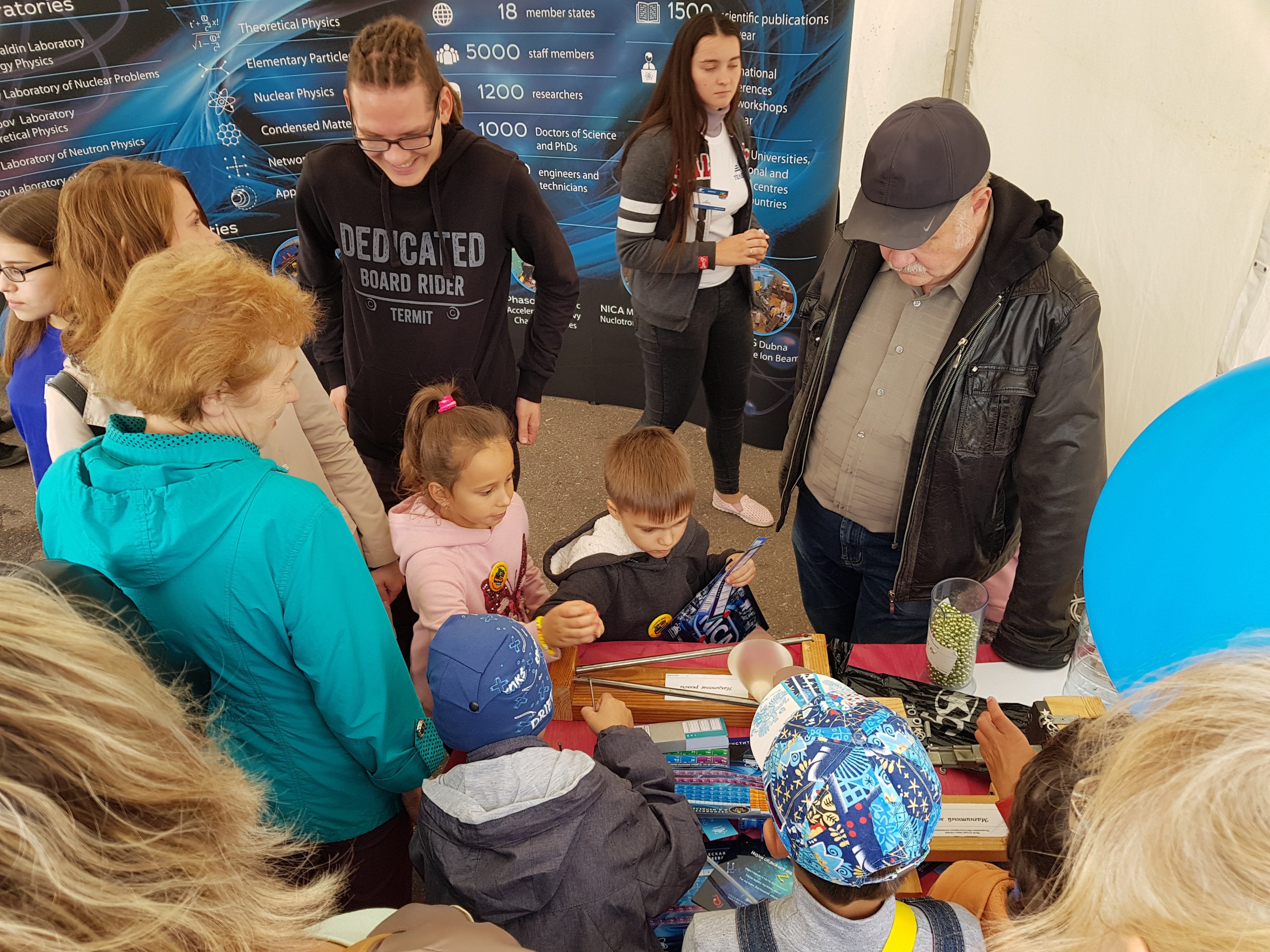 Children who attended the event had the opportunity to try their hand as experimentalists and explore different phenomena of the world around them. Those who were especially enthusiastic received special tokens which they could use as a payment for the park attractions. The JINR activists also awarded various souvenirs to young participants as well as involved adults.