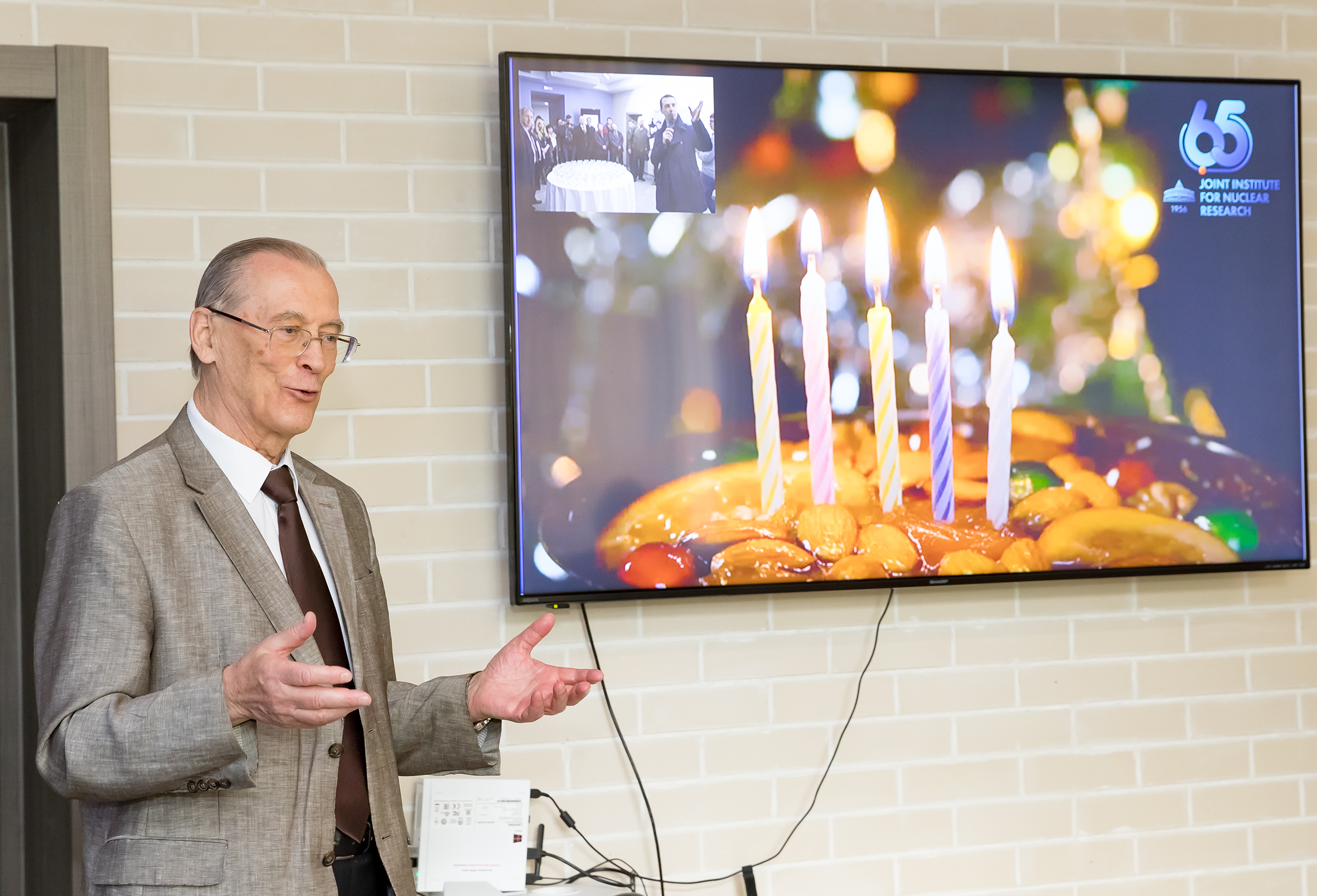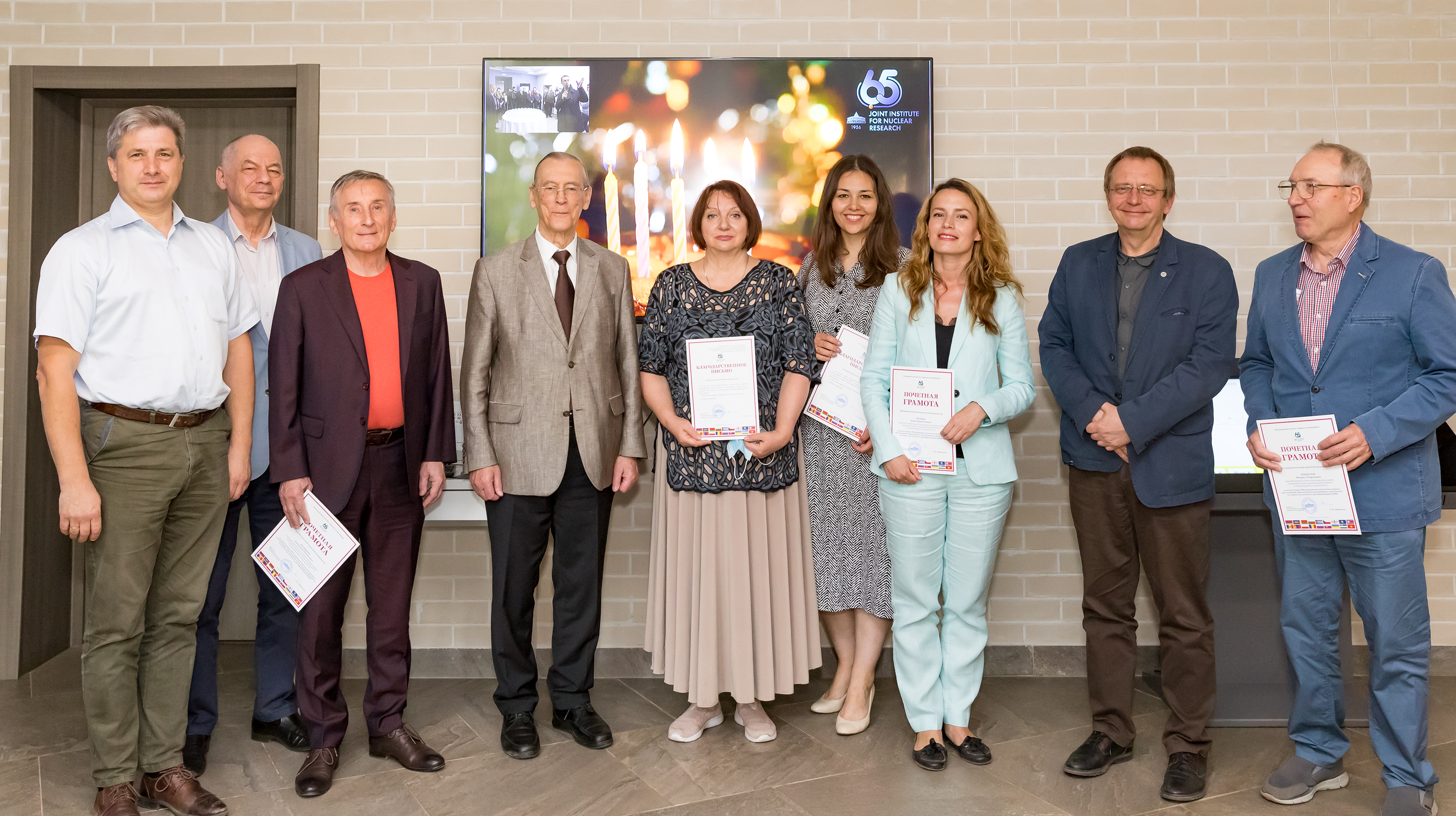 At the end of the official part of the event on the occasion of the 5th anniversary of the Visit Centre and the 65th JINR anniversary, Victor Matveev presented to leading employees of the International Cooperation Department certificates of honour and letters of thanks from the JINR Directorate. Anna Kotova who supervises the work of the Visit Centre was one of the award recipients.