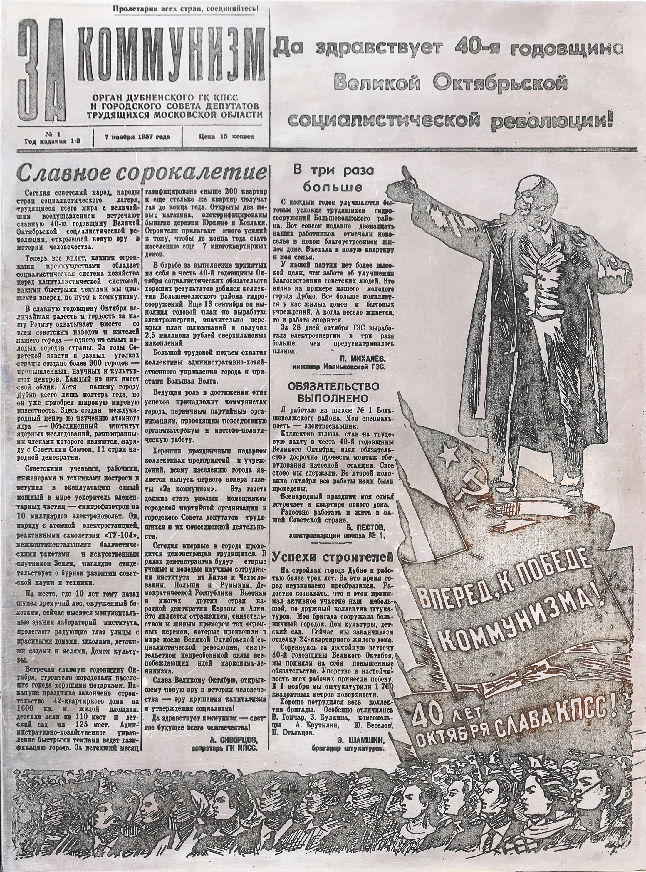 Throughout all these years the newspaper has been a chronicle of the Institute and the city, a public tribune for scientists, engineers, workers, specialists of city-forming enterprises. It has informed the readers about the scientific achievements of JINR and cooperation of the international centre in Dubna with research laboratories of the world. Prominent physicists, leaders of scientific schools who established the international scientific centre in Dubna took the floor through columns of the newspaper.
