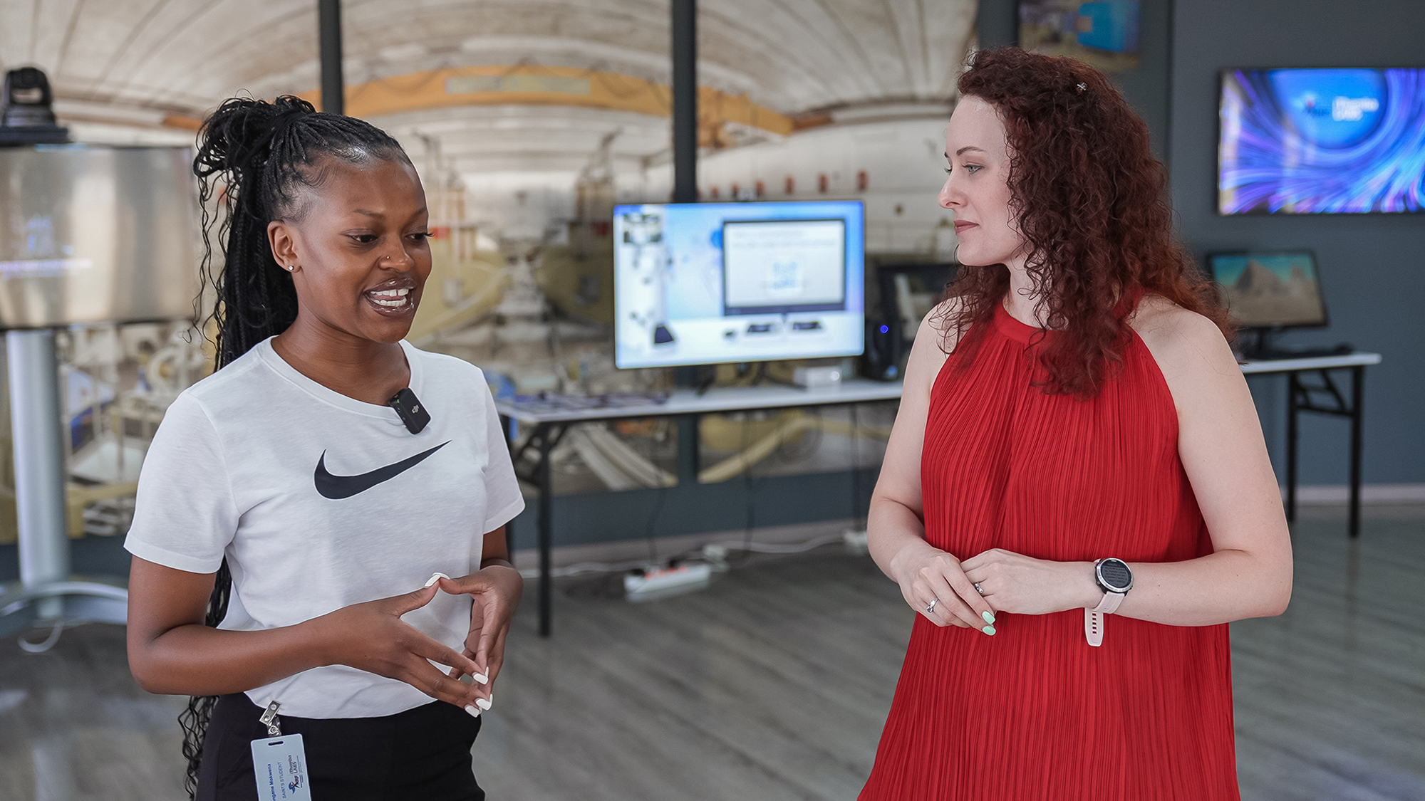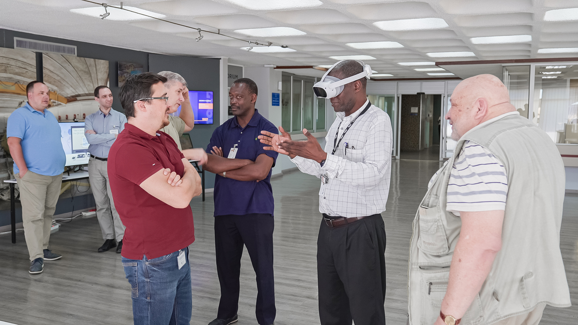 In addition, multimedia JINR Exhibition was presented in the main hall of iThemba LABS. The Summer School students and iThemba LABS staff were given an overview of the main facilities of JINR and used VR technology to examine the corners of the NICA Accelerator Complex and see the construction of the Neutrino Telescope at Baikal Lake in detail, while also using AR technology to participate in experiments.