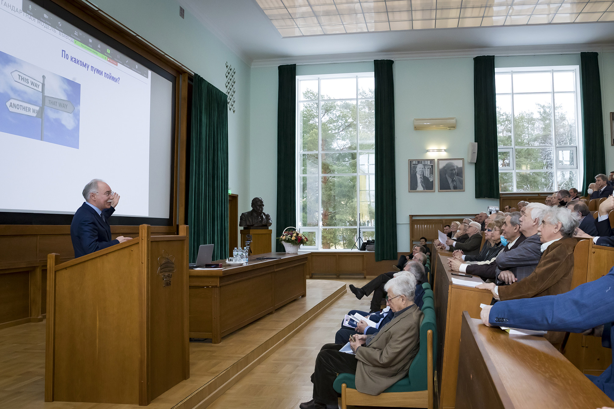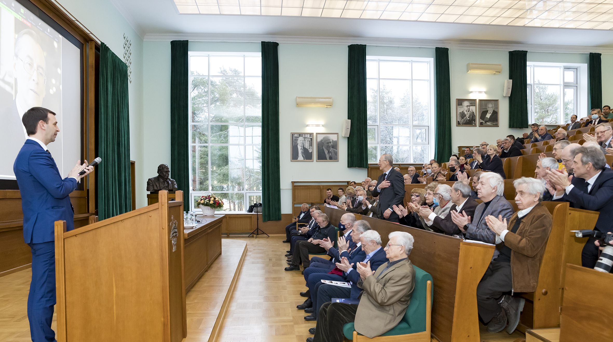 At the seminar, President of the Russian Academy of Sciences Alexander Sergeev congratulated Victor Matveev. RAS Academician Victor Matveev headed the Physical Sciences Division of the Russian Academy of Sciences for several years. “This Division is a flagship,” Alexander Sergeev emphasised, “The RAS trusted the management of the Division to Victor Matveev as he is a person who calmly and thoughtfully conducts business.” Speaking about progress in the development of a number of studies in which Victor Matveev actively took part, RAS President Sergeev highlighted, “No matter in what scientific directions you worked, they all were a success. Our country holds leading positions in the fields of high-energy physics, neutrino physics, physics of heavy-ion accelerators thanks to your wisdom as a leader who can strike a balance between different opinions. Victor Anatolievich is the treasure of physical science.”