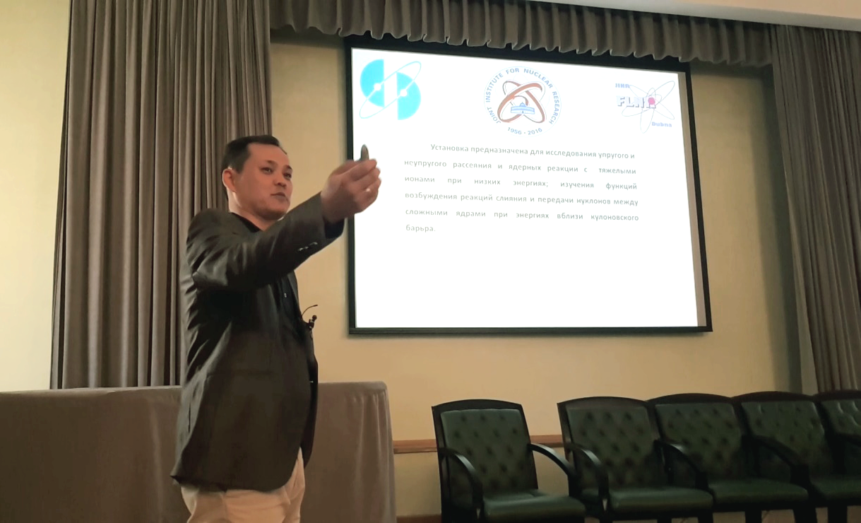 На данный момент в ОИЯИ работает более 100 молодых ученых и специалистов, которые занимаются научными исследованиями в различных областях ядерной и нейтронной физики, ускорительной техники, радиационного материаловедения, информационных и облачных технологиях, принимают активное участие в крупных международных MEGA Science проектах и т.д. Так ежегодно в рамках программы двухдипломного образования выпускается порядка 10-12 бакалавров, которые в дальнейшем продолжают работать в научной сфере в НИИ и ВУЗах Республики Казахстан, а также являются востребованными специалистами в различных отраслях науки и техники. Делегацию научной группы возглавлял профессор К. К. Кадыржанов, директор филиала Института ядерной физики в городе Нур-Султан – М. В. Здоровец и заведующий лабораторией прикладного и теоретического материаловедения Института ядерной физики С. Б. Кислицин.