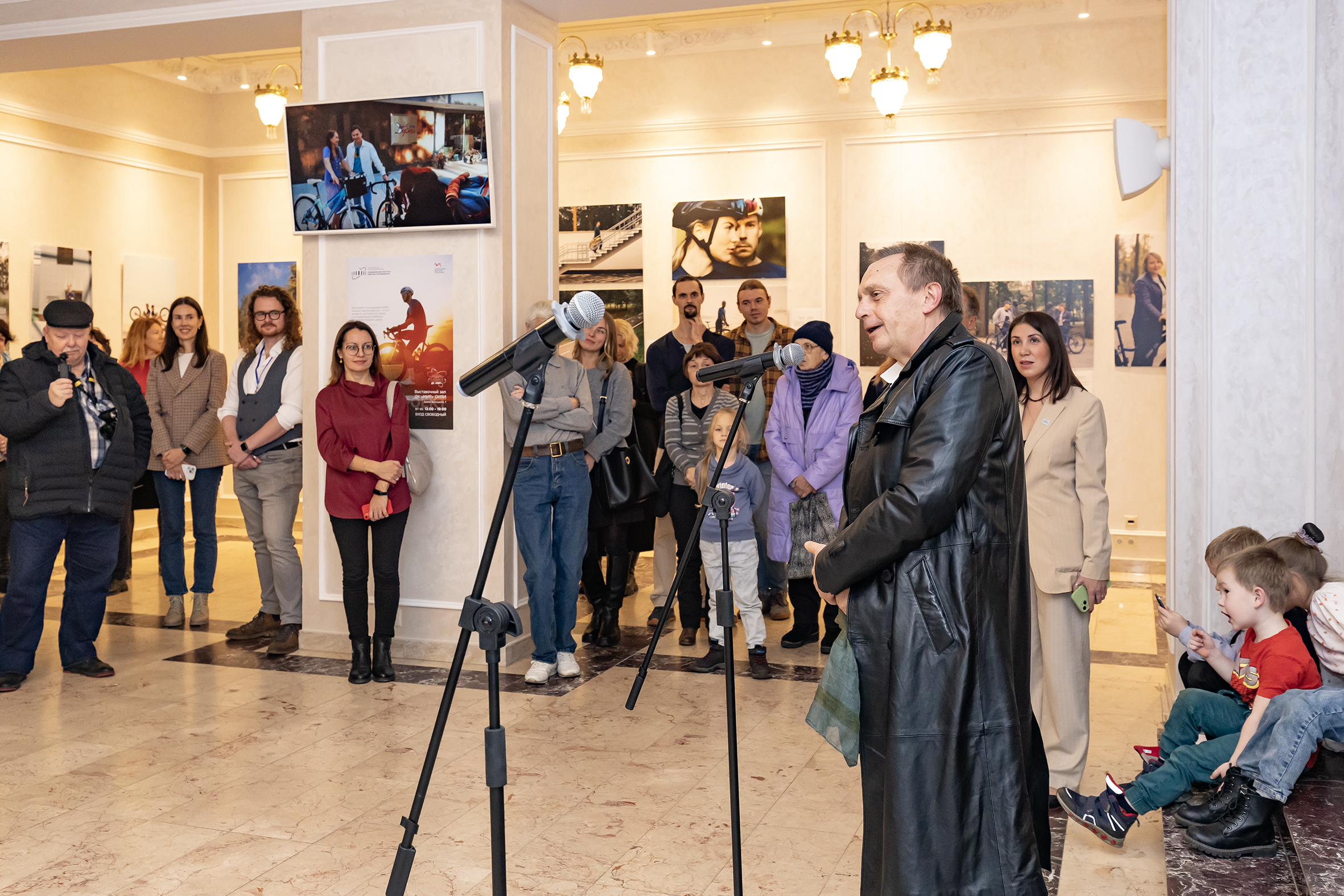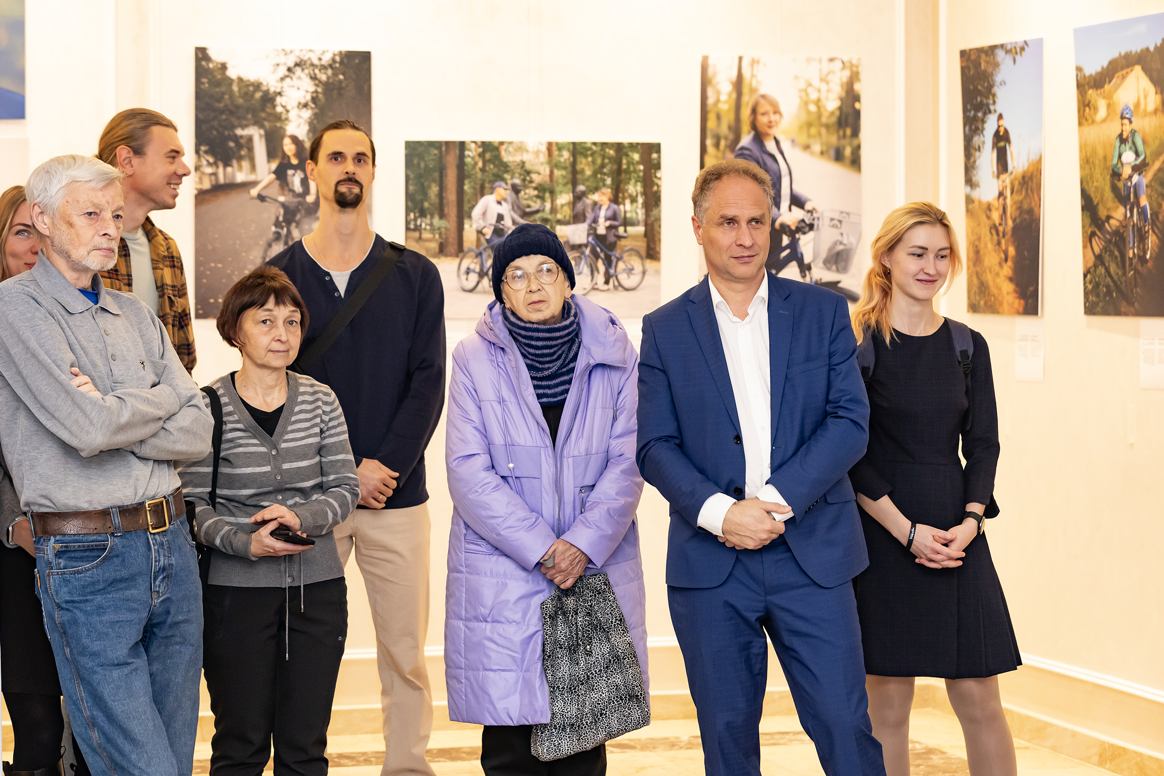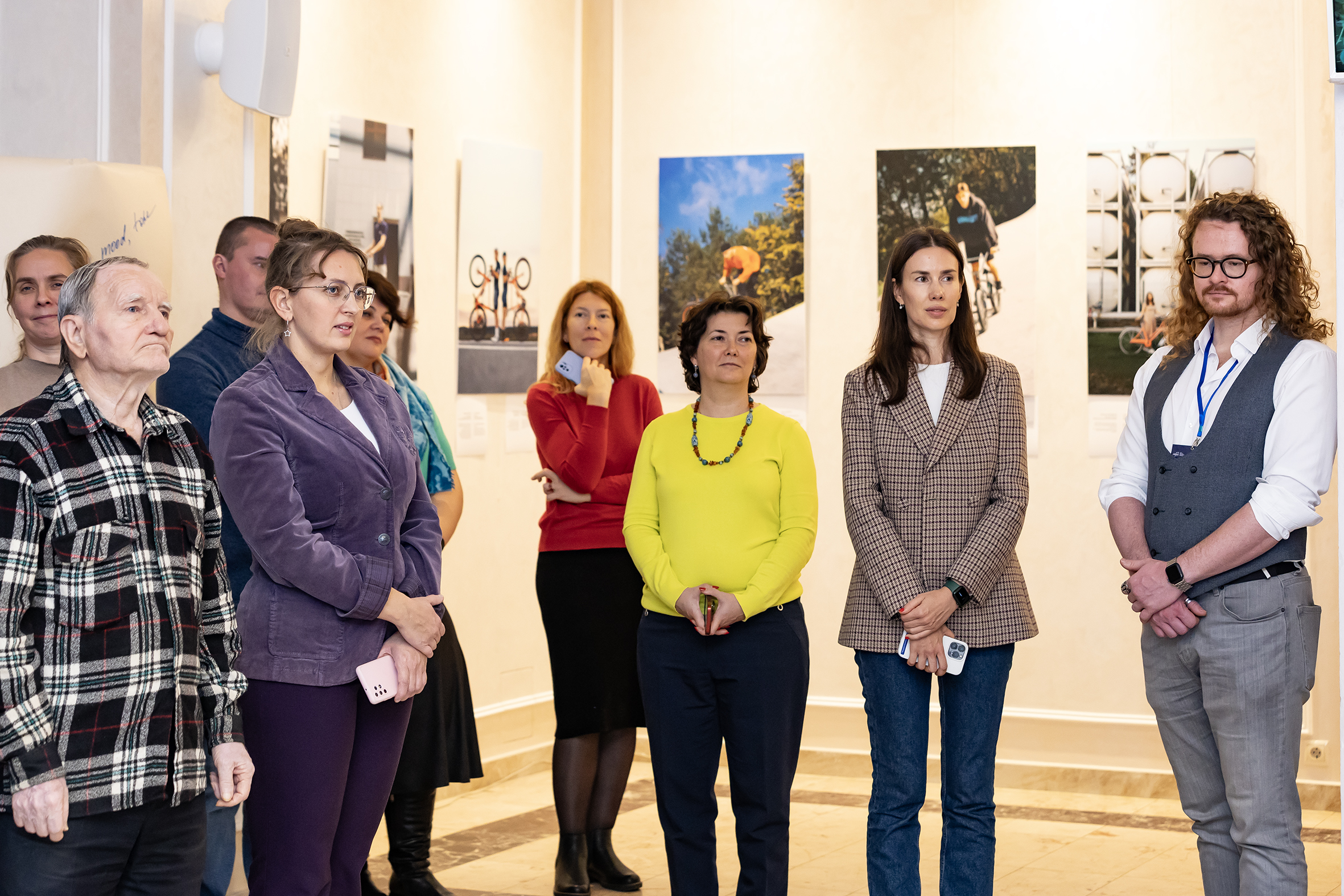 On 31 October, the JINR Mir Cultural Centre hosted the opening of the Keep Your Balance photo exhibition and the presentation of the eponymous JINR corporate calendar for 2025. The exposition is organized by the Press Office of the Joint Institute and features its employees who actively cycle while getting to work, exploring the city , and training in recognisable locations of Dubna, the city JINR is situated in. The exhibition will be open at the Mir Cultural Centre until 24 November.