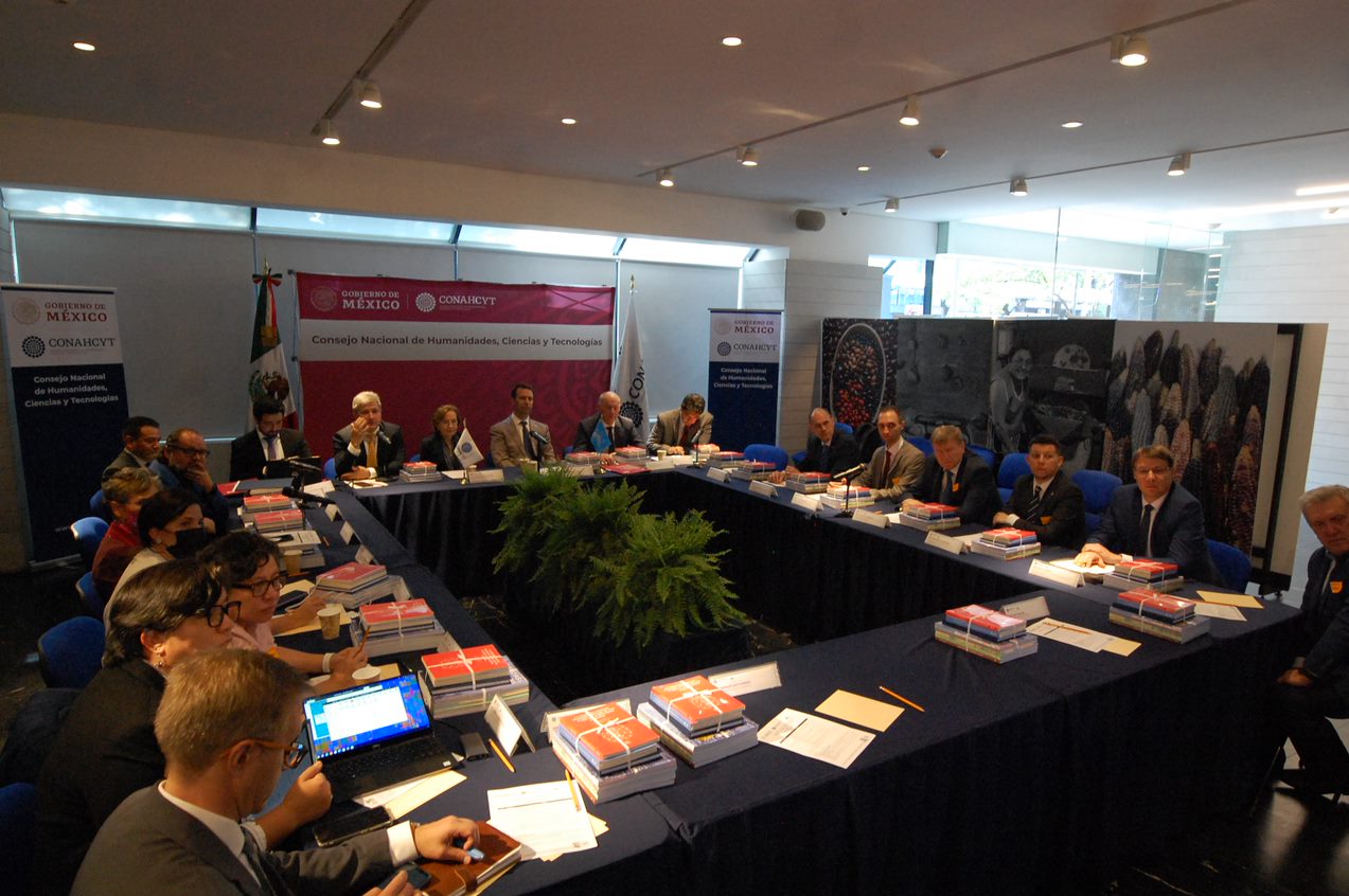 Prior to the JCC meeting, JINR Director Grigory Trubnikov met with CONAHCYT Director-General María Elena Álvarez-Buylla Roces. Both parties shared their thoughts on the current state of the cooperation between researchers from Mexico and Dubna, and how they see it in the near future and long-term. The Director of JINR noted that the coordination of cooperation through the Joint Coordination Committee, in accordance with the Institute’s established practice, allows for partner state’s national priorities to be translated into the research profile of JINR and the possibilities of its scientific infrastructure. The Director-General of CONAHCYT confirmed their interest in developing cooperation with JINR and pointed out the significance of such an approach where collaboration is based on practical implementation of both sides’ priorities. Present at the meeting were also JINR Vice-Director Vladimir Kekelidze and former President of the Mexican Physical Society and professor at the Institute of Physics at the National Autonomous University of Mexico (UNAM) Ana María Cetto Kramis, who is also a member of the JINR Scientific Council, cooperation coordinators Alejandro Ayala (UNAM) and Dmitry Kamanin (UC JINR), as well as Horacio Chavira (Communications Coordinator and International Cooperation Director, CONAHCYT).