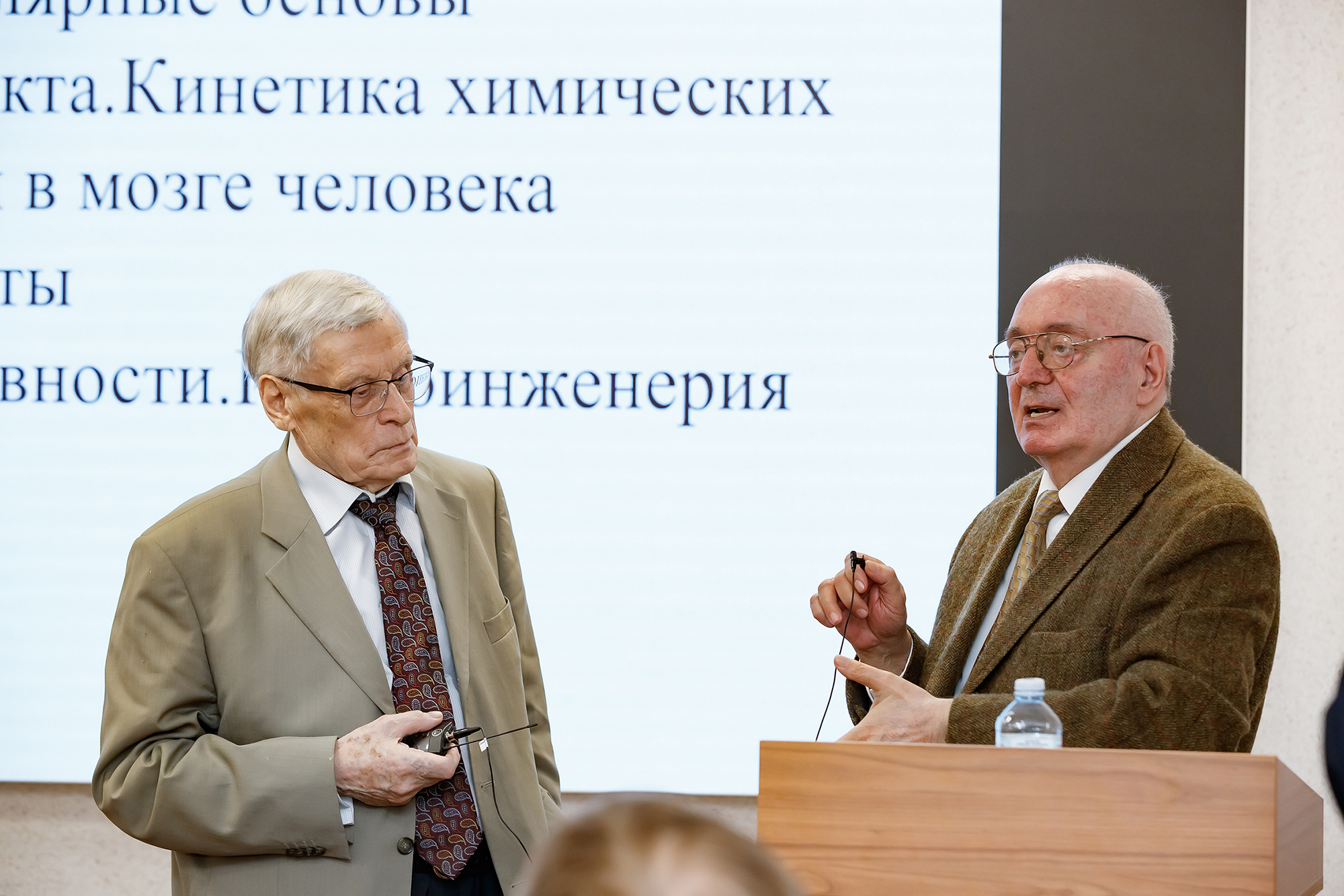 When discussing aspects of the molecular basis of intelligence, Sergey Varfolomeev devoted a significant part of the report to memory issues. He spoke about the molecular mechanisms of memory functioning and identified “chemical” methods of controlling the higher integrative functions of the central nervous system with the help of drugs that either block or stimulate biochemical processes. During the report and the subsequent active discussion, the issues of neuroengineering and the formation and functioning of the nervous system and intelligence were discussed.