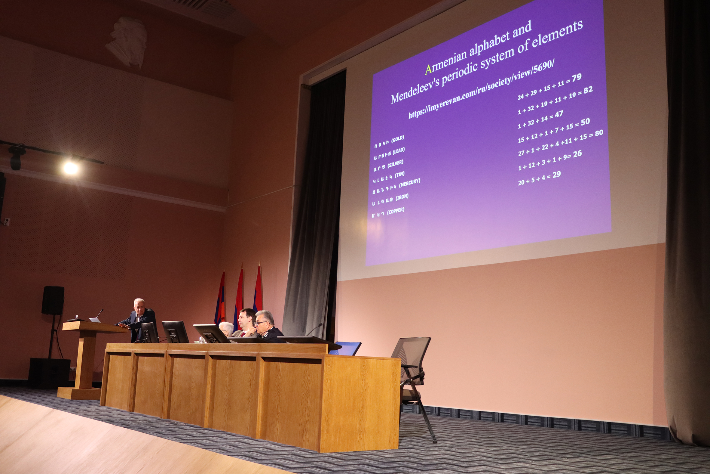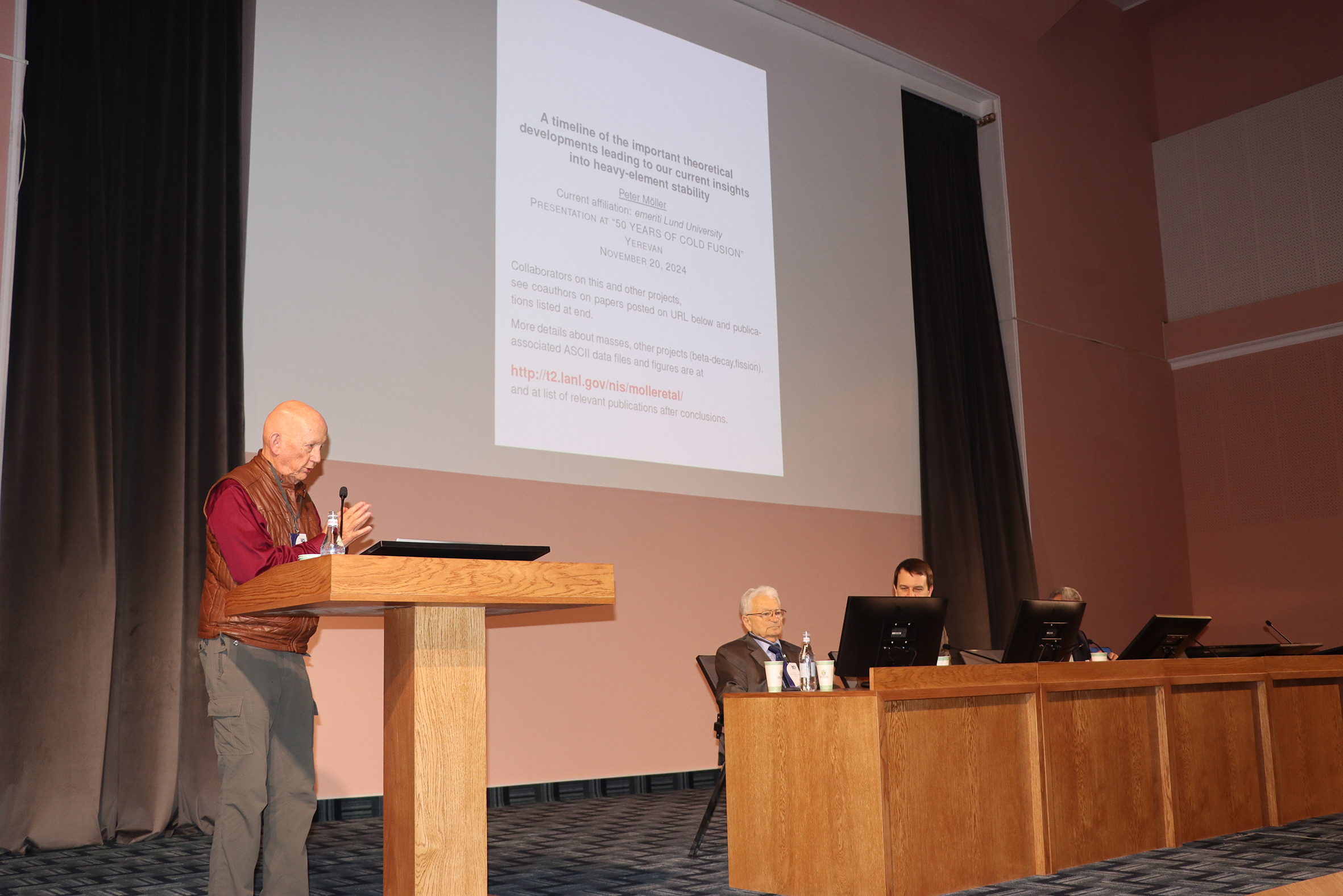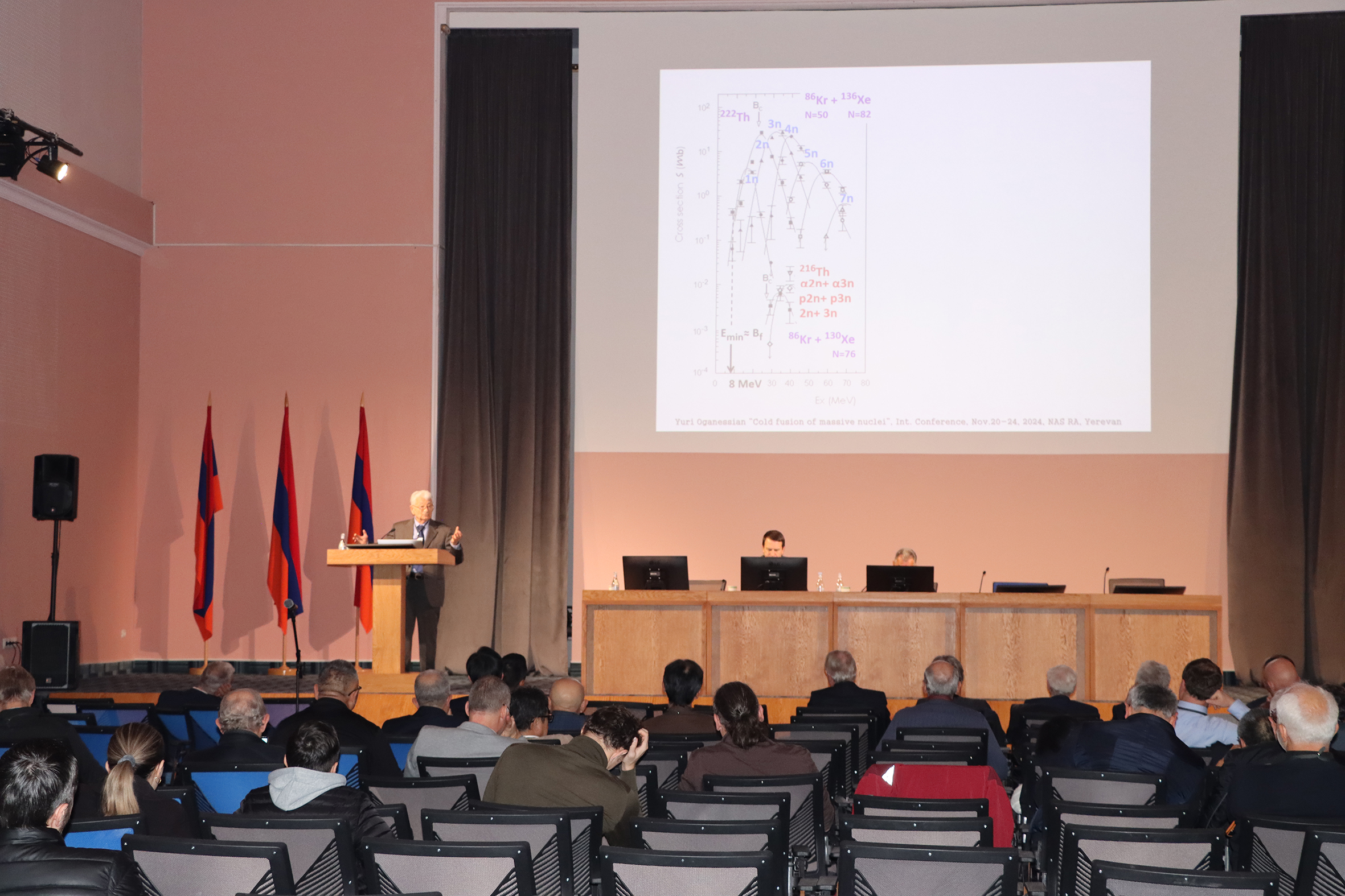 Президент Национальной академии наук Республики Армения Ашот Сагян в своей речи рассказал о деятельности и структуре НАН РА. «Наша Академия проводит важнейшие исследования мирового значения в области астрофизики, информационных технологий, прикладной математики и механики, физики, химии, биологии, арменистики и ряда других научных направлений», — отметил он. Ашот Сагян акцентировал, что Академия сегодня принимает у себя многих ученых с мировым именем из разных стран, сотрудничество с которыми оценивает очень высоко. «Этот симпозиум, посвященный 50-летию открытия реакций холодного синтеза, — хорошая возможность не только вспомнить прошлое, но и рассмотреть всю проблему синтеза сверхтяжелых элементов с современных позиций и возможностей», — сказал президент НАН РА.